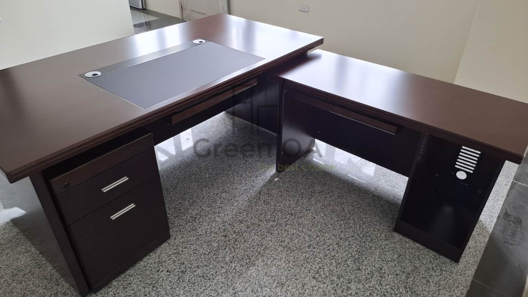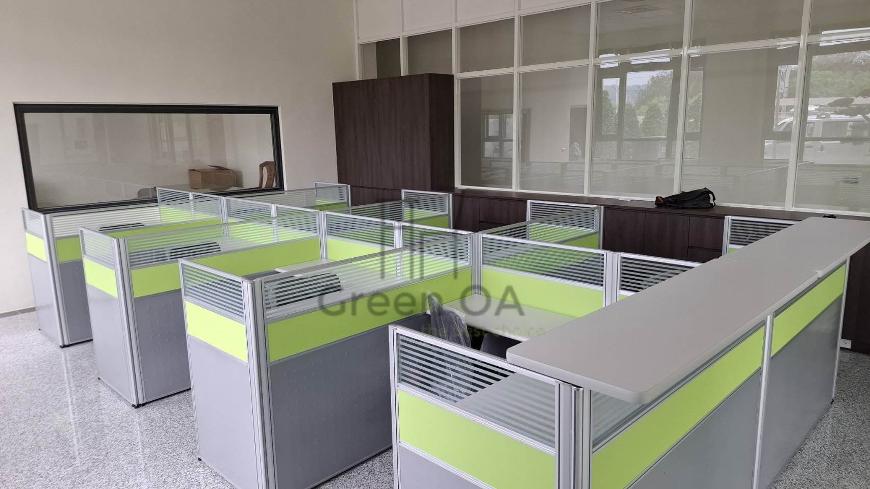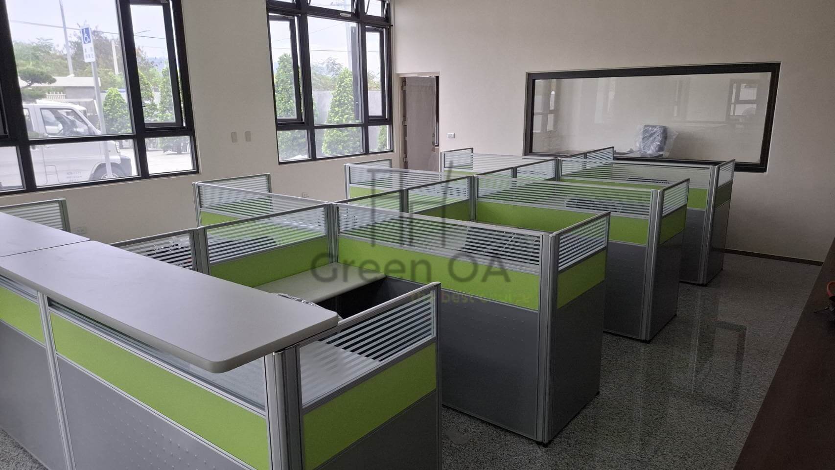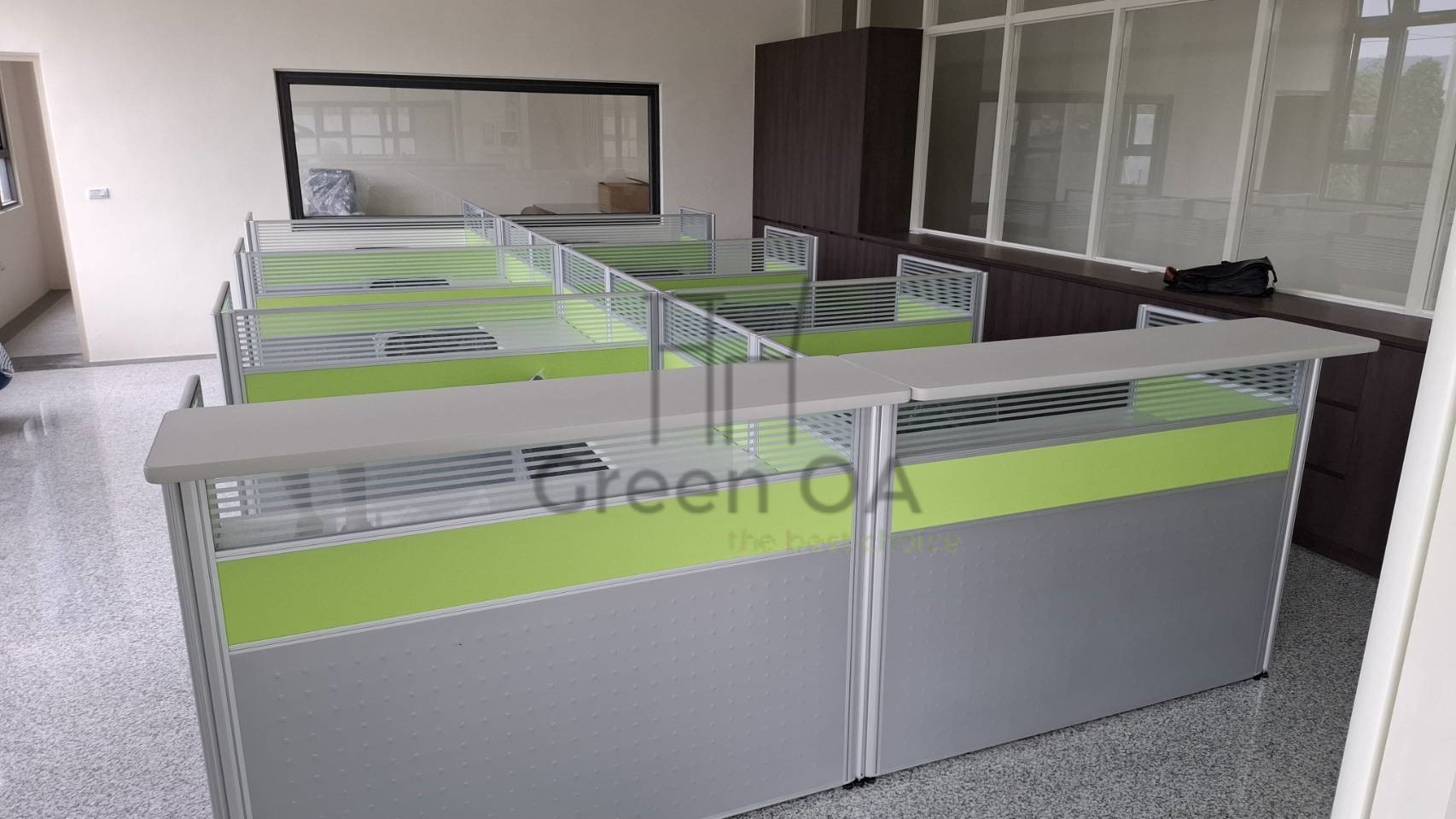 這個完整的辦公空間規劃,以 2.5 屏風 112 公分高度搭配主桌與側桌為基礎,打造出安定又高效的工作環境。每席位配置 ABS 中抽與活動櫃,讓文件歸位、物品收納更加輕鬆;櫃檯板的加入則提升整體視覺層次,也讓洽公動線更俐落。搭配 N1 職員椅提供久坐支撐,主管區則以 ED 主管桌結合高背主管椅,呈現專業與質感並存的領導者辦公空間。從基礎座位到主管配置,全套皆以實用、耐用與美觀為重點,為企業打造兼具效率與舒適的理想辦公場域。