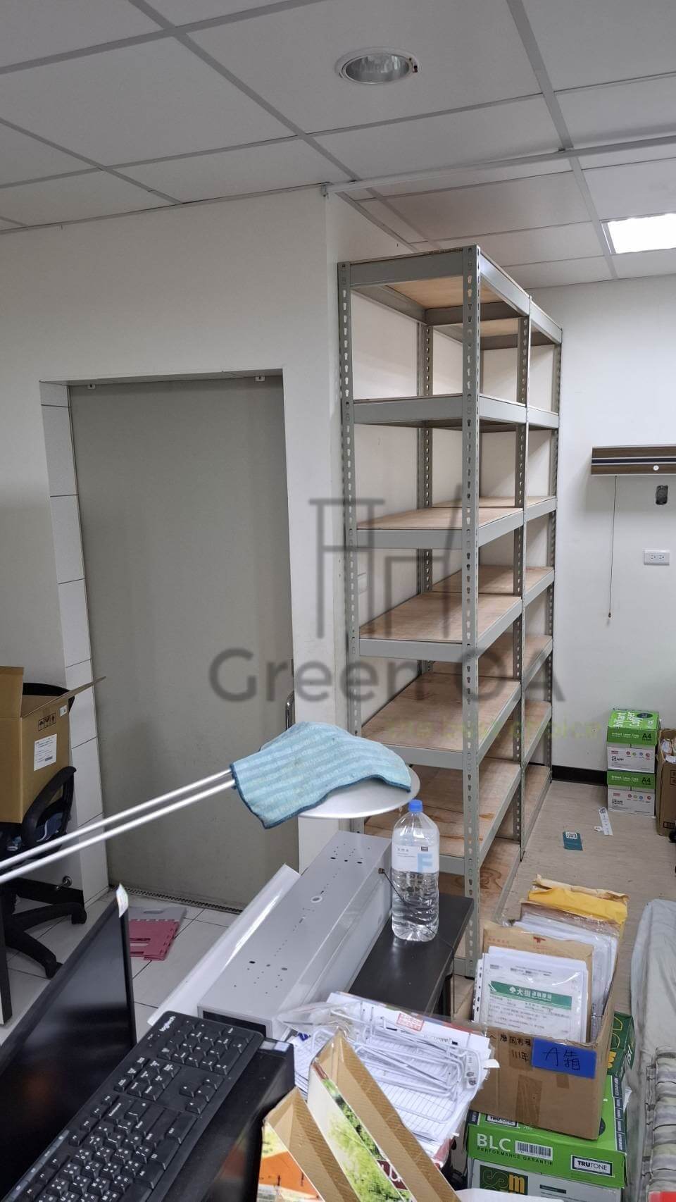 本次案例選用角鋼架作為收納配置,著重結構穩定與實用彈性。角鋼材質承重力佳,適合放置文件、物料或設備,層架高度可依需求調整,提升空間運用效率。外型簡潔、不佔視覺,能靈活應用於辦公、倉儲或教學環境,充分展現 Green OA 對實際使用情境與耐用度的重視。