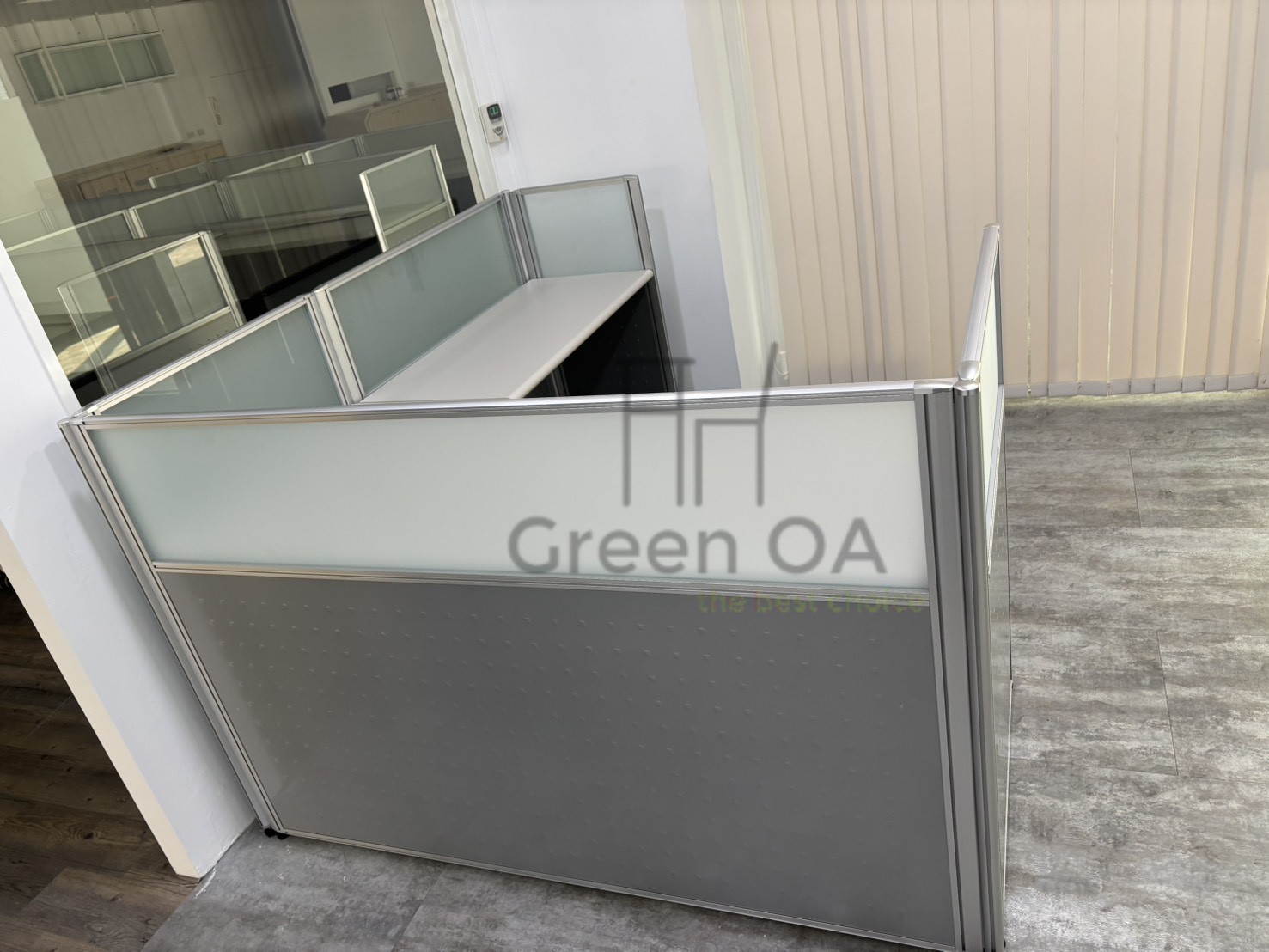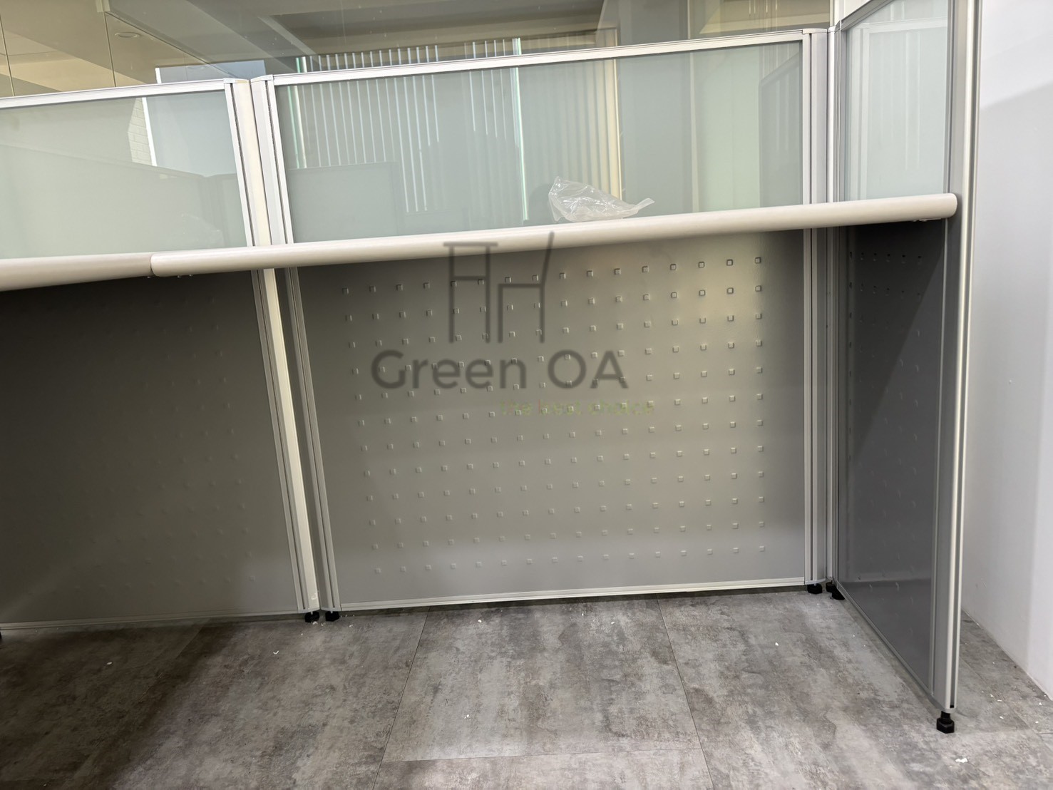 本次案例採用2.5 屏風(102 高)+主桌+側桌的實用配置,兼顧工作區劃分與作業彈性。102 公分高的屏風提供基本區隔,同時保留通透感;主桌搭配側桌有效延伸工作檯面,讓文件處理與設備擺放更有條理。整體配置動線清楚、機能完整,適合高效率的日常辦公需求,展現 Green OA 對實務配置的成熟規劃。