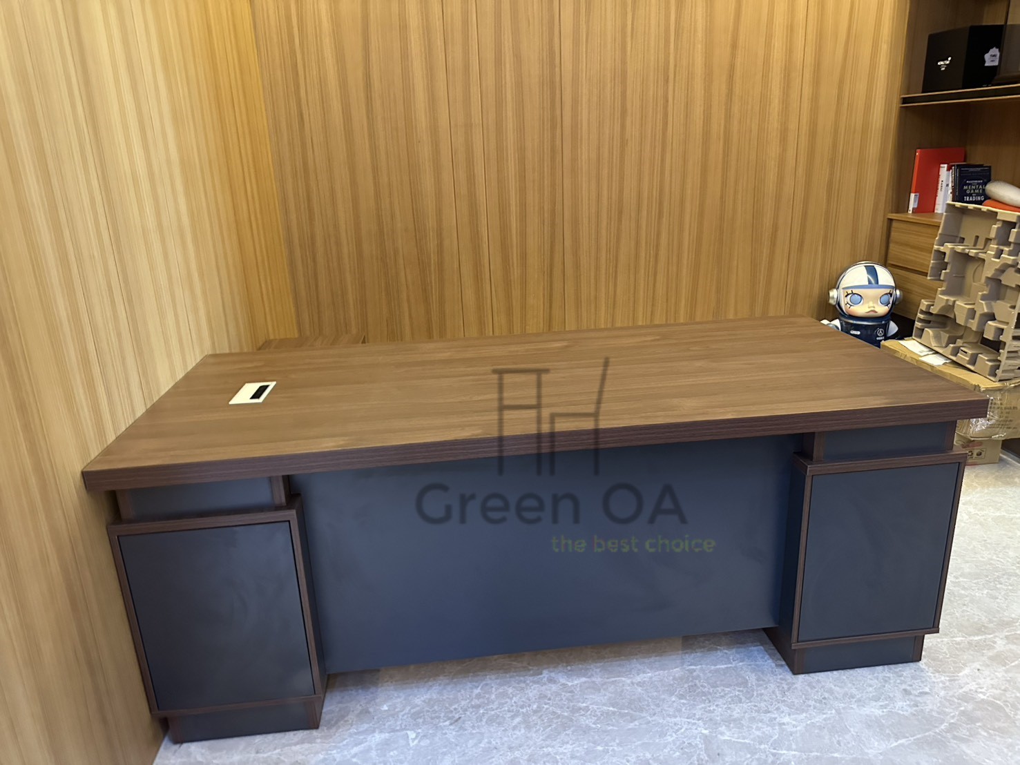 這款主管桌以高質感木紋搭配厚實桌板設計,展現專業與穩重形象。L 型配置提供更大的工作檯面,側櫃可收納資料、設備與個人物品,讓主管辦公區保持整潔有序。適用於企業辦公室、高階管理室、會議接待空間等,兼具功能性與視覺質感。