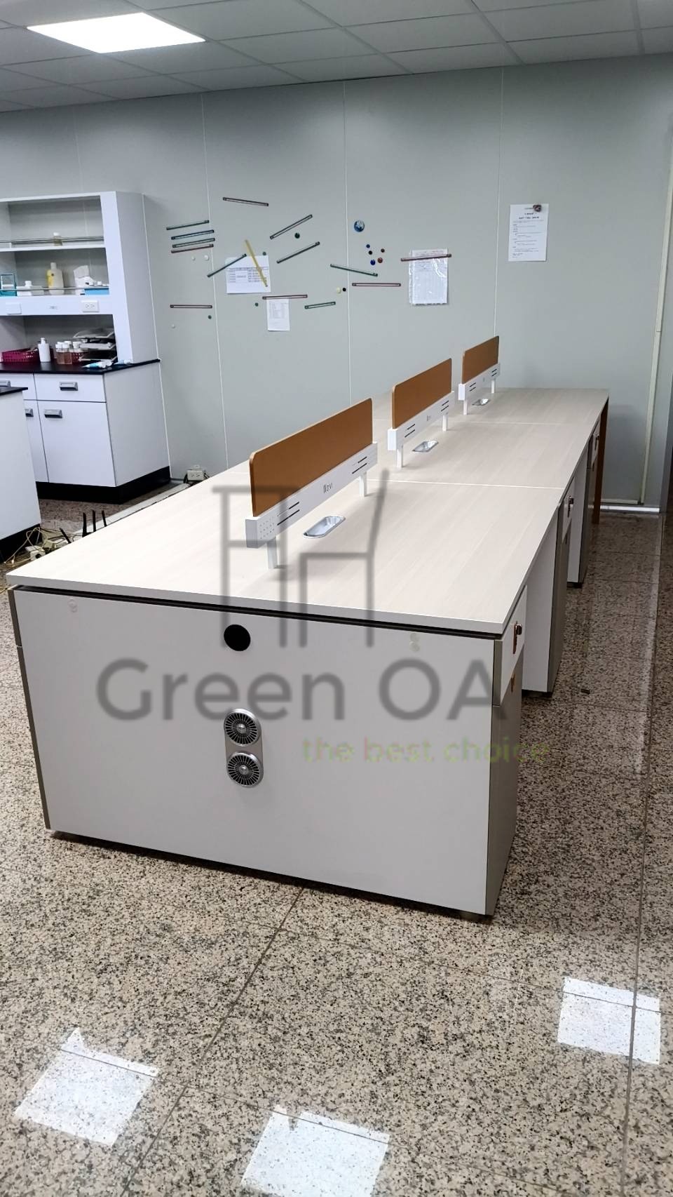 此案採用 RET 工作站 系統,整體設計兼具穩定性與高效能工作導向。桌體結構以鋼製主架搭配高壓耐磨板桌面,堅固耐用,適合長時間操作與精密作業環境使用。桌上加設分隔屏與電源模組,讓使用者可同時進行多工操作,線路收納整齊,維持工作檯面乾淨俐落。下方櫃體提供充足收納空間,便於管理工具與資料,提升整體工作效率。此配置特別適用於研究單位、實驗室或技術研發部門,兼顧功能、安全與現代美學,充分展現 Green OA 在專業工作環境規劃上的整合能力。