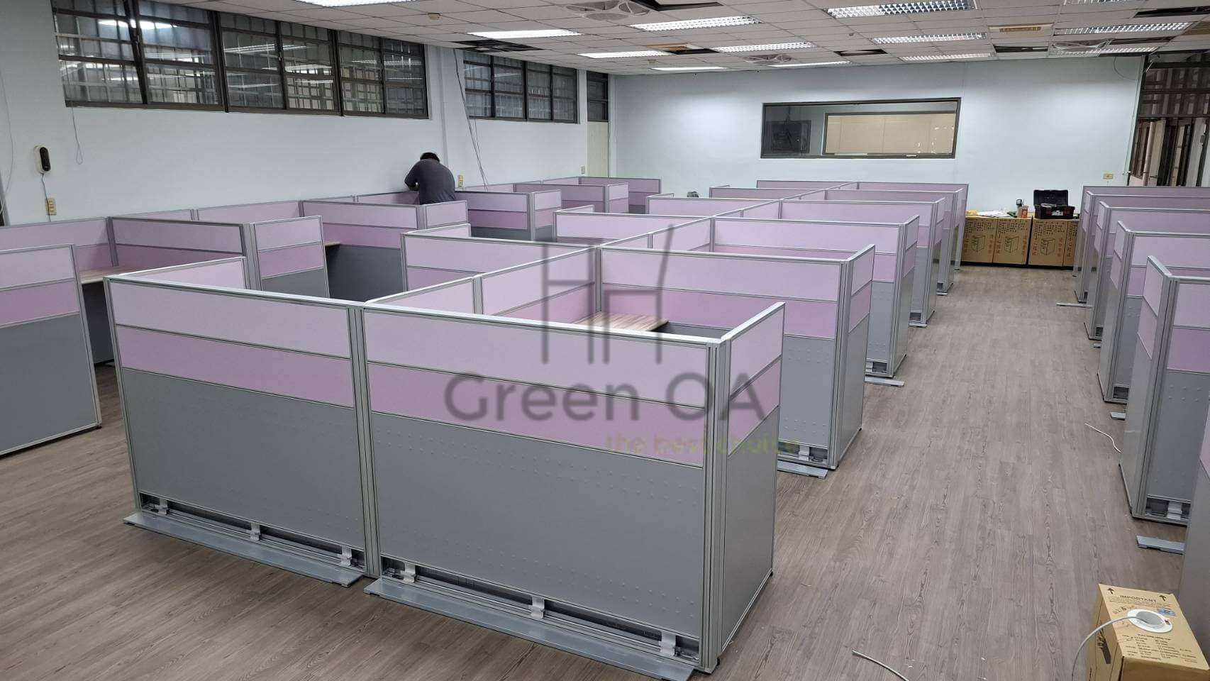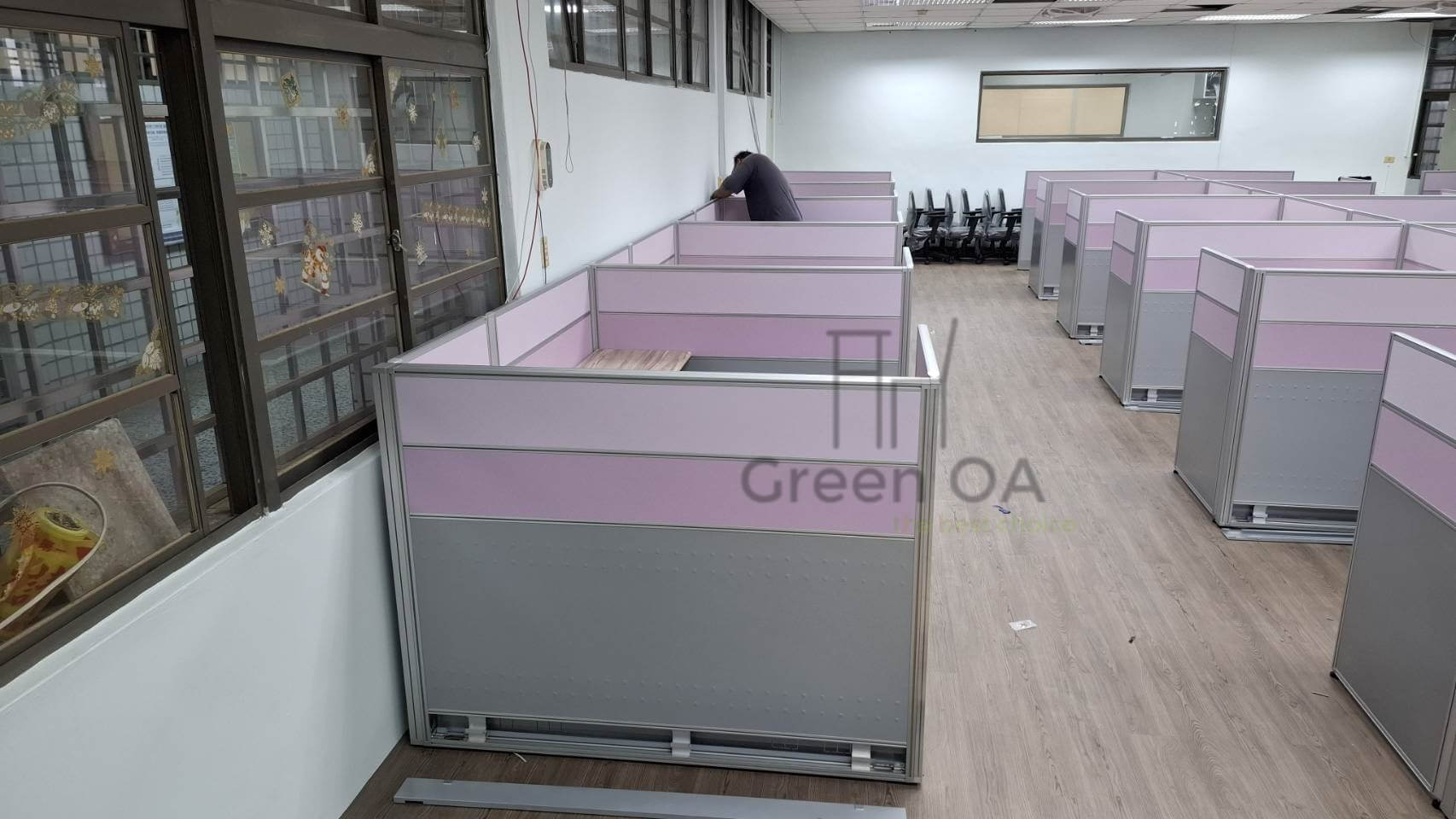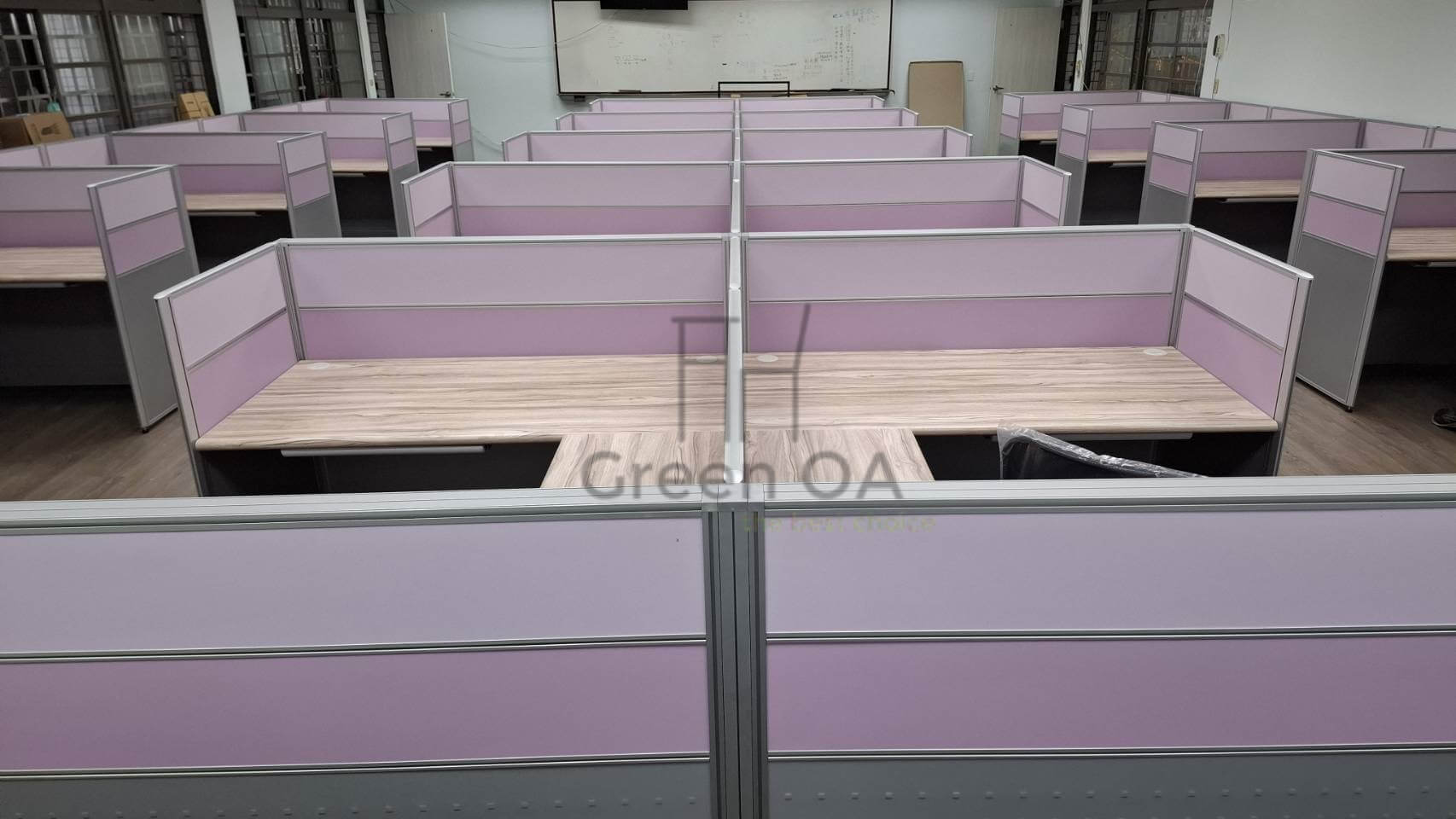 此案為 3公分屏風 + 6公分屏風 + 主桌 + 側桌 + ABS中抽 + 活動櫃 + 職員椅,整體配置以多層次屏風組合打造靈活分區的辦公環境。3公分屏風作為基本隔斷,結構輕盈、線條俐落;6公分屏風則強化隔音與穩定性,提供更高私密性與專業感。主桌與側桌延伸出充足工作面積,搭配ABS中抽與活動櫃,滿足多樣化收納需求。職員椅採人體工學設計,椅背支撐良好、久坐舒適。整體造型簡潔現代,兼具功能與美感,充分體現 Green OA 對空間整合與辦公效率的專業設計理念。
