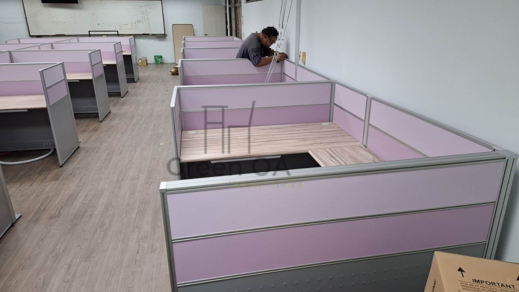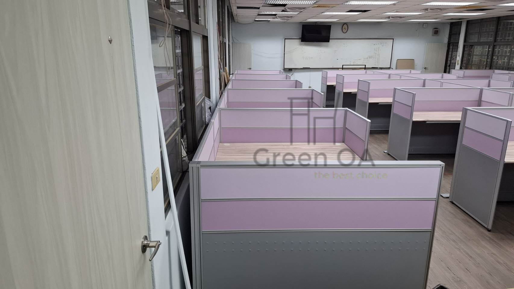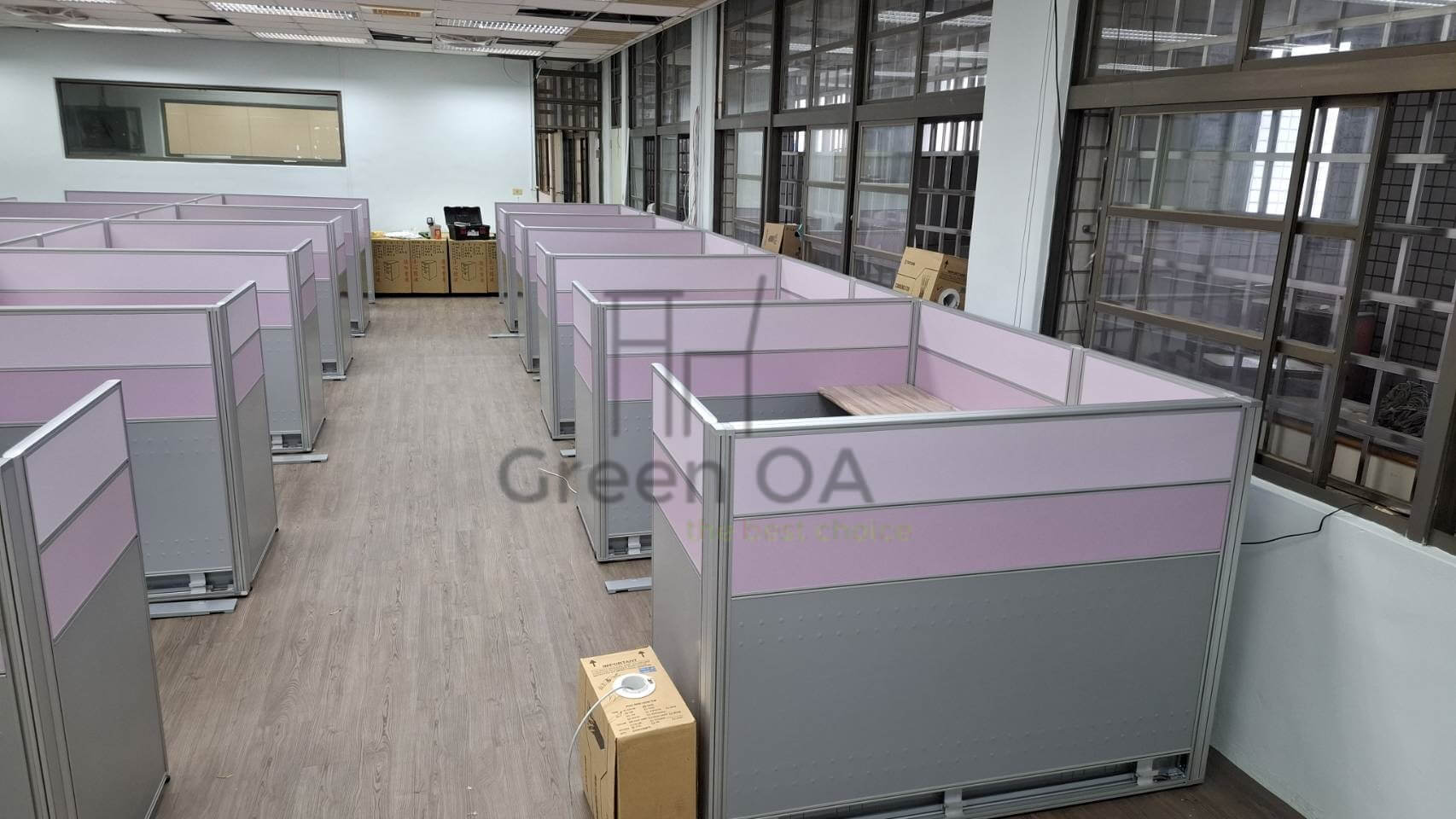 此案為 3公分屏風 + 6公分屏風 + 主桌 + 側桌 + ABS中抽 + 活動櫃 + 職員椅,整體配置以多層次屏風組合打造靈活分區的辦公環境。3公分屏風作為基本隔斷,結構輕盈、線條俐落;6公分屏風則強化隔音與穩定性,提供更高私密性與專業感。主桌與側桌延伸出充足工作面積,搭配ABS中抽與活動櫃,滿足多樣化收納需求。職員椅採人體工學設計,椅背支撐良好、久坐舒適。整體造型簡潔現代,兼具功能與美感,充分體現 Green OA 對空間整合與辦公效率的專業設計理念。