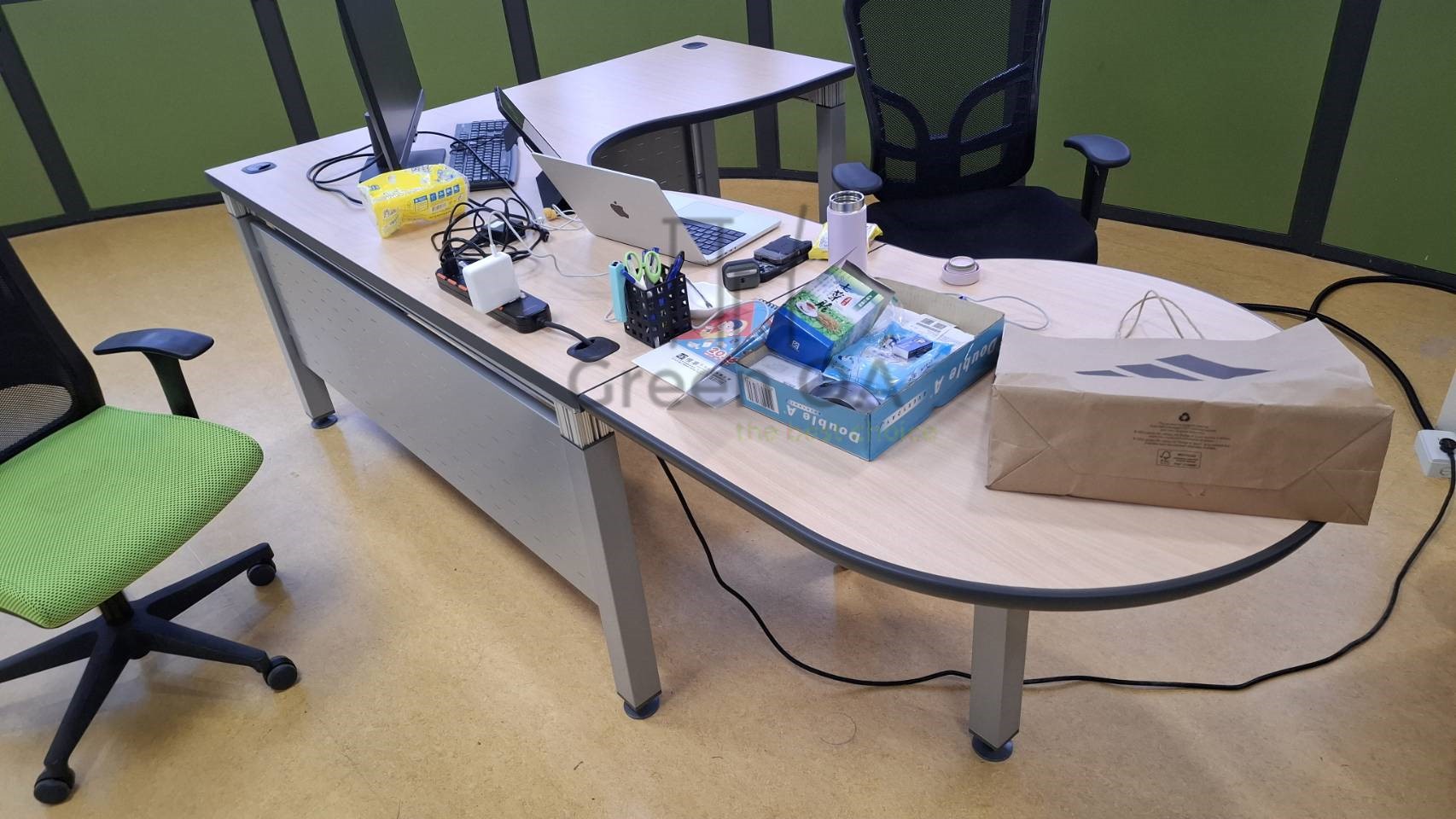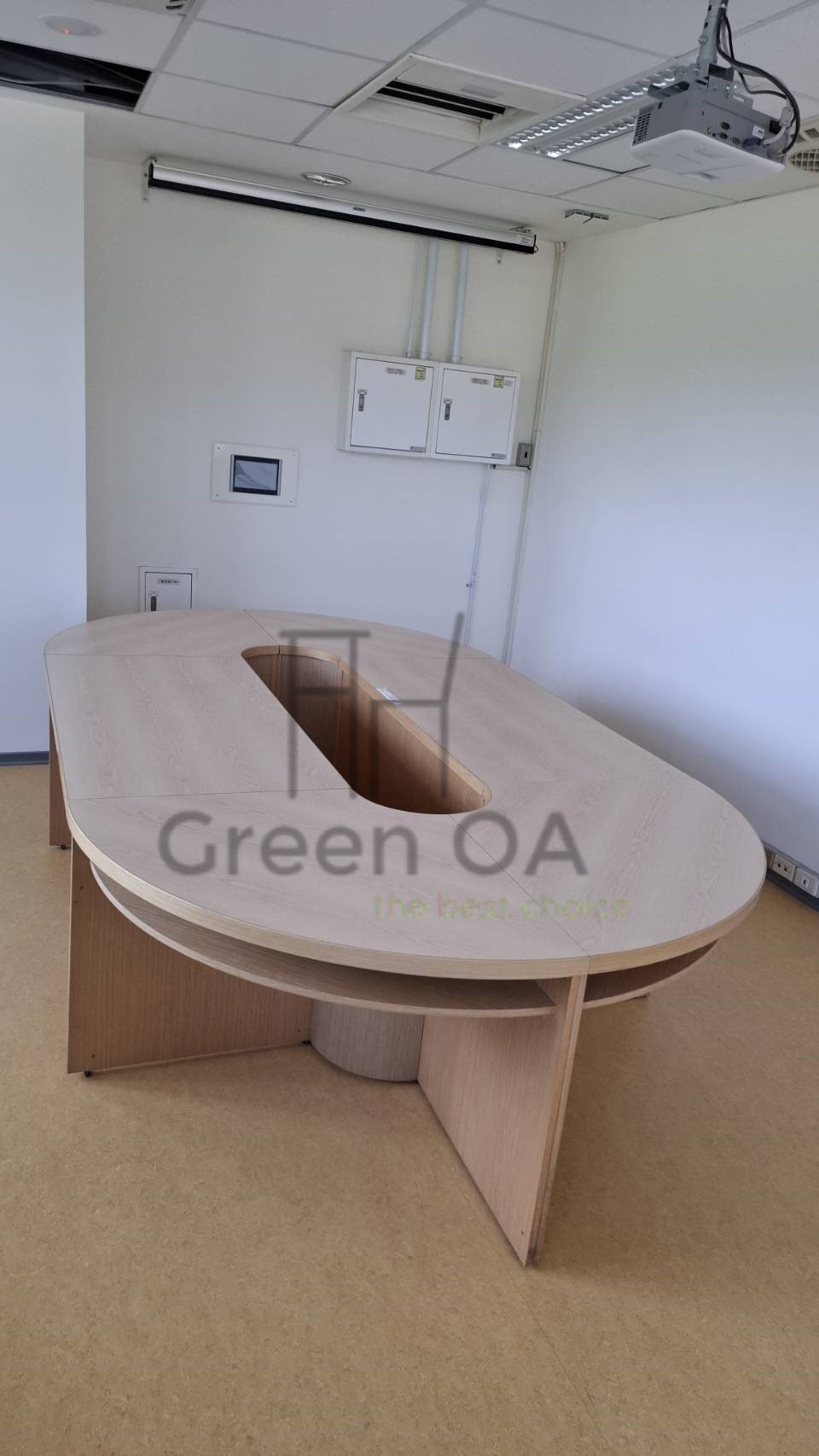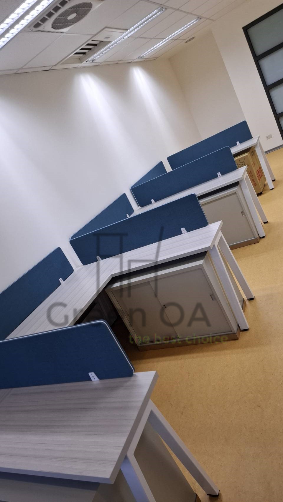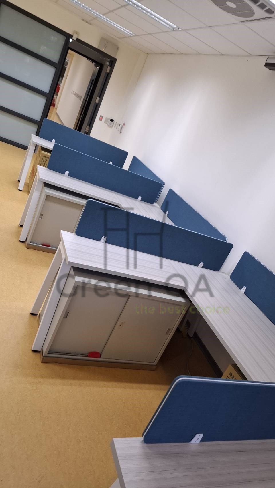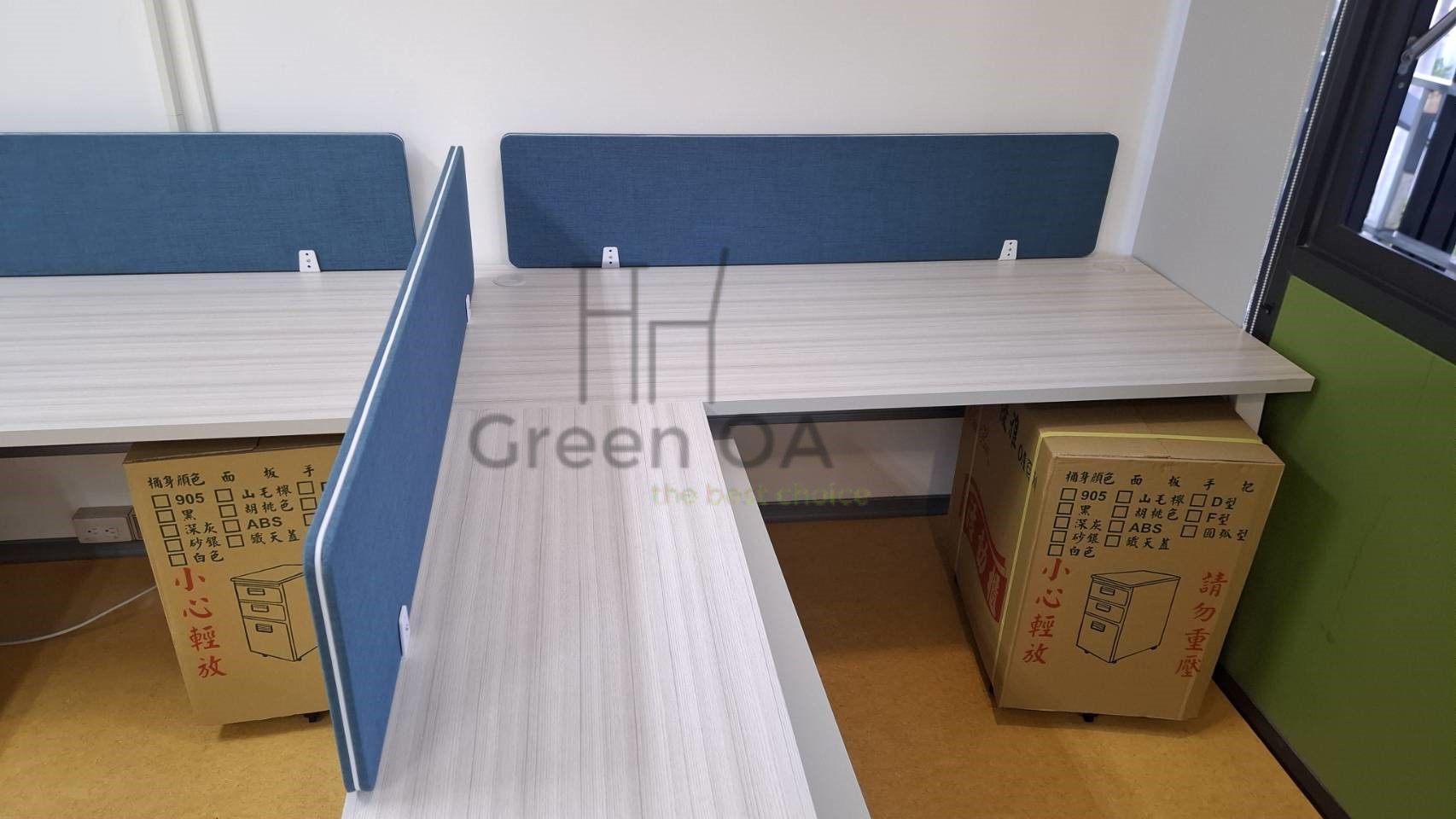 本次案例以 SQA 工作站+側桌+活動櫃+桌上屏+桌下櫃 為基礎,並延伸配置拆組主管桌與拆組會議桌,完整涵蓋個人作業、主管決策與團隊討論三大使用情境。工作站搭配側桌與雙層收納,讓文件與設備各就各位;桌上屏提升專注度,桌下櫃則強化隱性收納。拆組式主管桌與會議桌具備高度彈性,可因應空間與人數快速調整。整體規劃動線清楚、機能完整,展現 Green OA 在模組化辦公配置與實務整合上的成熟專業。