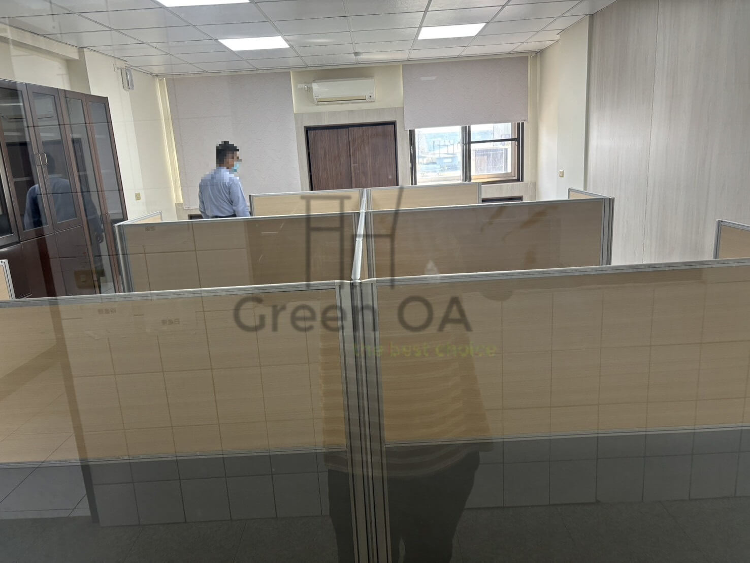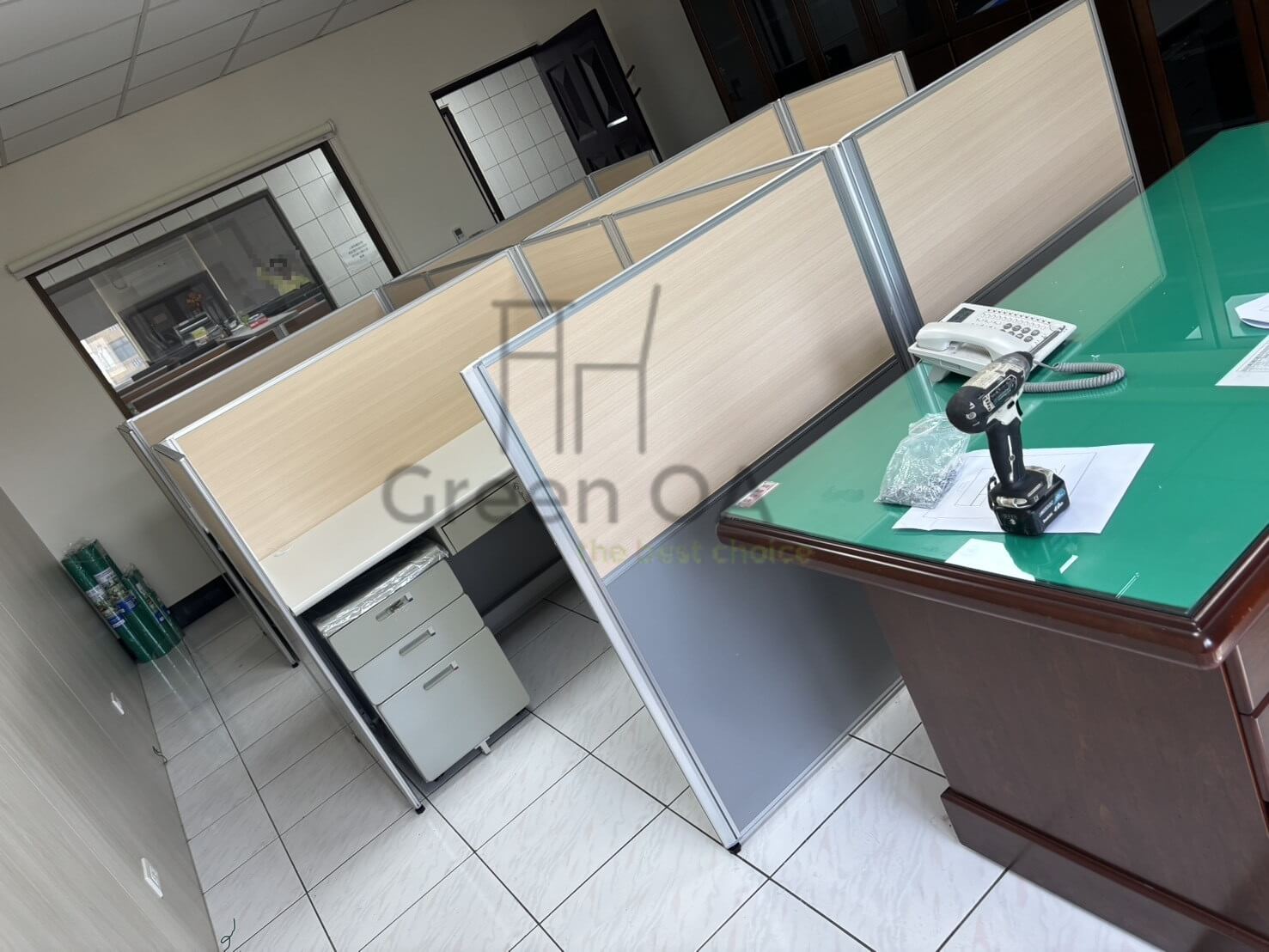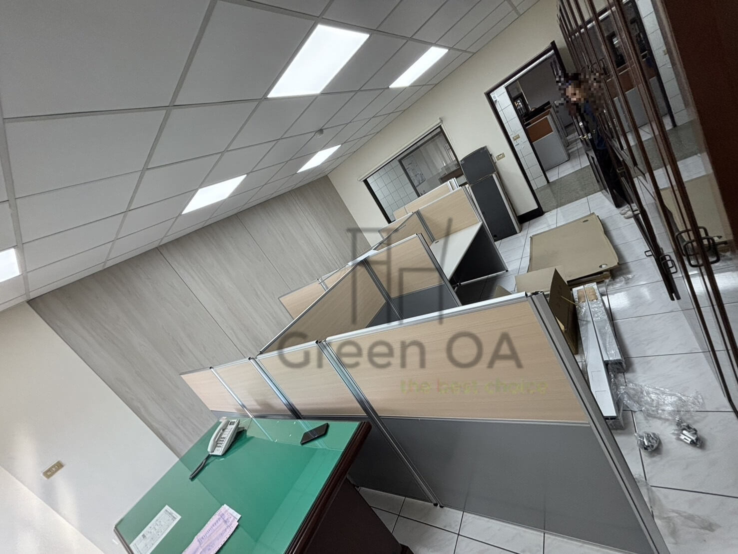 細節配置更是本案亮點:鋼製有鎖中抽確保重要物品安全無虞,活動櫃則提供了靈活的隨手收納。最特別的是加裝了櫃檯板設計,不僅界定出專業的外部洽談介面,更提升了整體的視覺層次感。透過 GREEN OA 的一體化整合,我們成功在有限坪數內,構築出機能、安全與質感並重的頂級辦公環境。