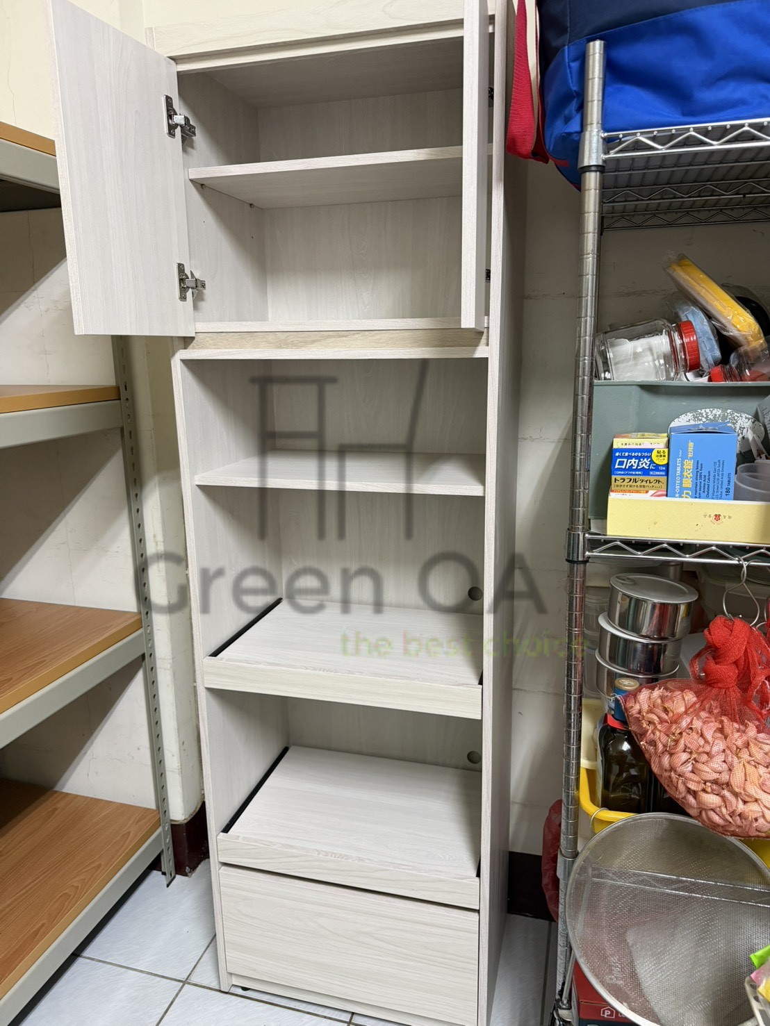 為了強化儲物空間的靈活性,系統中納入了具備卓越負重能力的免螺絲角鋼架,其堅固的工業級框架搭配溫潤的木質層板,不僅能輕鬆應對大體積或高密度的重型物資,更打破了傳統倉儲設備的冰冷感。而在茶水間或後勤區域,我們特別選配了質感細膩的多功能電器櫃,透過分層開放與封閉式門片的巧思,讓微波爐、咖啡機等生活家電與備品都能適得其所。這套方案將工業級的穩固與居家般的溫馨質感融為一體,協助客戶在專業的運籌維幄之餘,依然能享有井然有序且充滿便利性的後勤支援環境。