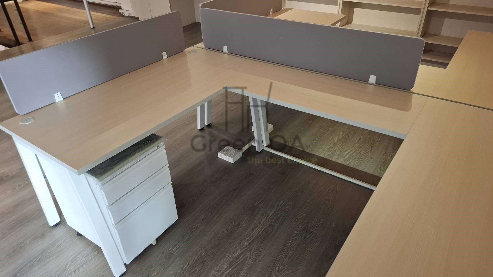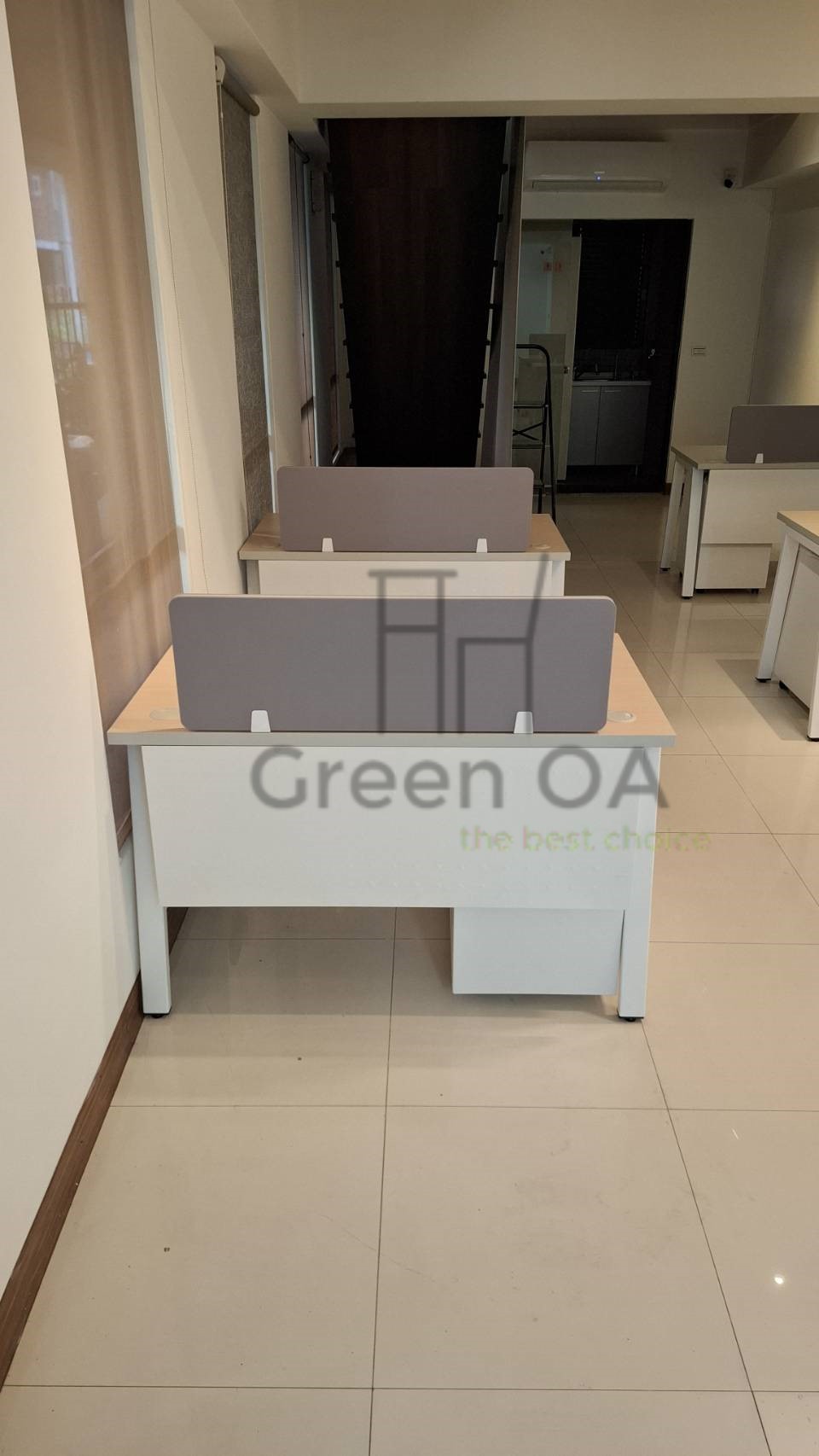 本次案例以 SQA 工作站+側桌+桌上屏+F 型活動櫃+S60 會議桌 的整合配置,兼顧個人作業與團隊討論需求。SQA 工作站搭配側桌,有效擴充工作檯面;桌上屏可降低視線干擾,提升專注度;F 型活動櫃提供彈性收納,方便依實際使用情境調整。另配置 S60 會議桌,讓討論與會議能就近進行,提升整體動線效率。整體規劃機能完整、配置有序,展現 Green OA 在辦公空間整合與實務運用上的成熟經驗。