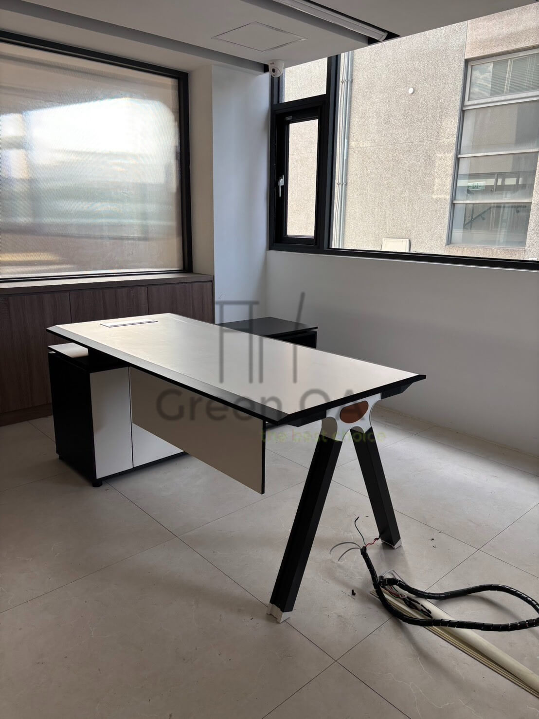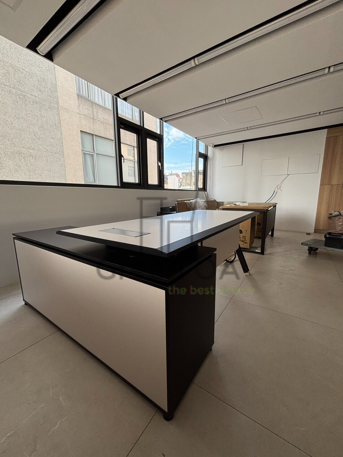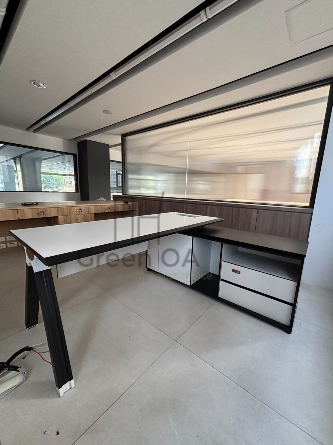 本案以 VT 主管桌為空間核心,結合洽談椅、吧檯桌、單人沙發、小茶几與斗櫃,打造兼具管理、洽談與休憩功能的多元主管空間。主管桌線條俐落、桌面寬敞,滿足日常決策與文件作業需求;吧檯桌提供快速討論與彈性使用情境,提升互動效率。洽談椅與單人沙發搭配小茶几,營造輕鬆不失專業的會談氛圍。斗櫃則強化收納機能,維持空間整潔有序,整體展現現代主管辦公室的實用與質感。