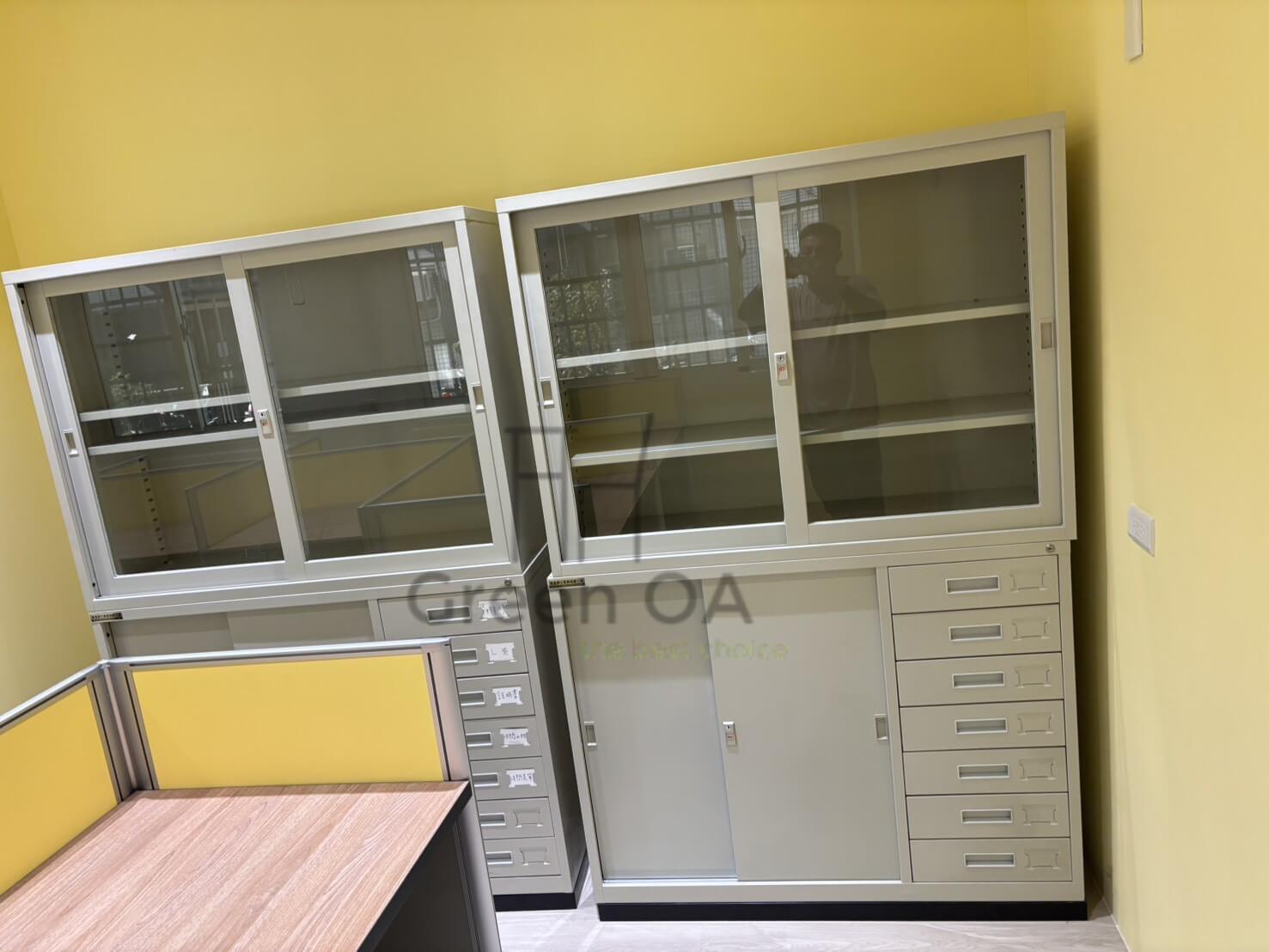 本案採用2.5 屏風(102 高)+主桌+4 尺鐵櫃+角鋼架+黑色 F 型活動櫃的完整辦公配置,兼顧個人隱私與整體收納效率。102 公分高屏風有效區隔工作區,降低干擾,同時保有空間通透感;主桌提供穩定且實用的工作檯面,滿足日常辦公需求。4 尺鐵櫃與角鋼架強化文件與物品收納機能,分類清楚、取用便利;黑色 F 型活動櫃可彈性移動,提升工作動線流暢度。整體配置實用耐用,適合高效率的行政與專業辦公環境。