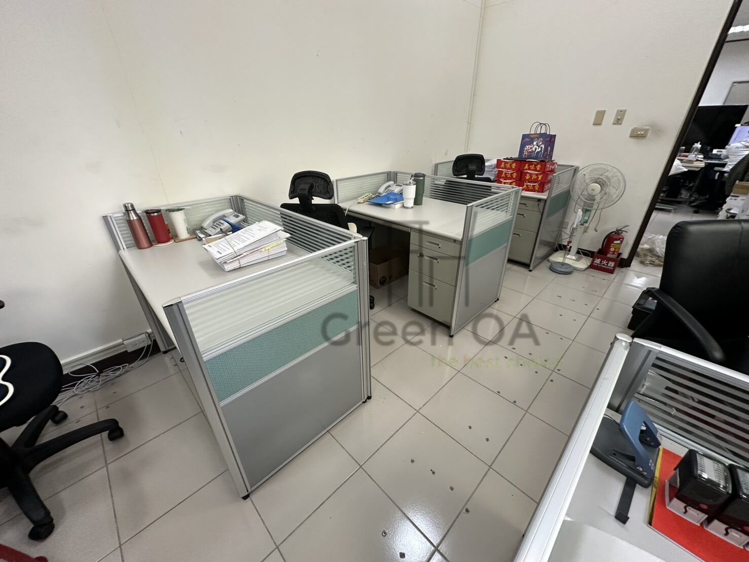 在個人作業區,配置了「單邊三抽辦公桌」,將強大的收納機能直接整合於桌體結構中。三層式的抽屜設計能有效分類各式文書用品與私人物品,不僅省去了配置活動櫃的空間,更讓整體工位視覺顯得清爽俐落。全案透過輕巧的屏風線條與實用的桌款組合,成功在有限的坪數內創造出極大化的作業平面,為客戶建構出一個明亮、流暢且充滿朝氣的現代辦公環境。