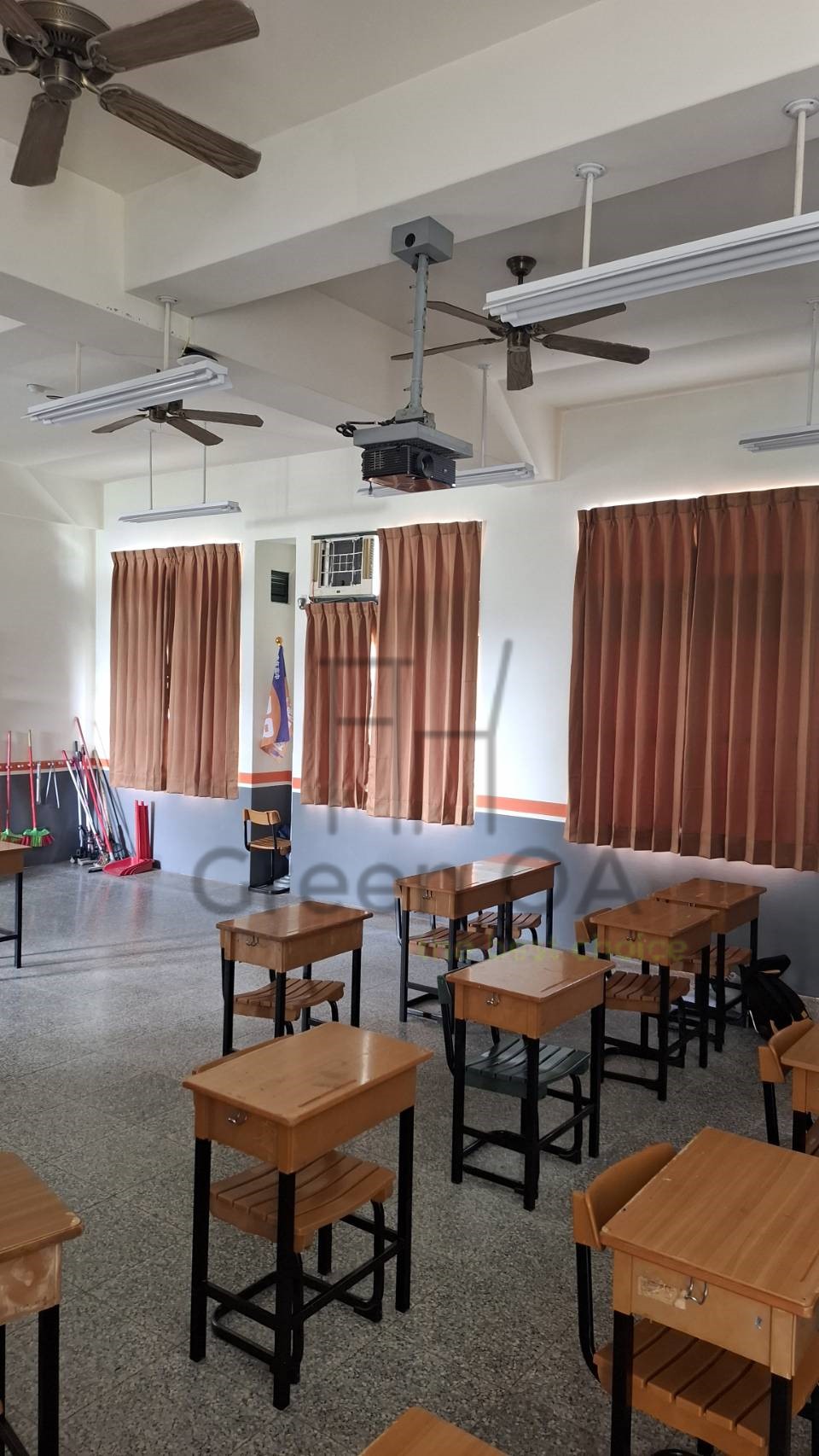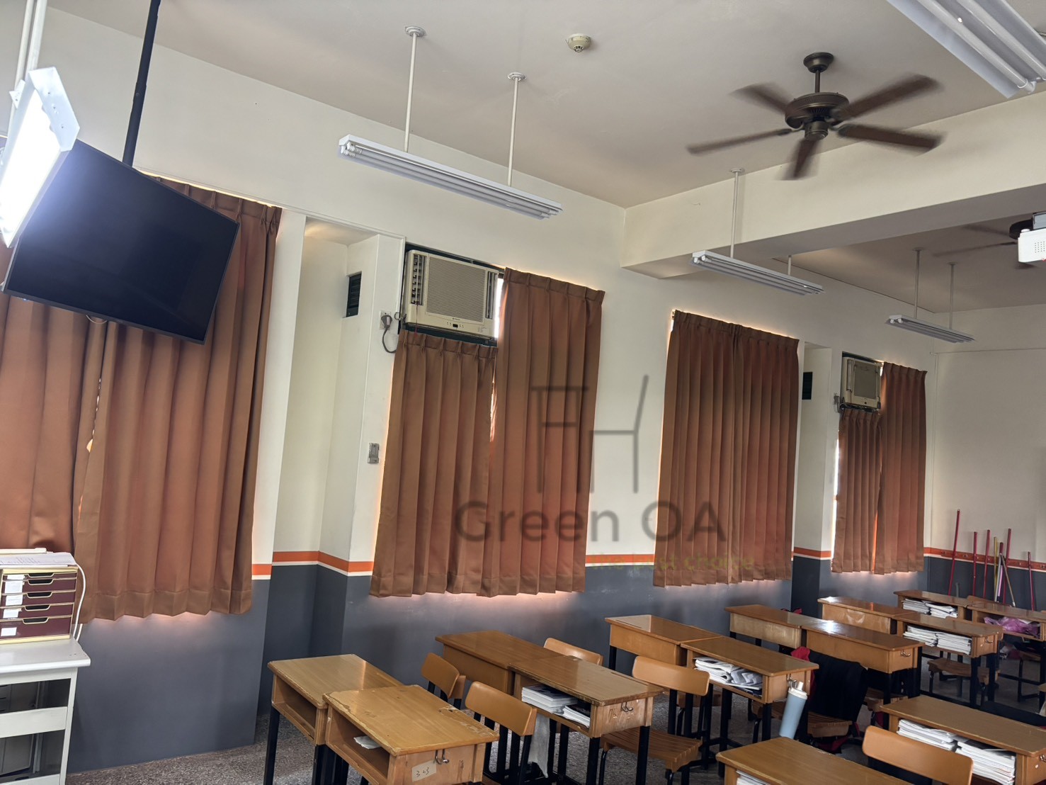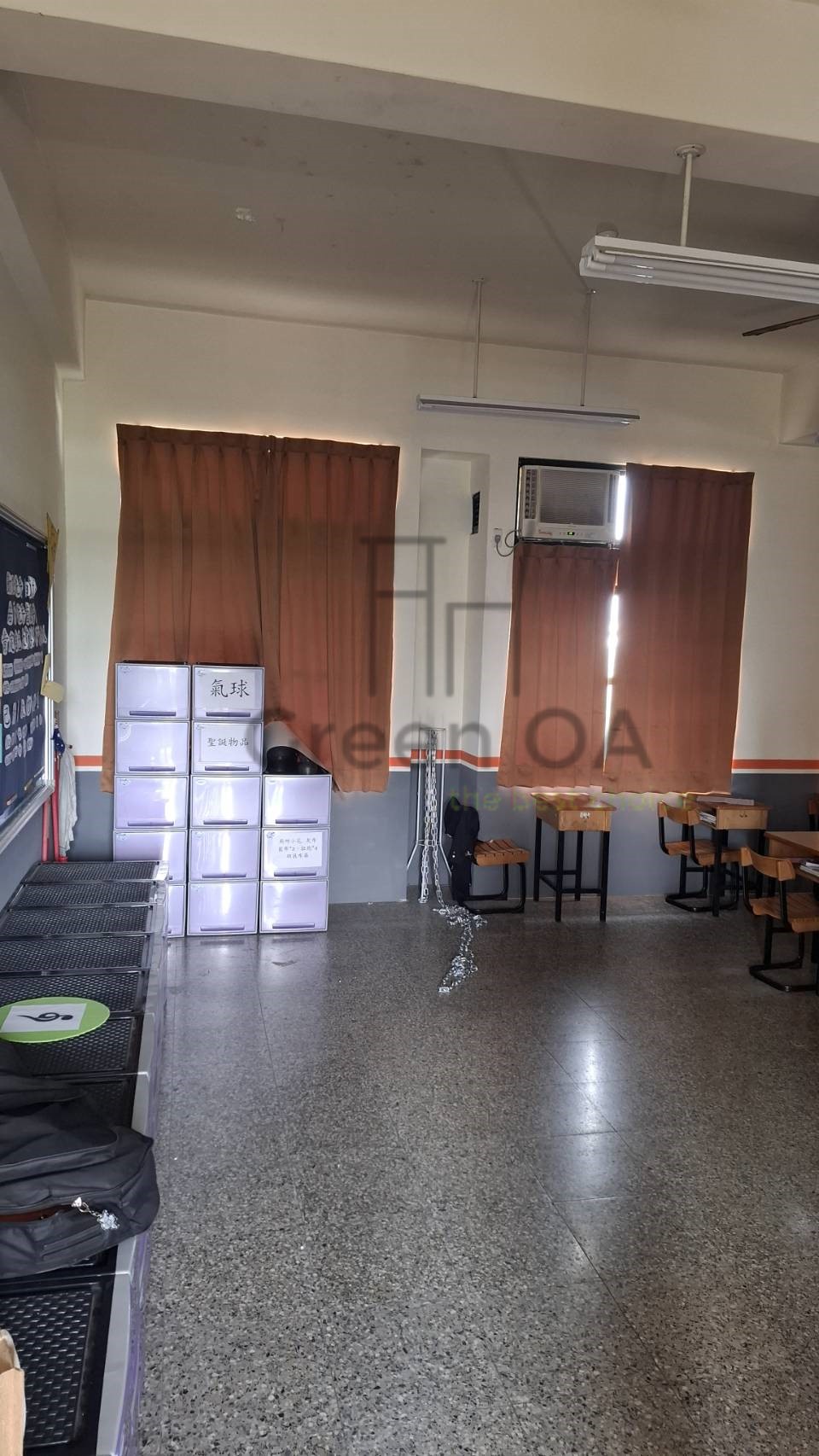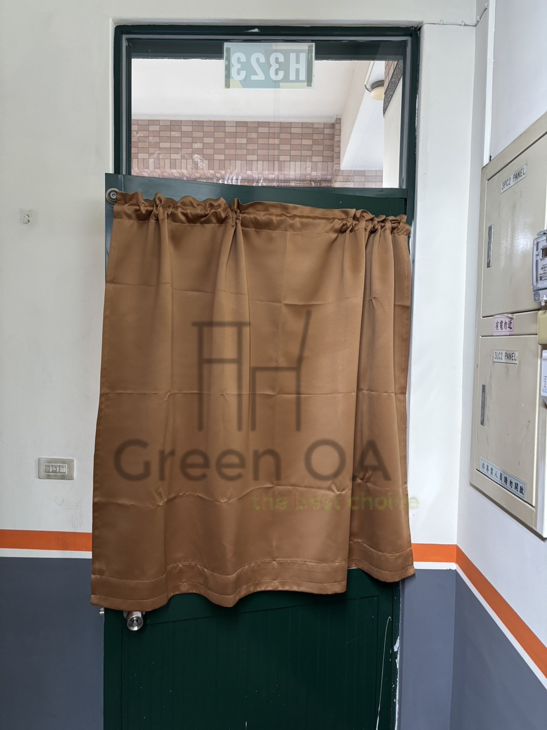 此案為窗簾安裝工程,採用高遮光布料設計,能有效阻擋外部強光、降低室內溫度,同時維持舒適的學習與工作環境。整體色調選用溫潤的咖啡色系,搭配教室牆面與木質桌椅,營造柔和且穩定的空間氛圍。窗簾收邊俐落、垂墜度佳,操作順暢,兼具實用性與整體美觀。此案充分體現 Green OA 對學校與公共空間整體環境優化的專業規劃能力,從功能性、耐用度到整體視覺協調,皆達到完善平衡。