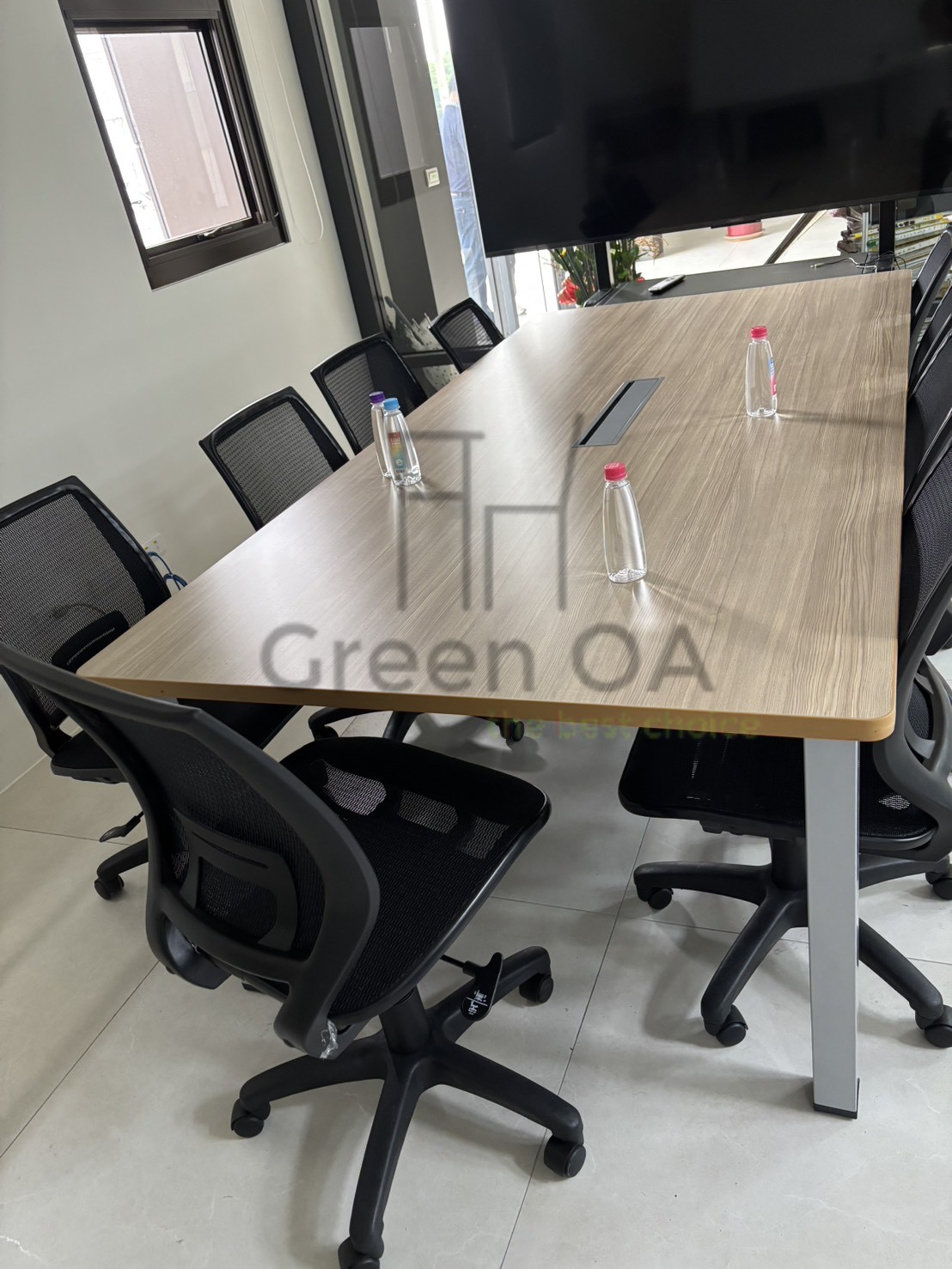 此案採用 S60 方管腳會議桌 搭配 二代可掀式折合桌 與 人體工學會議椅,整體配置兼具機能與現代感。S60 方管腳結構穩固,線條俐落,搭配木紋桌面展現自然溫潤質感;內嵌式走線孔設計,方便整理會議設備與線材,維持桌面整潔。二代可掀式折合桌具備快速開合與移動功能,讓空間使用更靈活,可依會議需求自由組合或收納。搭配的會議椅採透氣網背與人體工學設計,兼顧舒適與支撐性,適合長時間討論使用。整體配置呈現簡約專業風格,適用於現代企業會議室與多功能協作空間。