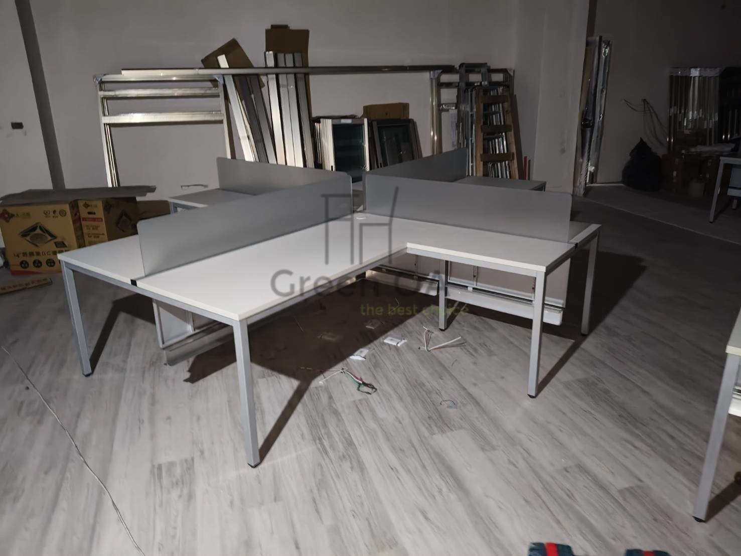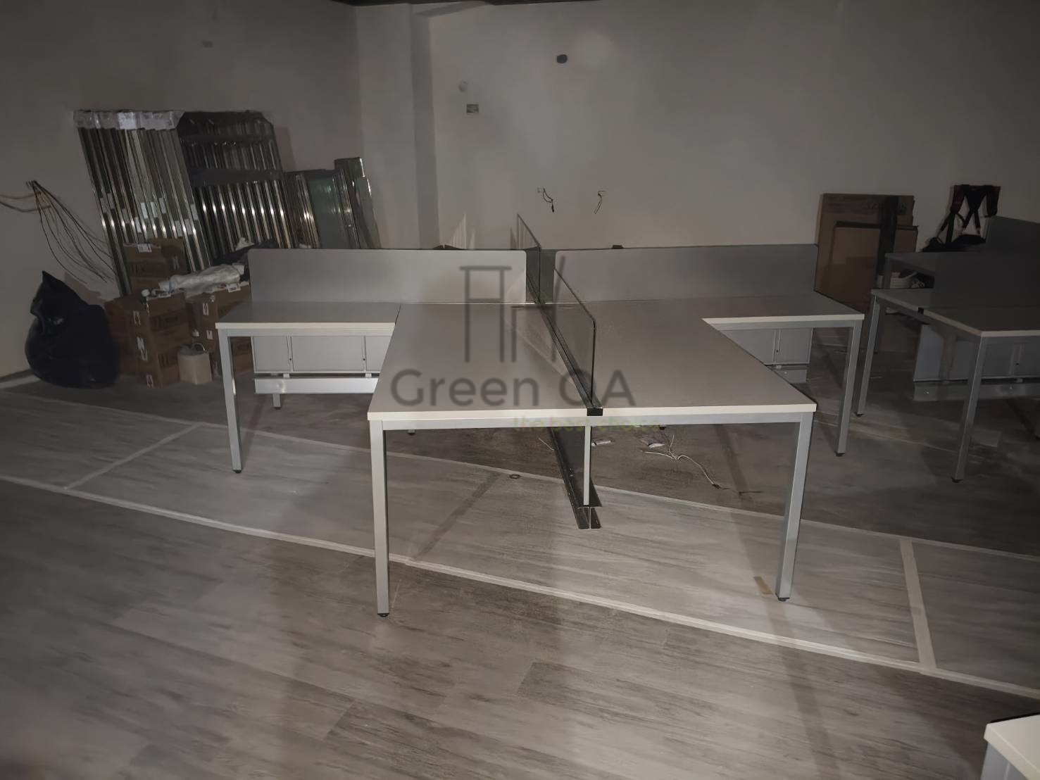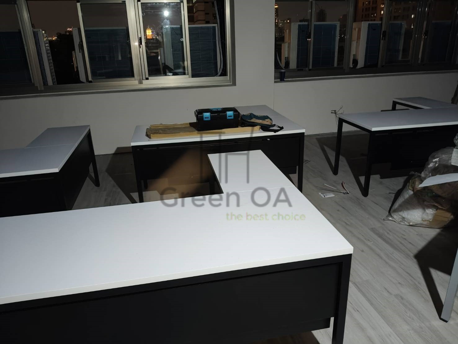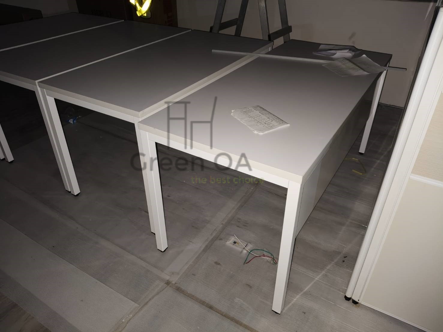 本案採用2.5 屏風(122 高)烤白+主桌+側桌+S40 工作站+桌上屏的整合配置,打造明亮且高效率的辦公環境。122 公分高烤白屏風有效區隔座位,降低干擾,同時維持空間通透感;主桌與側桌提供延伸作業檯面,支援多工處理。S40 工作站強化團隊配置效率,桌上屏則進一步提升個人專注度。整體風格簡潔一致,兼顧實用機能與專業形象,適合行政與團隊型辦公空間。