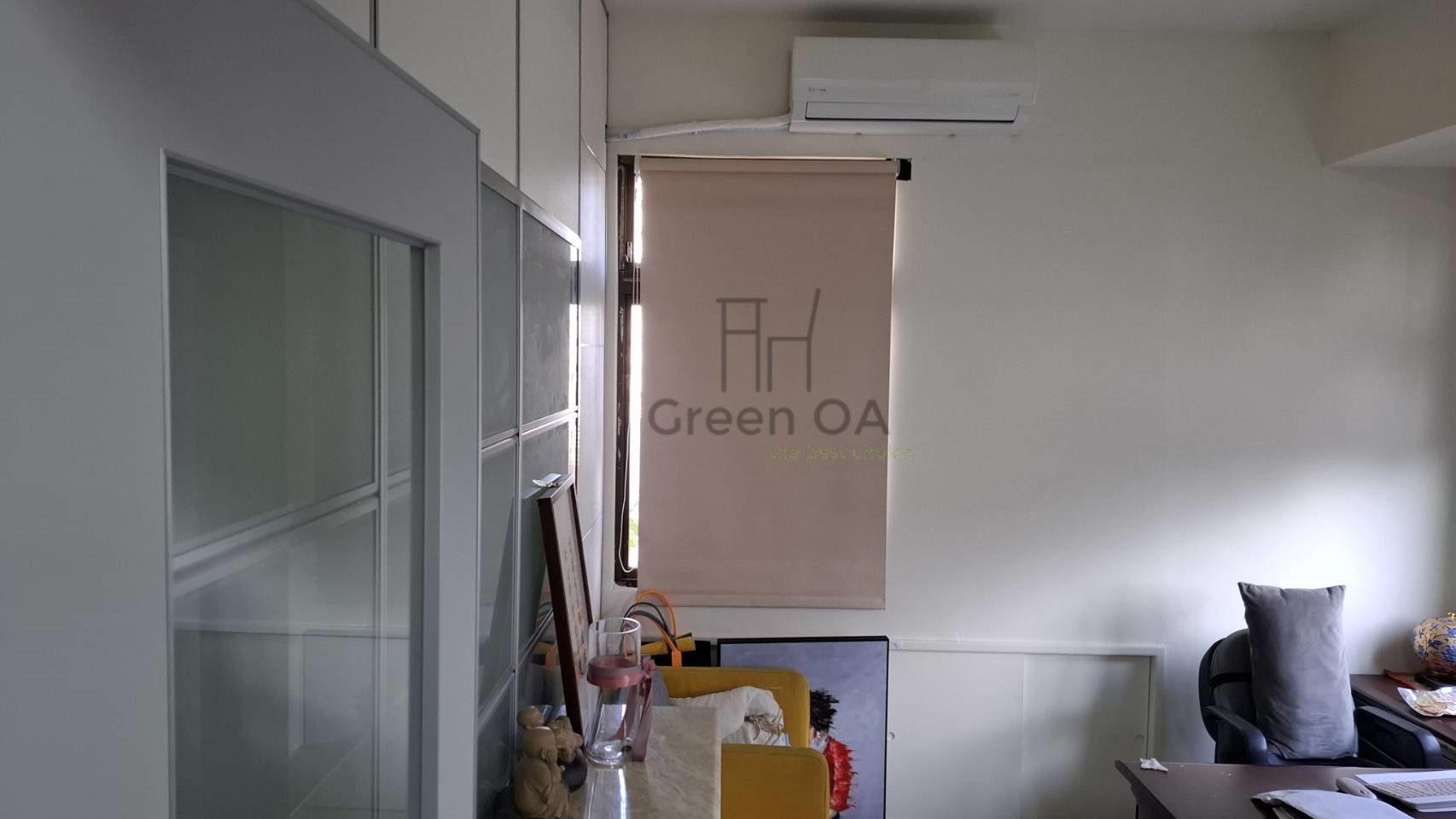 本案規劃安裝遮光簾,針對辦公空間日照強烈與眩光問題進行改善。遮光簾可有效阻隔直射陽光,降低室內溫度與螢幕反光,提升員工長時間使用電腦時的舒適度與專注力。整體色系選擇柔和耐看,與原有辦公家具與隔間風格自然融合,不影響空間整潔感。操作方式簡單順暢,能依不同時段彈性調整採光,兼顧隱私、防曬與實用機能,為日常辦公環境帶來更穩定舒適的工作品質。