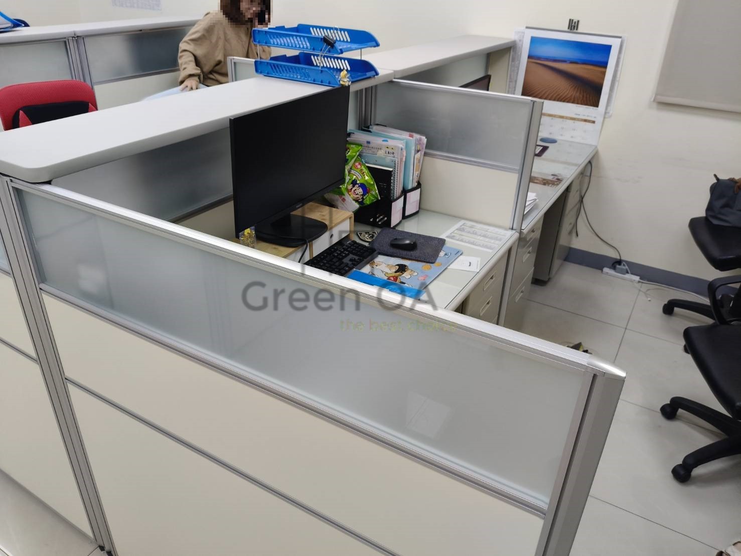 本案採用2.5 屏風(122 高)+櫃檯板的整合配置,清楚劃分作業區與對外服務區域。122 公分高屏風有效降低視線干擾,兼顧隱私與空間通透感,使工作環境更為舒適。櫃檯板作為內外區域的分界,提升接待動線與作業效率,讓服務流程更加順暢。整體設計線條簡潔,能與既有辦公家具自然搭配,適合行政窗口、服務櫃檯及內勤辦公空間使用。