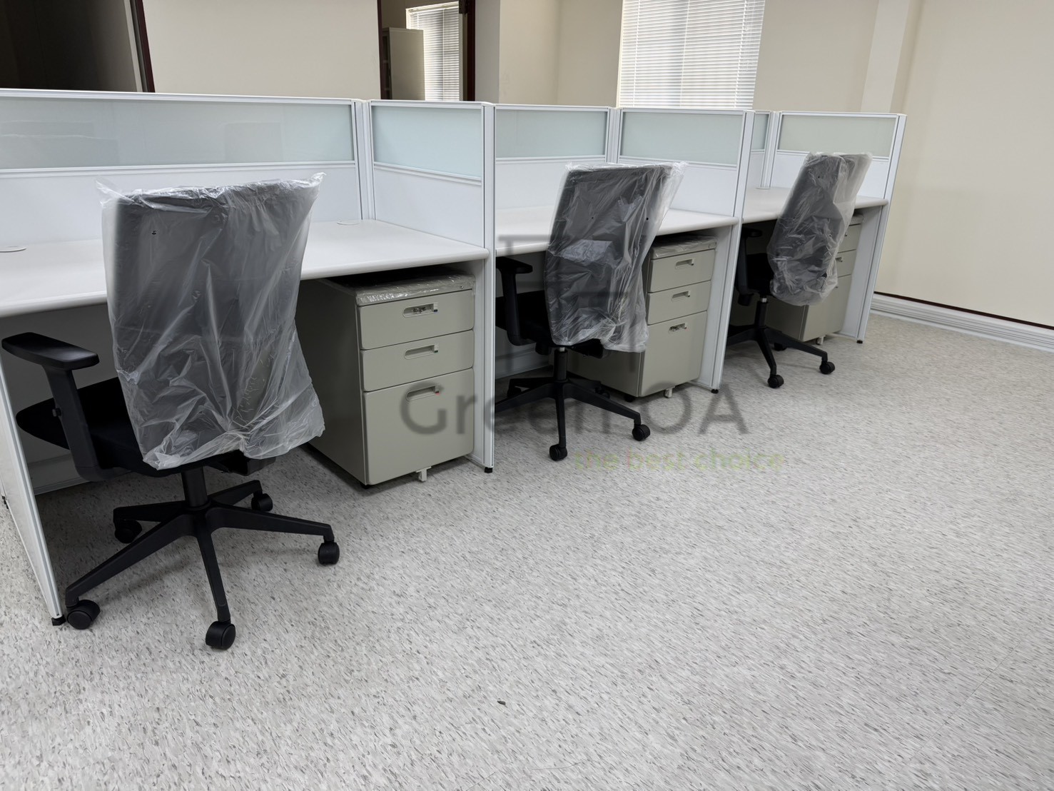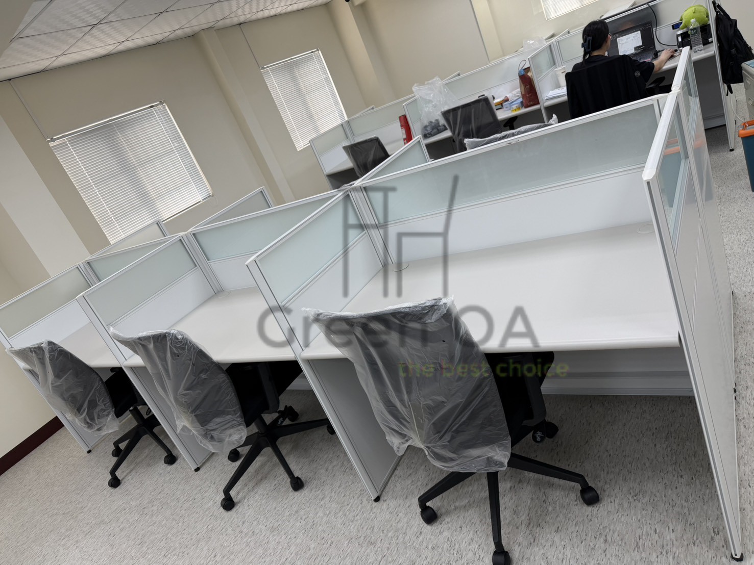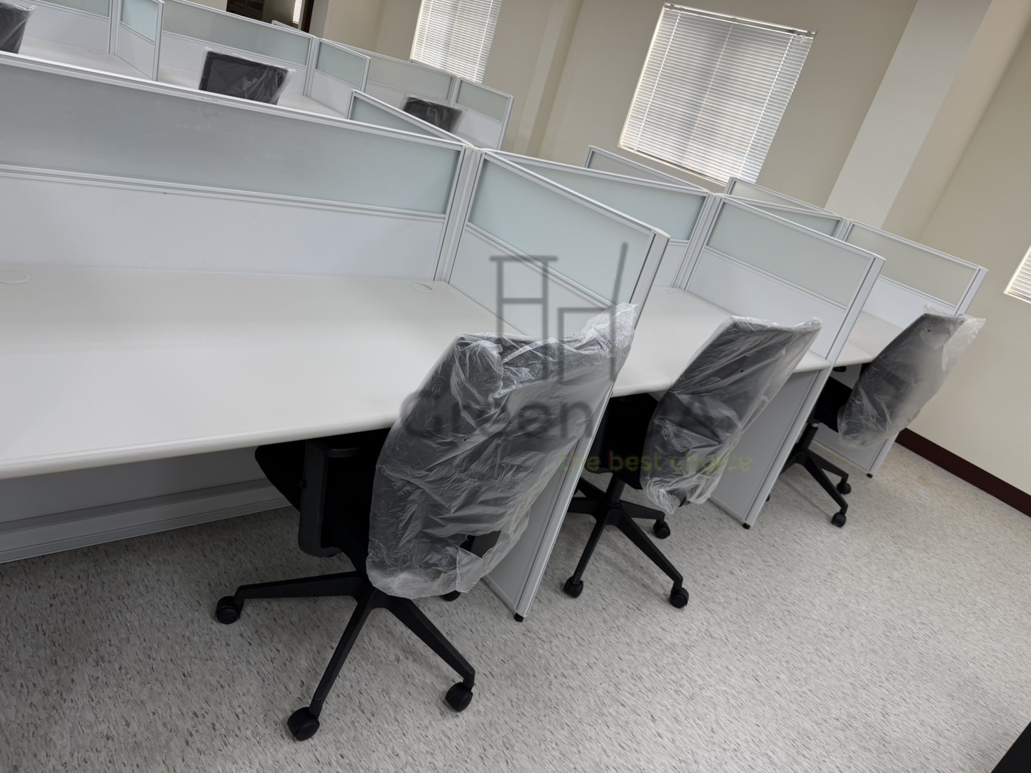 針對這套涵蓋高密度辦公、彈性會議與專業後勤的整合配置,GREEN OA 致力於在多元機能中建立統一美學。空間核心採用 2.5系列烤白屏風 搭配主側桌與職員椅,營造明亮且具隱私的工作站。為了應對變動需求,方案整合了可快速佈署的 H型白色折合桌與黑皮折合椅,讓空間在訓練與討論間自由切換。
