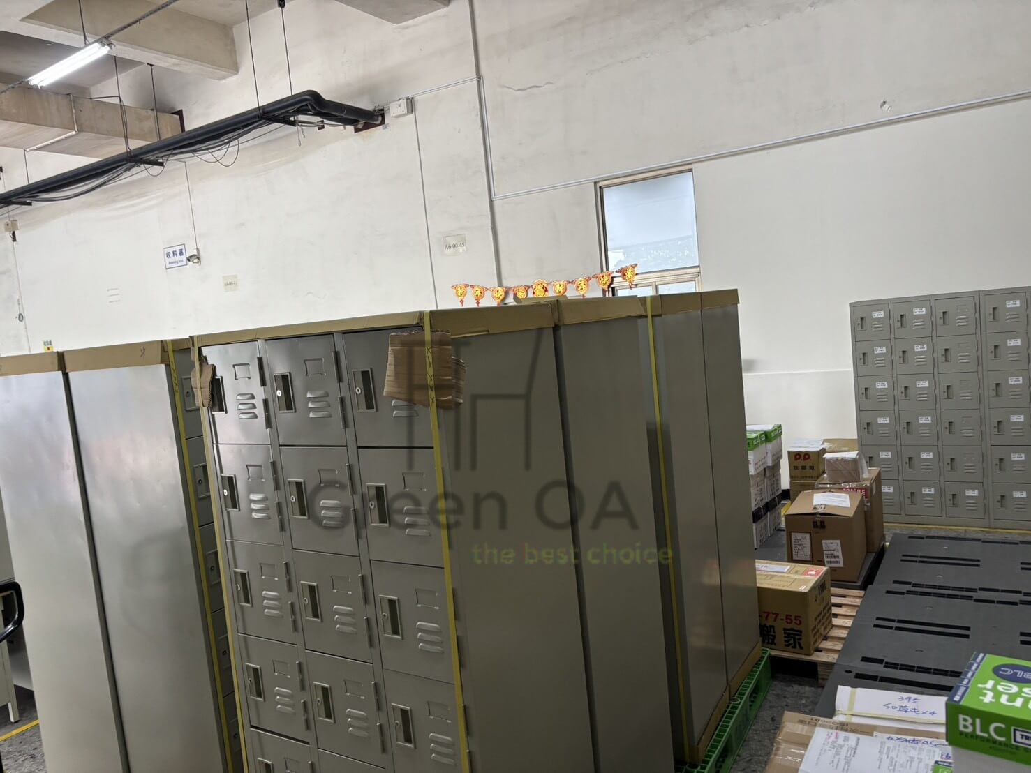 櫃體選用高強度鋼板打造,結構穩固且耐衝擊,表面處理抗污易清潔,極適合高頻率的團體使用環境。每一格位均配備通風孔設計,確保內部空氣流通,並可選配多樣化鎖具以提升安全性。從照片中嚴謹的出貨保護程序,可見 GREEN OA 對品質細節的堅持,我們協助客戶在繁忙的公用空間中,建立起最井然有序的收納秩序。