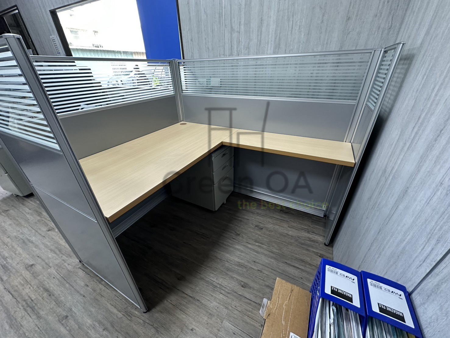 本案展現了 GREEN OA 如何透過材質色調與空間規劃,定義辦公室的階層感與專業度。在個人工作位部分,採用 2.5 系列屏風(132 公分高) 搭配清爽的淺木紋桌板與延伸側桌,營造出明亮且高效的 L 型作業區,並配置靈活的活動櫃滿足日常收納。