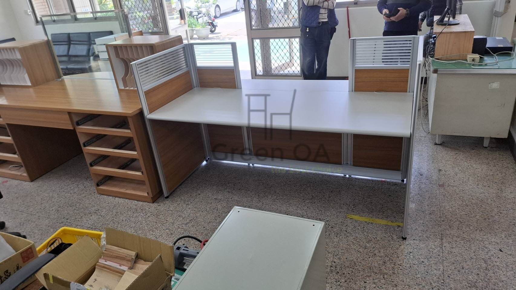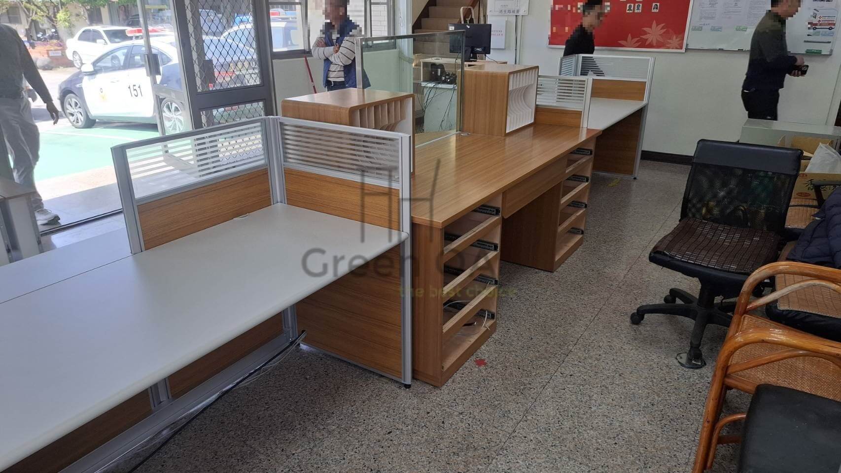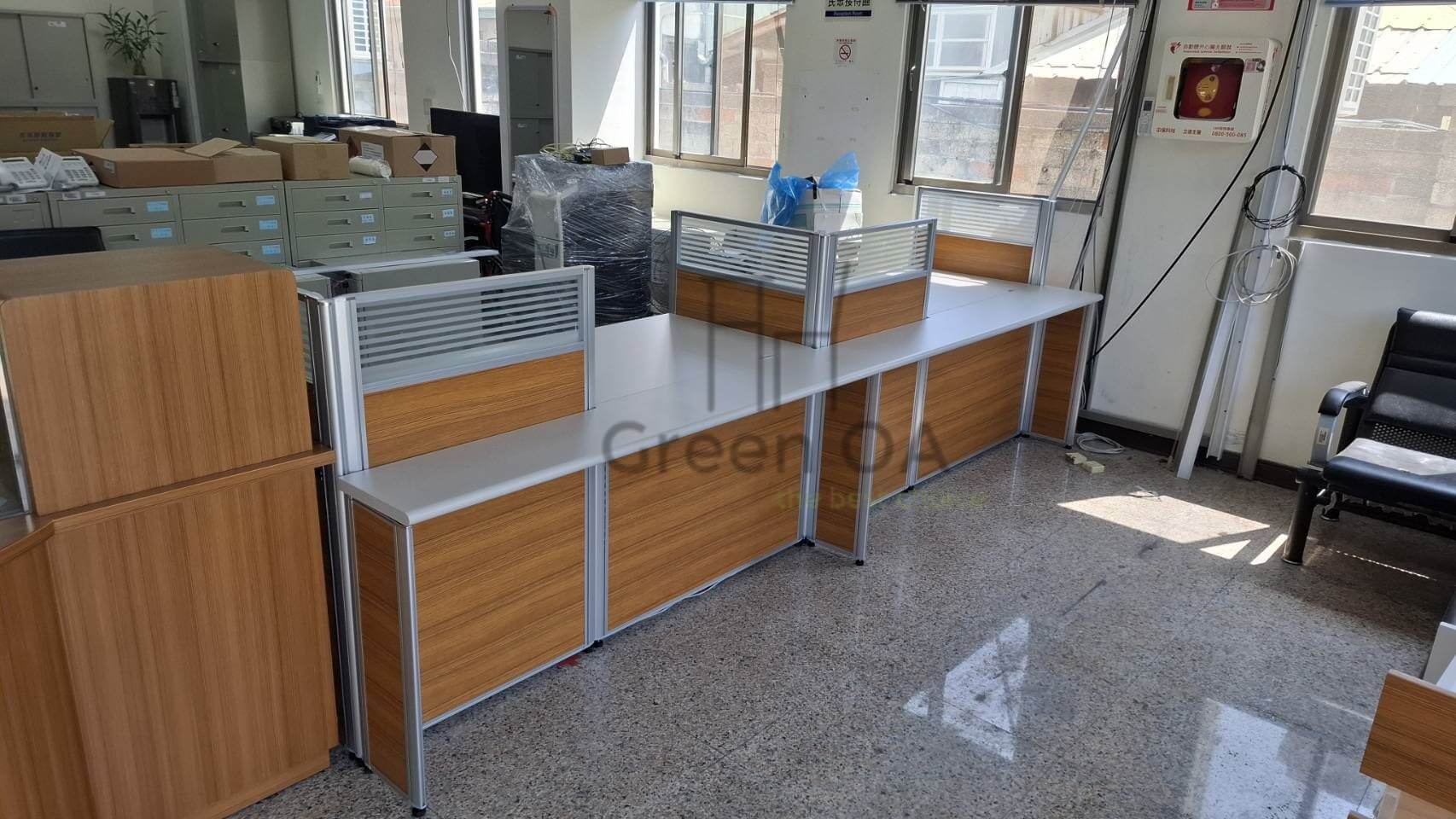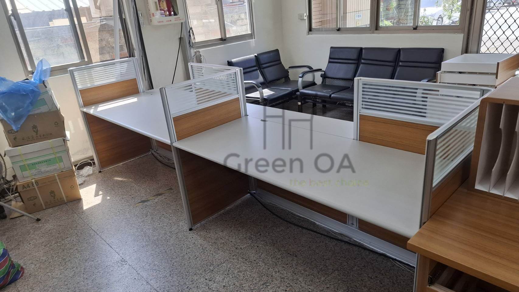 這種高低錯落的設計,打破了傳統隔間的呆板感,讓整體辦公室視覺更具層次感。搭配質感簡約的主桌板,GREEN OA 成功在「個人隱私」與「團隊協作」之間找到了完美平衡點,為客戶打造出一個既能專注、又能靈活交流的高效能職場環境。