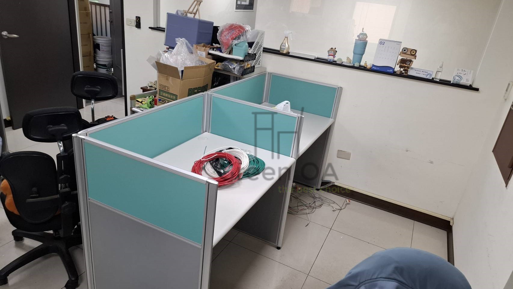 本案專為講求溝通效率與快速作業的空間設計。GREEN OA 選用 2.5系列屏風(102公分高),此高度在坐姿時能界定個人桌面疆界,起身時則擁有完全無阻礙的視野,極大化辦公室的採光與互動性。