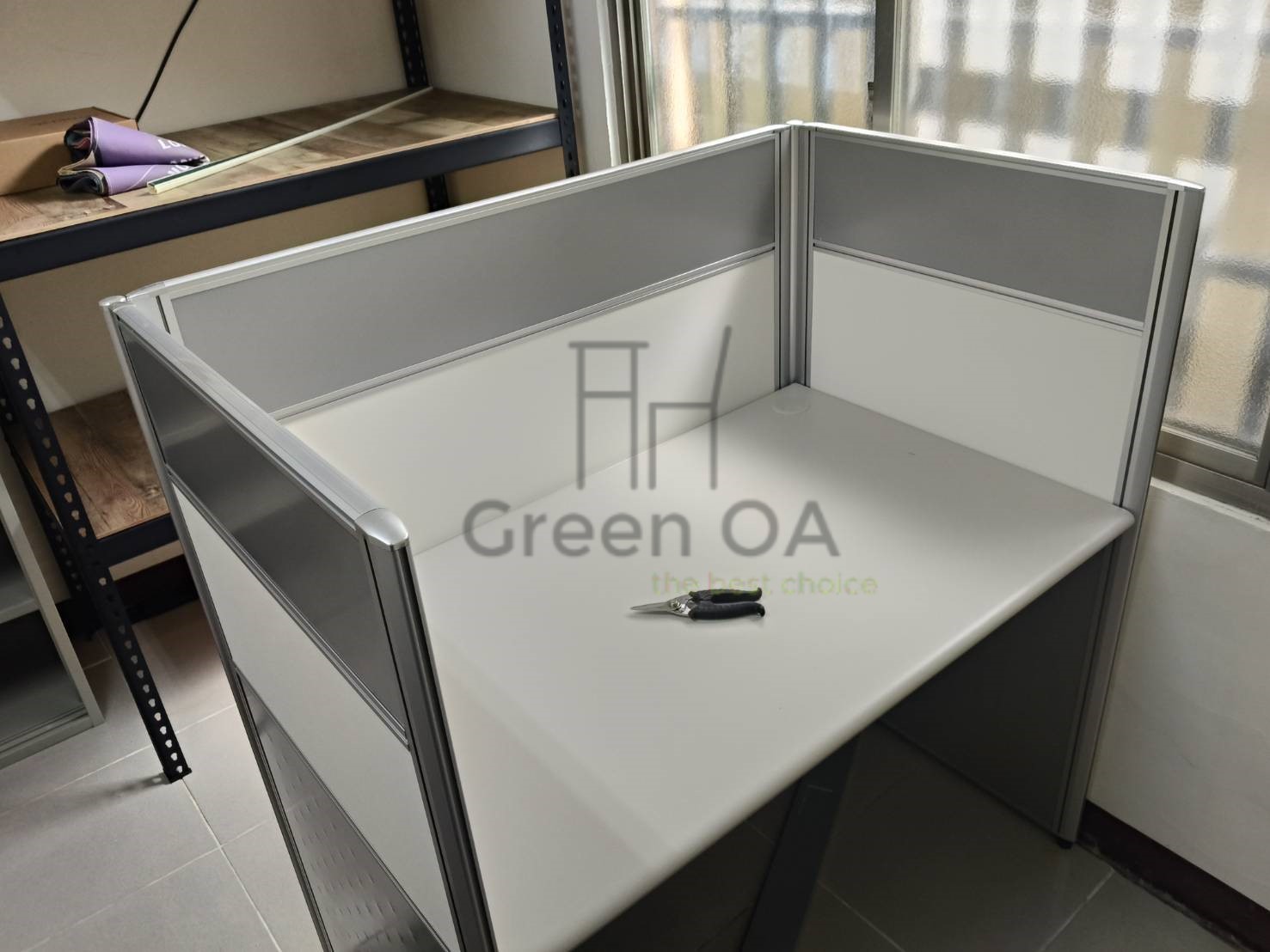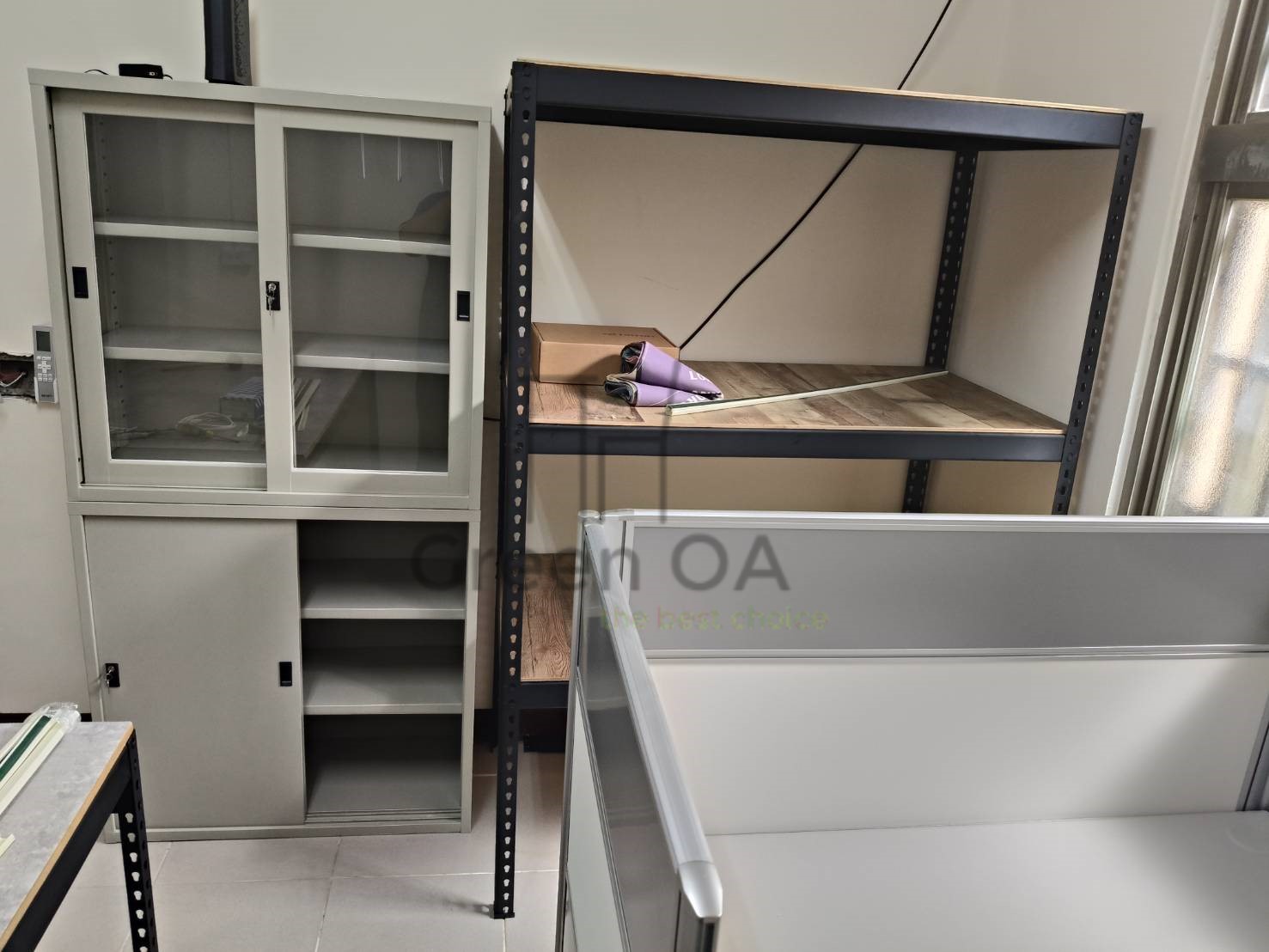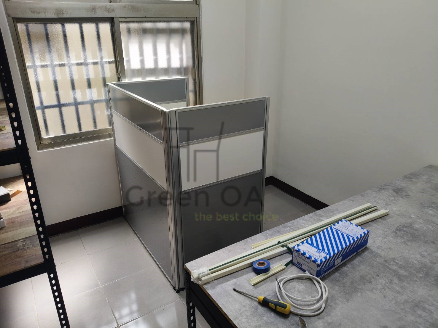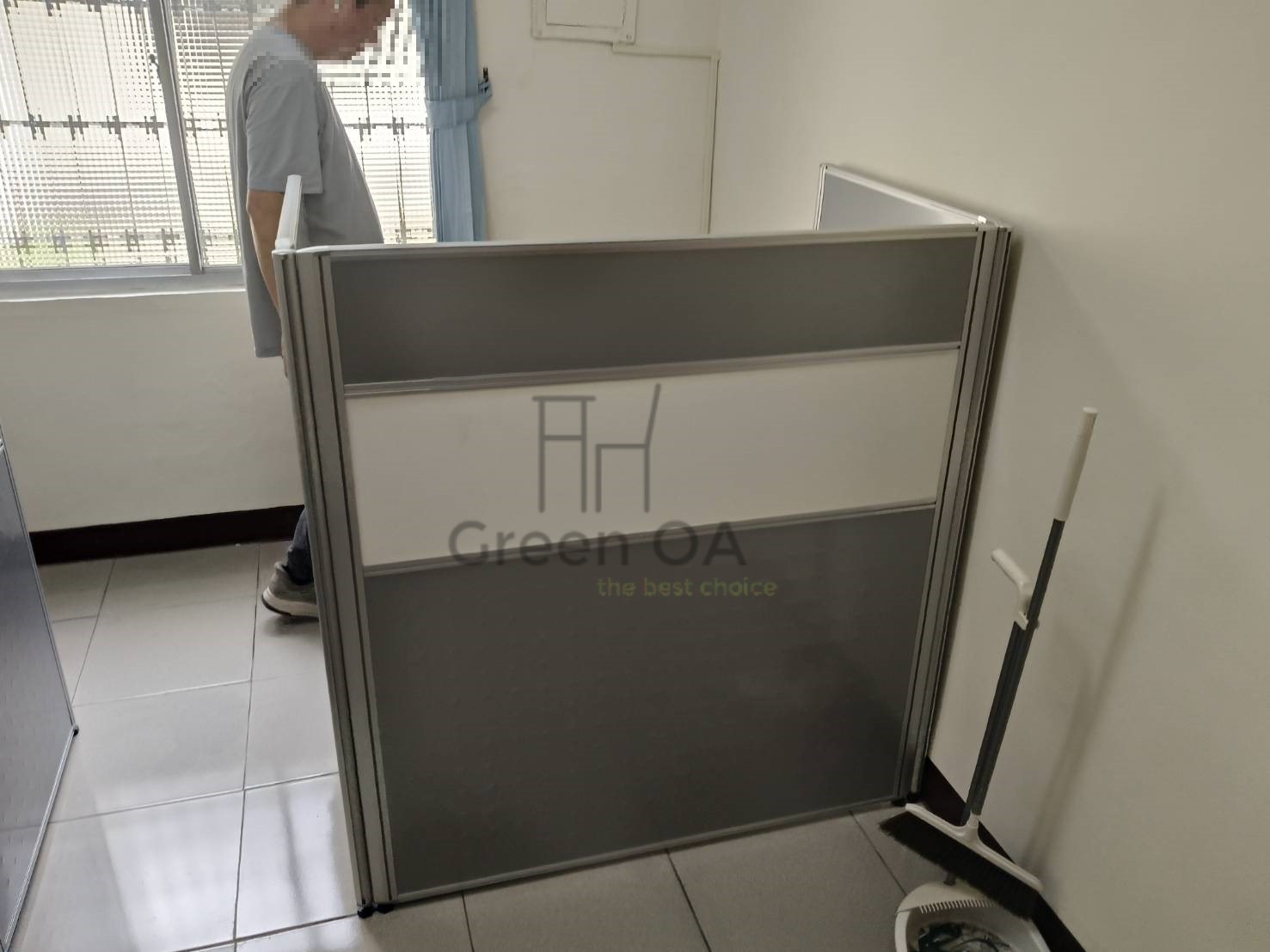 此案為 2.5 屏風(122高)+ 主桌 + 黑色活動櫃 + 職員椅 + 3尺鐵櫃 的整體辦公配置。採用 2.5 公分鋁框屏風搭配中高設計(122cm),有效劃分個人工作區域,同時保留開放感。主桌以淺木紋搭配灰框構成,展現現代簡約風格;黑色活動櫃提供靈活收納機能,兼具穩重與實用;職員椅選用高密度泡棉與透氣網背設計,長時間辦公仍保持舒適支撐。另配置 3 尺鐵櫃作為文件與物品集中儲放區,讓整體空間在秩序與效率間取得完美平衡。此案充分展現 Green OA 在辦公室空間規劃上的專業整合力,兼顧機能性與視覺一致性,打造高效且專業的工作環境。
