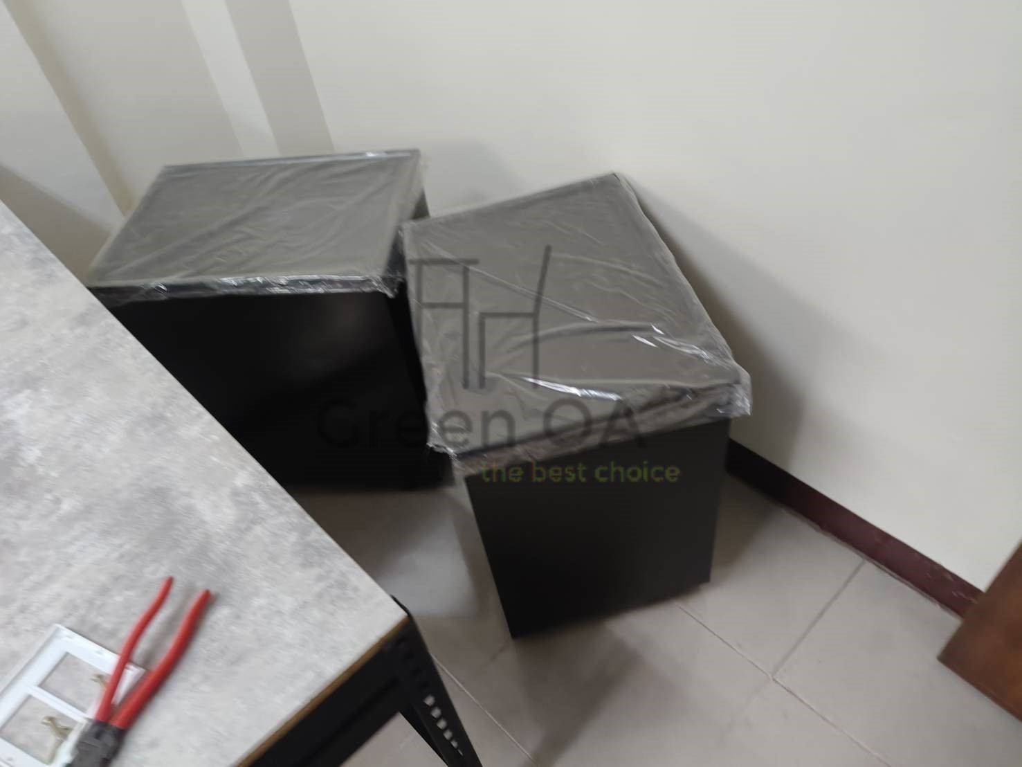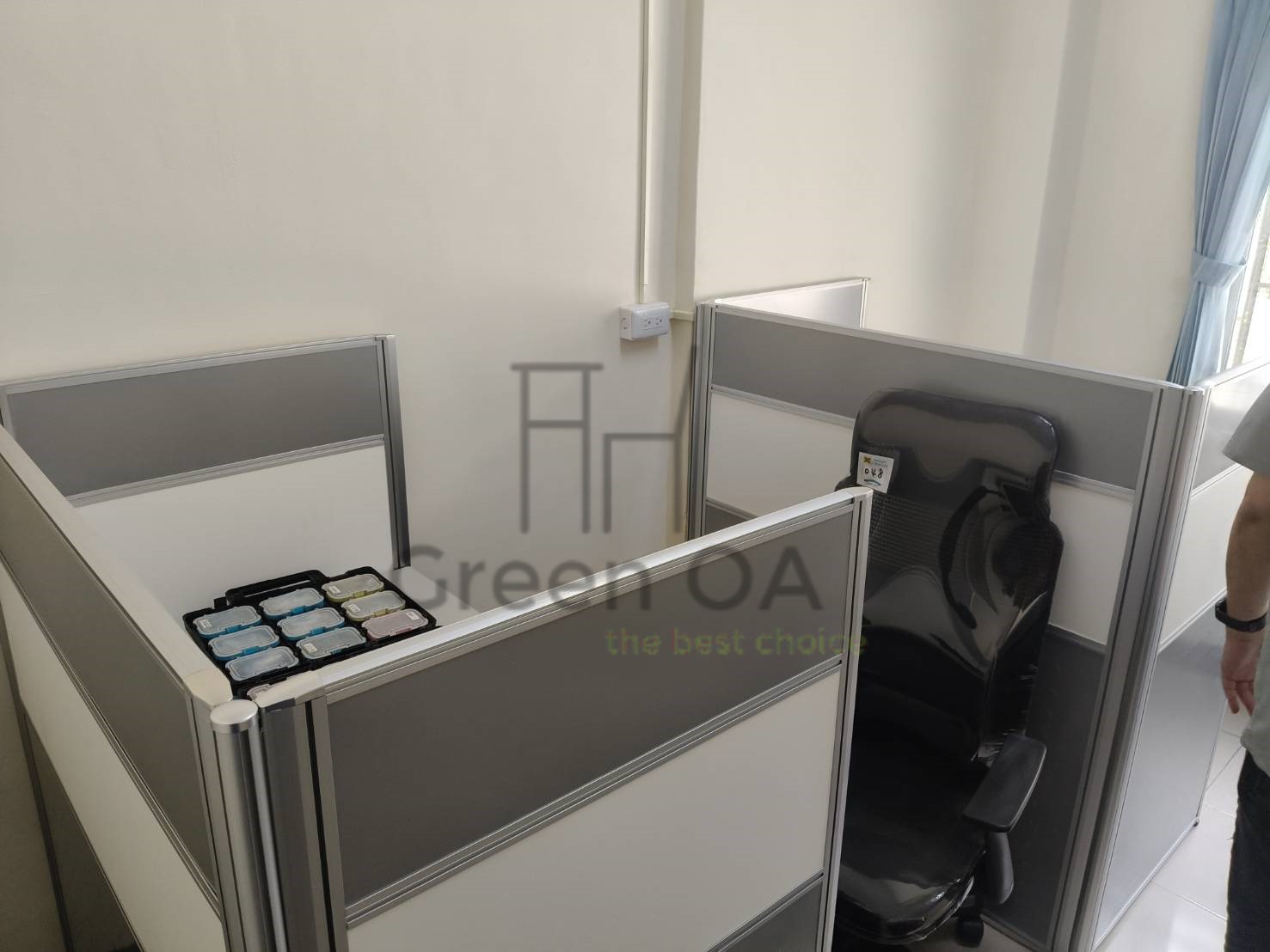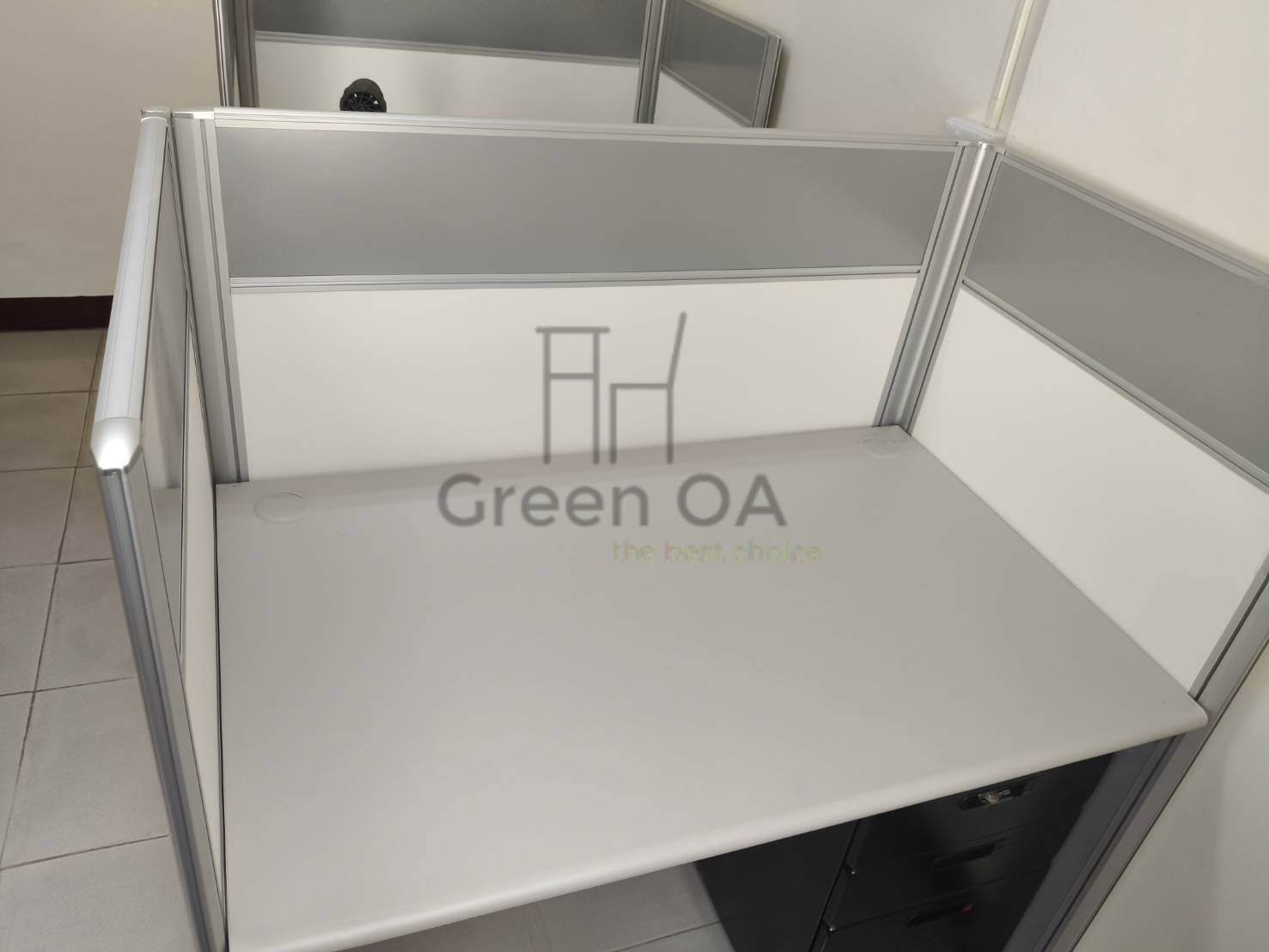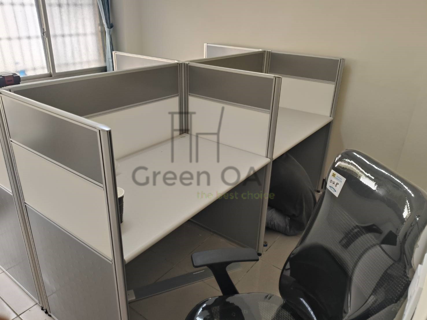 此案為 2.5 屏風(122高)+ 主桌 + 黑色活動櫃 + 職員椅 + 3尺鐵櫃 的整體辦公配置。採用 2.5 公分鋁框屏風搭配中高設計(122cm),有效劃分個人工作區域,同時保留開放感。主桌以淺木紋搭配灰框構成,展現現代簡約風格;黑色活動櫃提供靈活收納機能,兼具穩重與實用;職員椅選用高密度泡棉與透氣網背設計,長時間辦公仍保持舒適支撐。另配置 3 尺鐵櫃作為文件與物品集中儲放區,讓整體空間在秩序與效率間取得完美平衡。此案充分展現 Green OA 在辦公室空間規劃上的專業整合力,兼顧機能性與視覺一致性,打造高效且專業的工作環境。