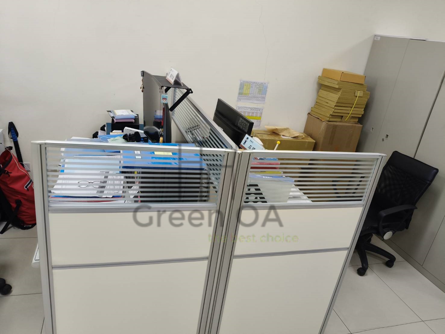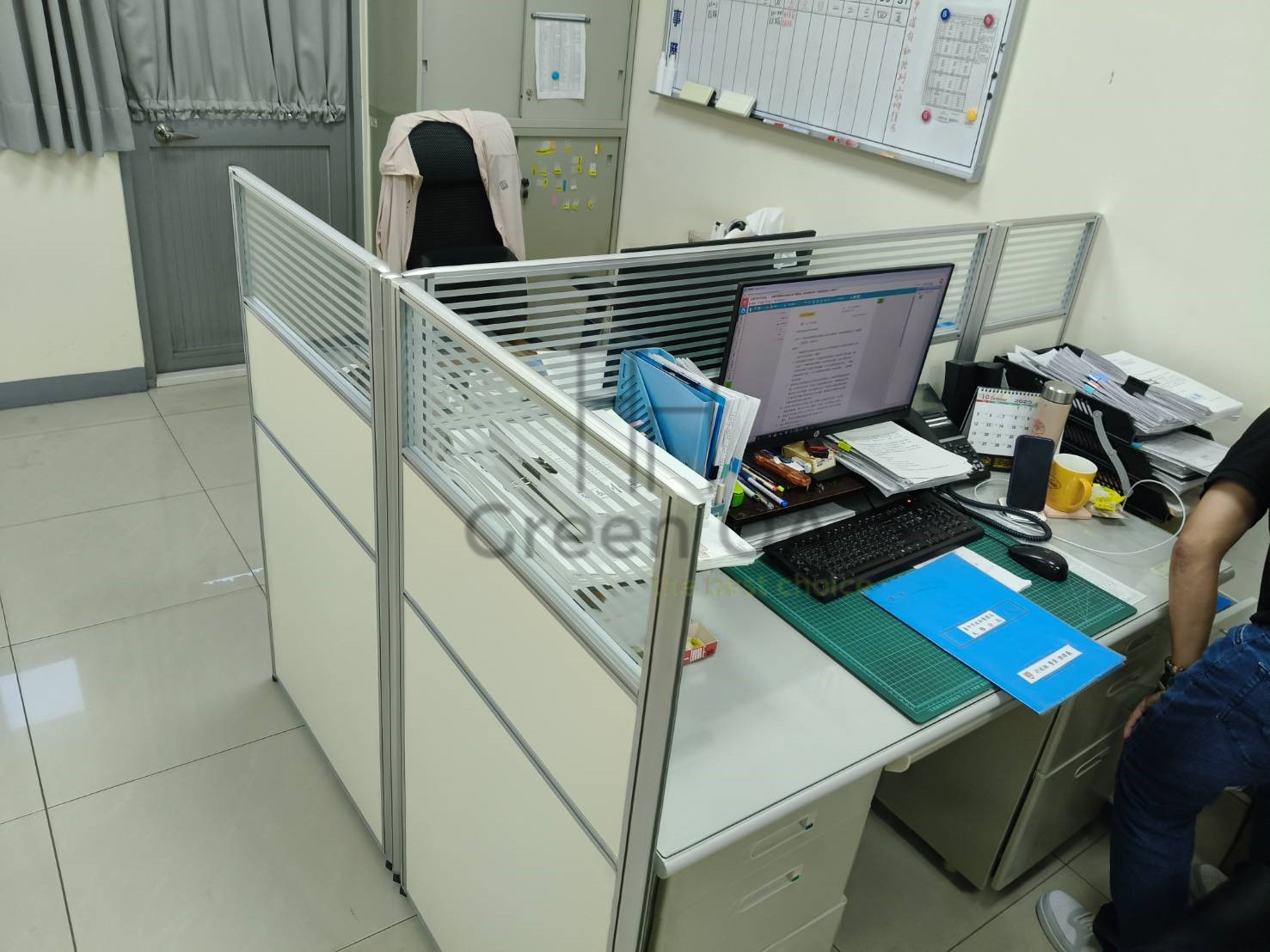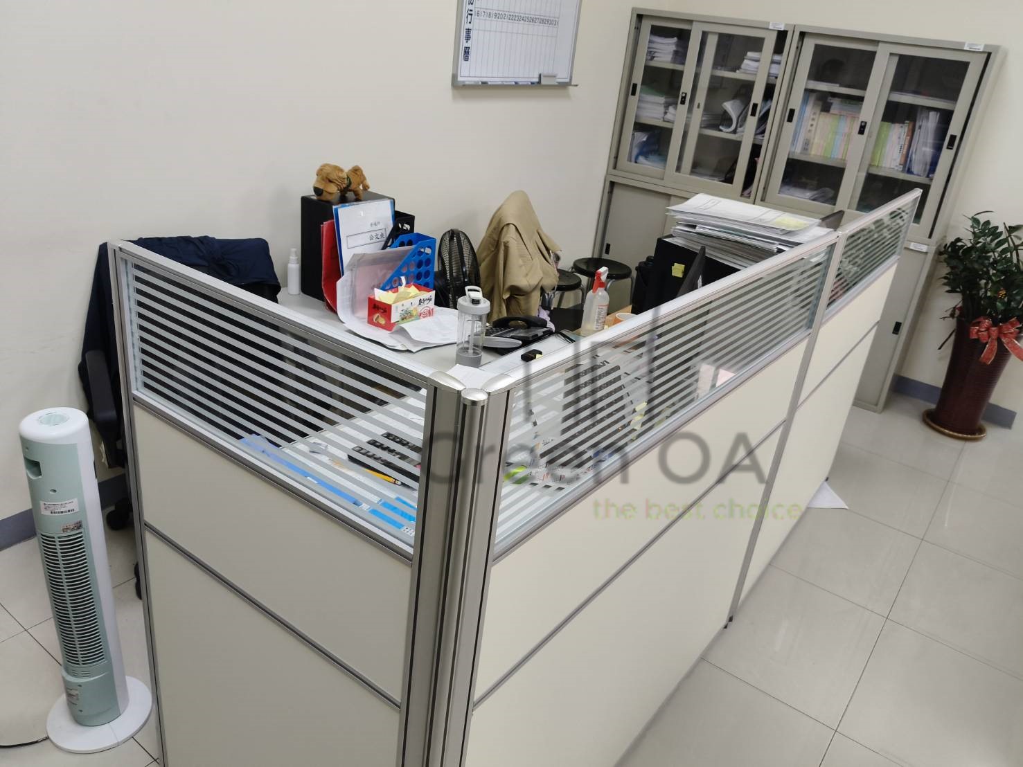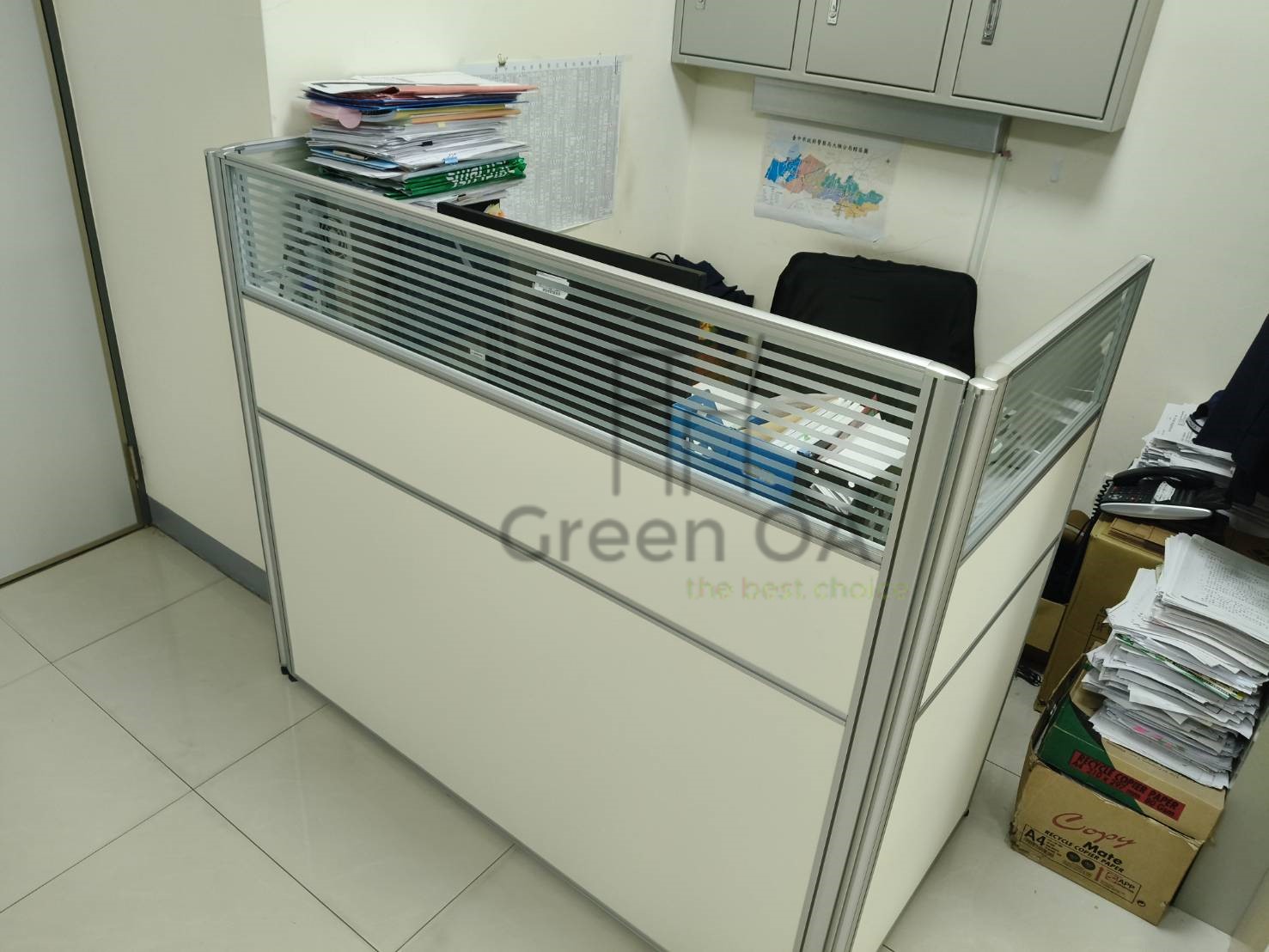 此案為 2.5屏風(122高+132高)+櫃檯板,以雙高度屏風結構打造層次分明的工作與接待空間。122公分區段維持開放感與交流便利,132公分區段則加強隱私與視覺屏蔽,搭配上層櫃檯板,形成自然且實用的接待檯面。屏風採鋁合金框架搭配雙色面板,線條俐落、質感穩重,能與不同辦公風格完美融合。此配置特別適合客服櫃台或行政接待區,兼顧功能性與美觀性,充分展現 Green OA 在空間分區與細節整合上的專業設計能力。
