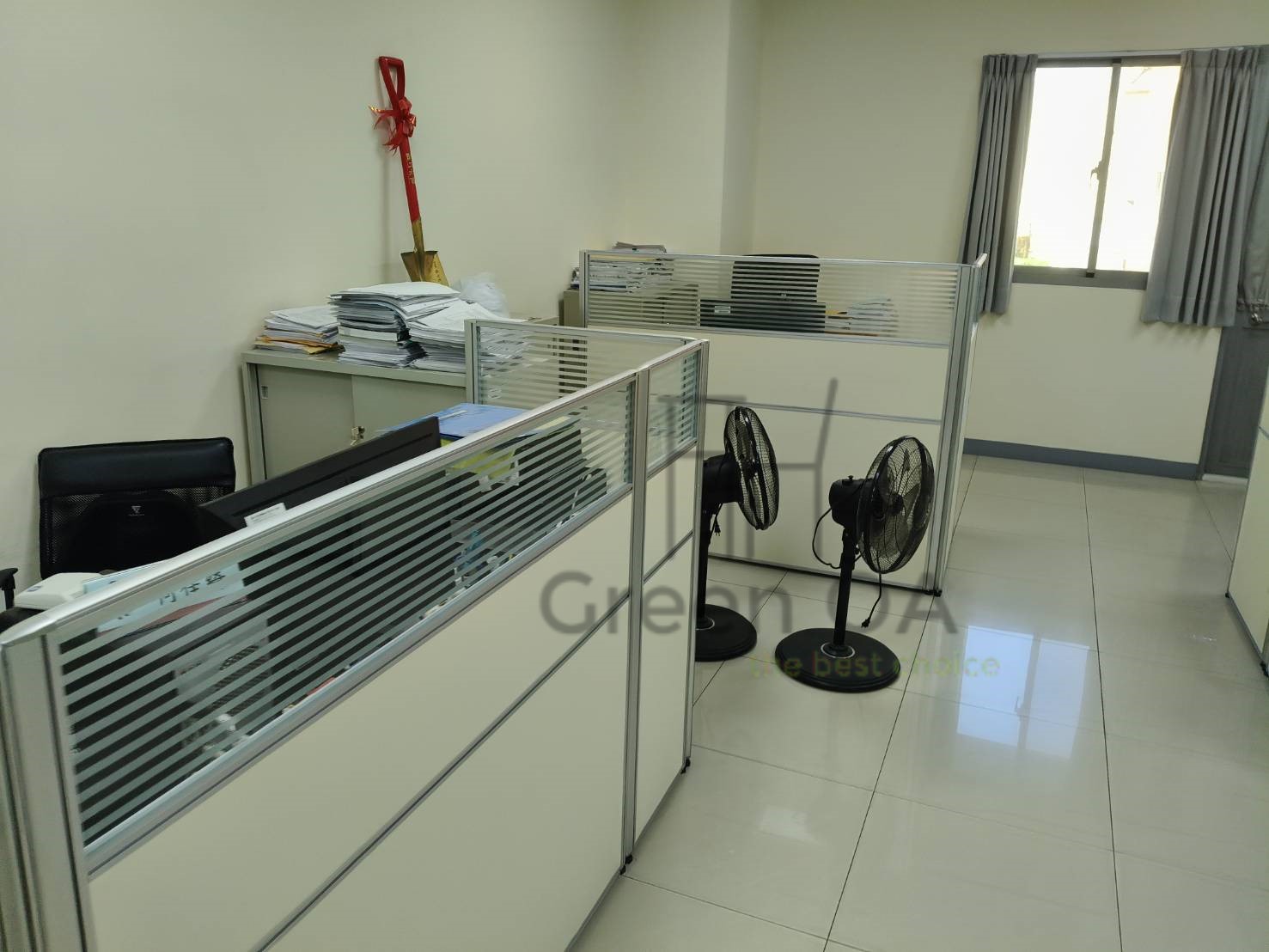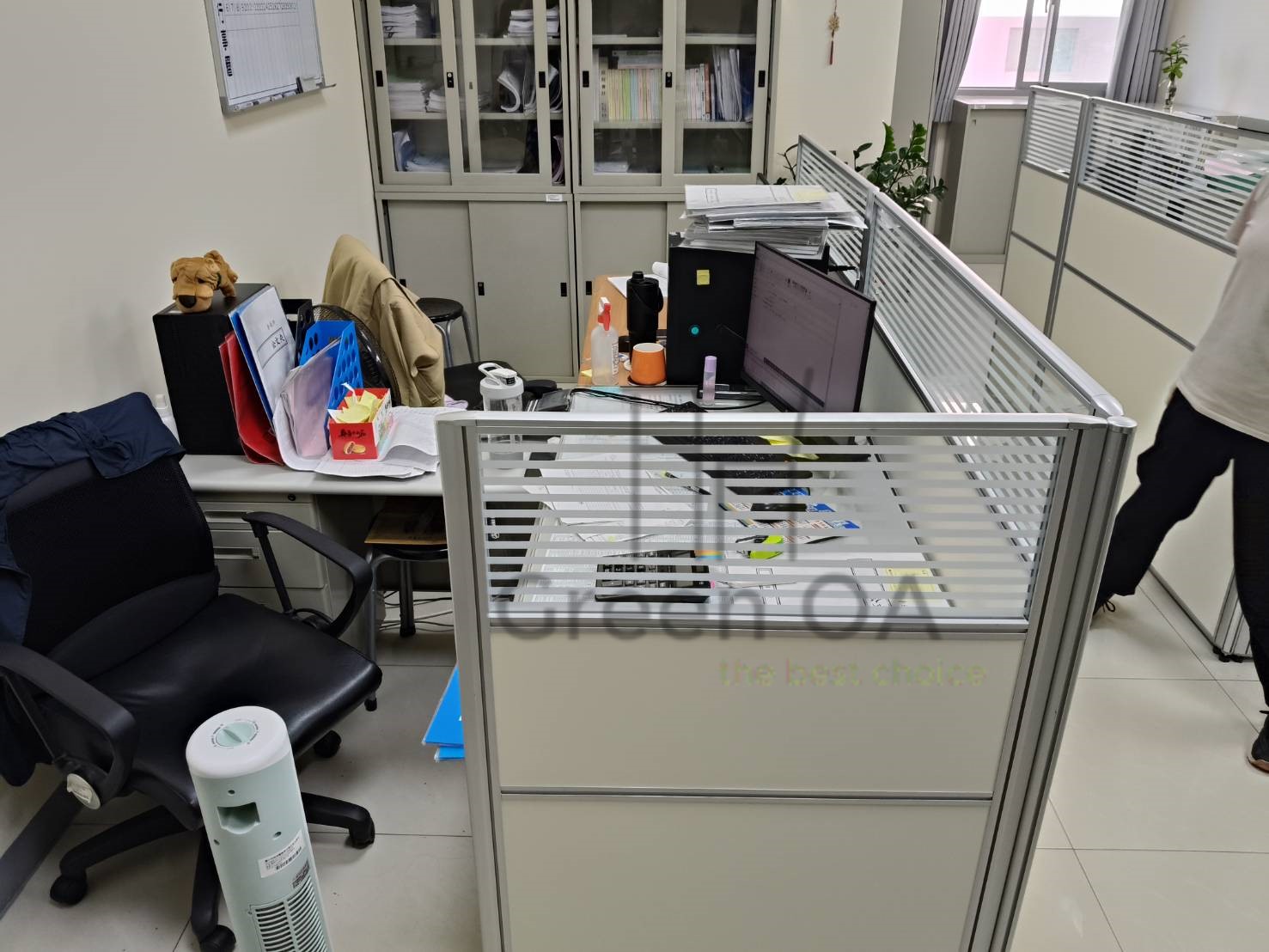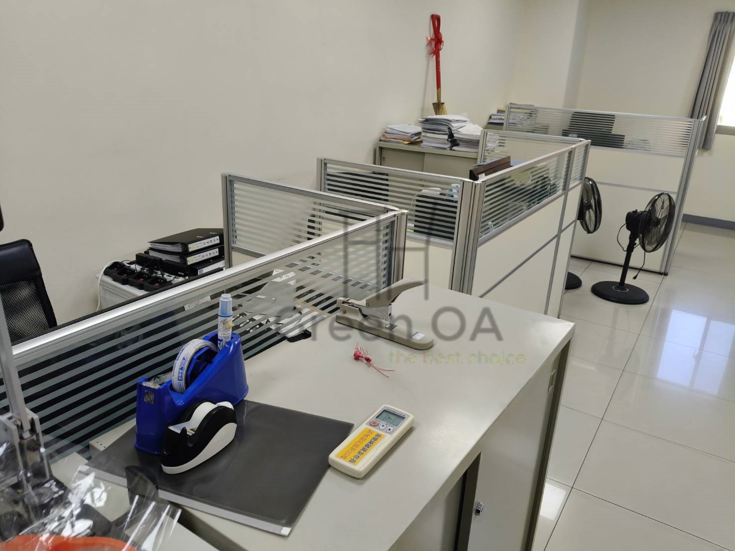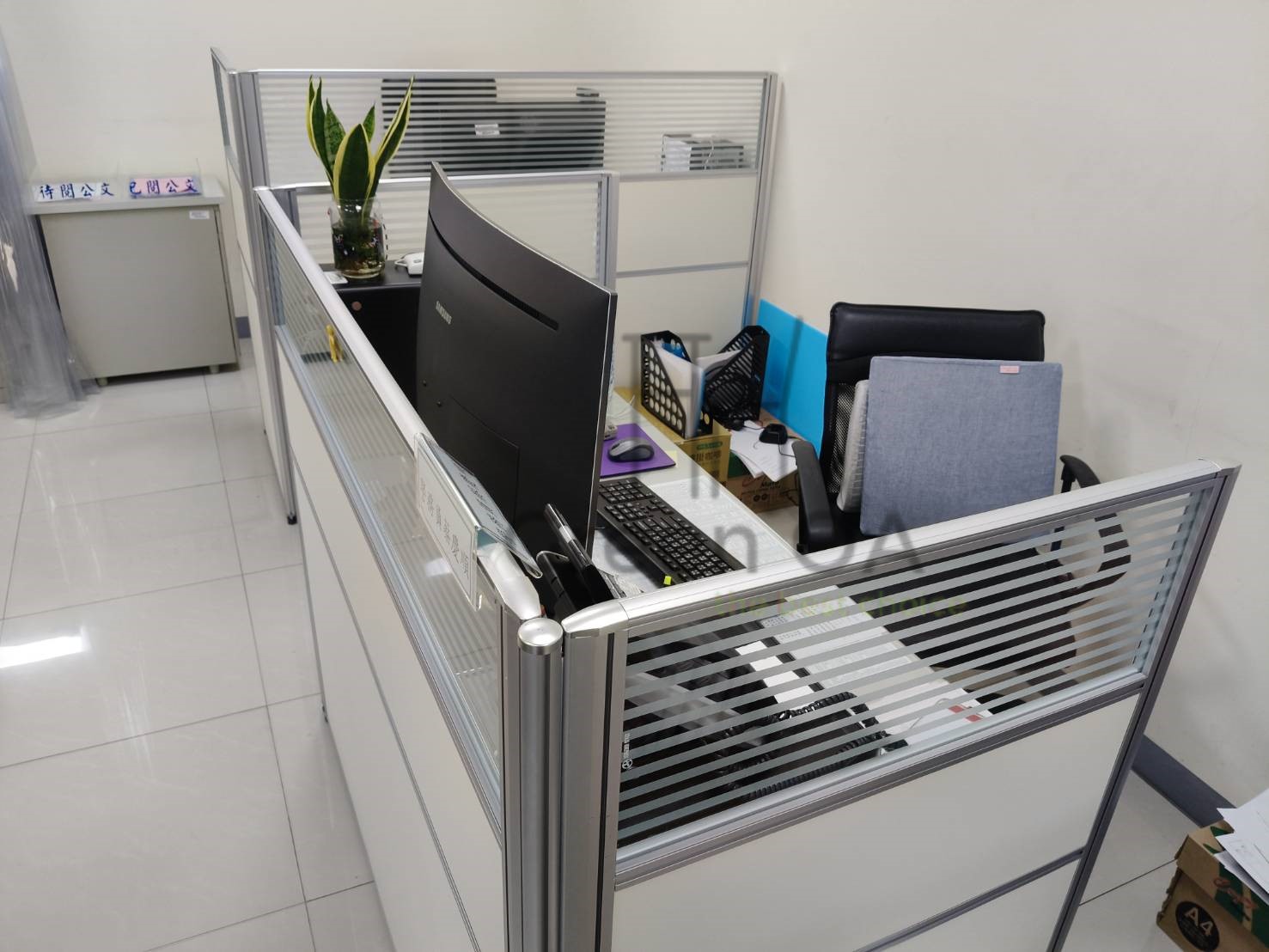 此案為 2.5屏風(122高+132高)+櫃檯板,以雙高度屏風結構打造層次分明的工作與接待空間。122公分區段維持開放感與交流便利,132公分區段則加強隱私與視覺屏蔽,搭配上層櫃檯板,形成自然且實用的接待檯面。屏風採鋁合金框架搭配雙色面板,線條俐落、質感穩重,能與不同辦公風格完美融合。此配置特別適合客服櫃台或行政接待區,兼顧功能性與美觀性,充分展現 Green OA 在空間分區與細節整合上的專業設計能力。