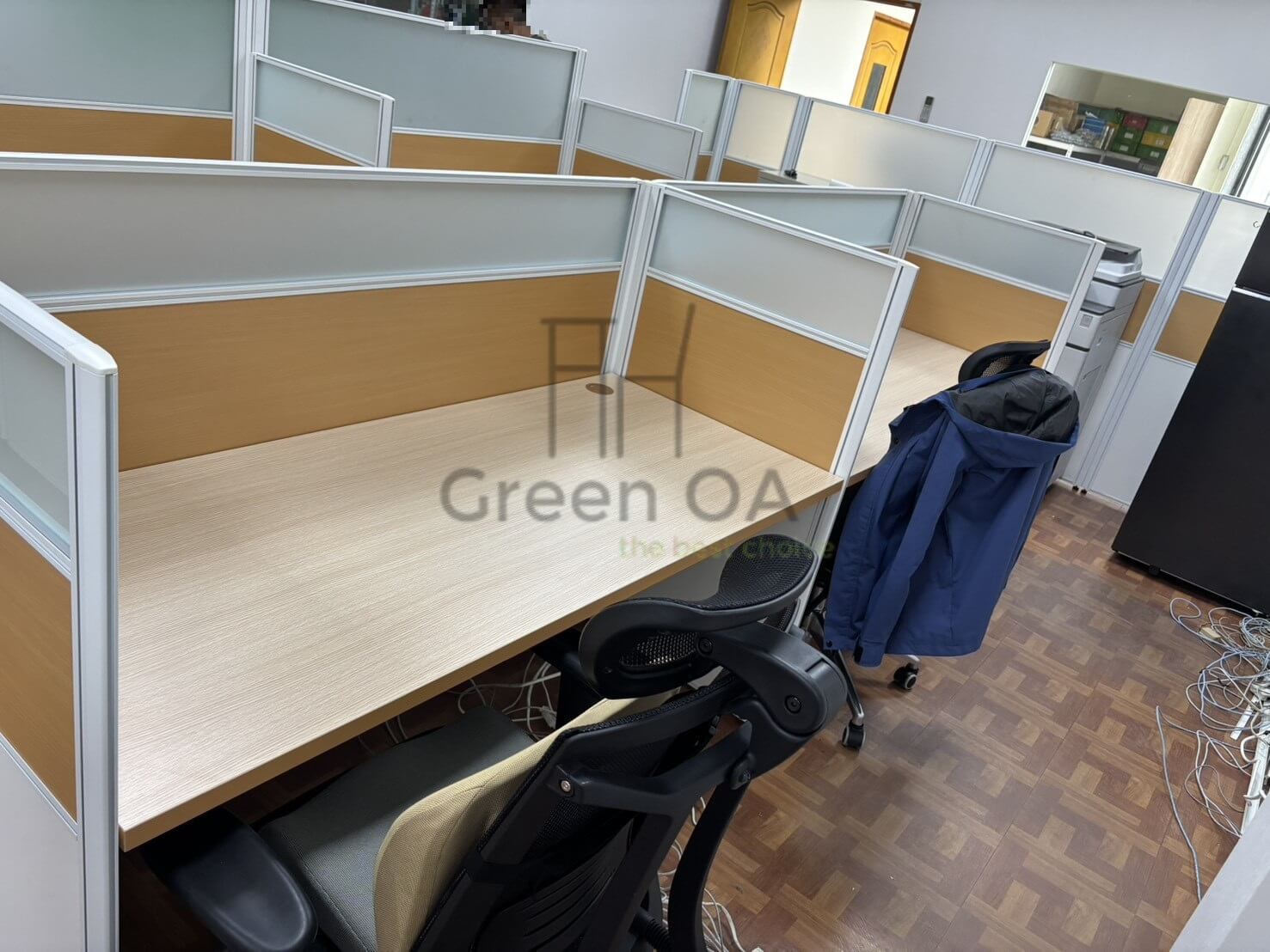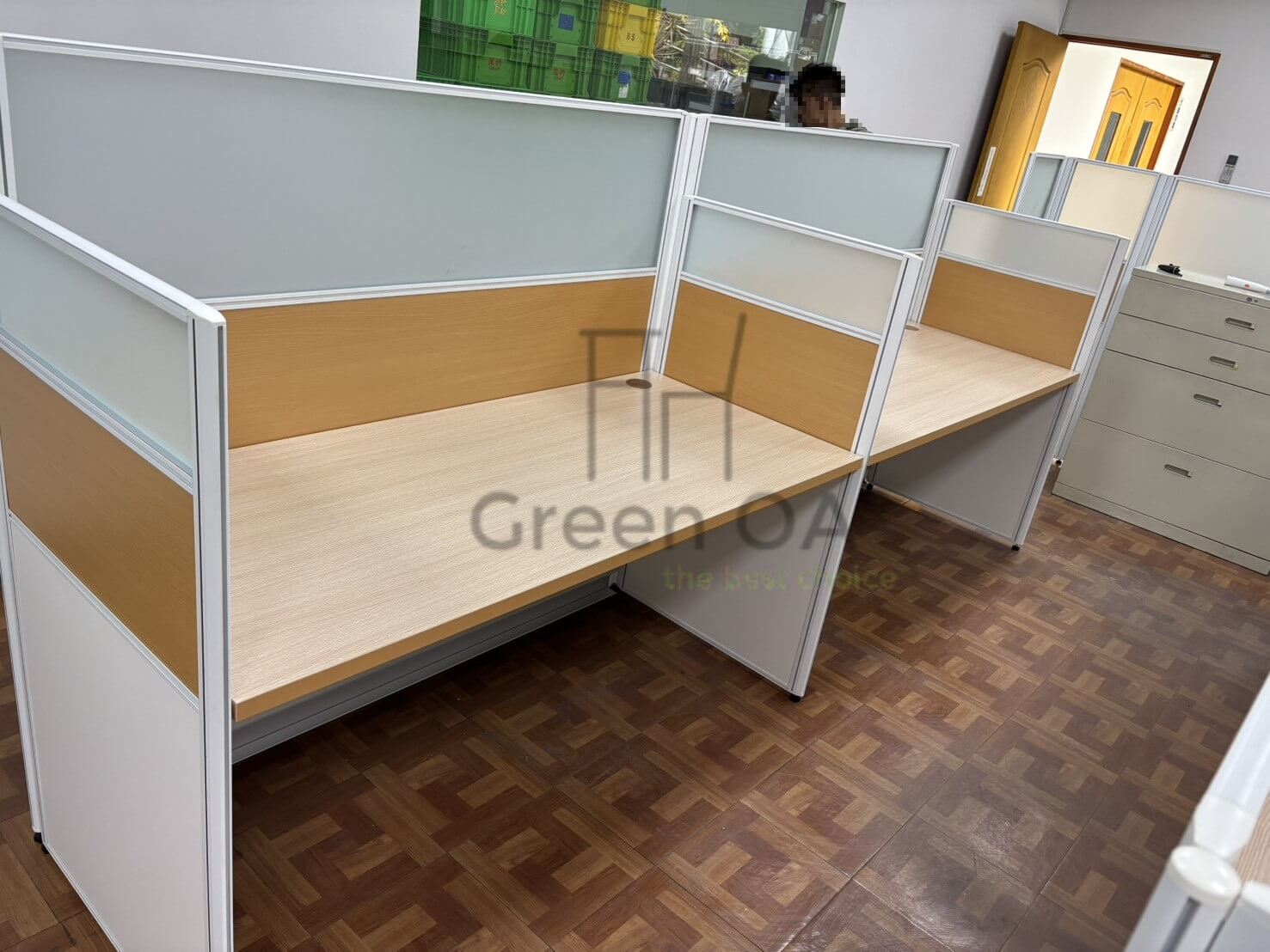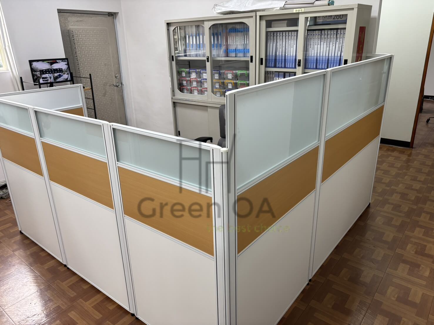 這組 2.5 屏風(122 高+142 高)烤白款,搭配淺木紋直角桌板 的配置,呈現出明亮、溫和又井然有序的辦公氛圍。上下雙高度屏風的設計,不僅提升隱私感,也保留適度的開放視野;上半段的霧面玻璃材質讓光線能自然穿透,使空間保持通透明亮,同時避免壓迫感。白色烤漆框體搭配淺木紋桌板,讓整體視覺更柔和,適用於任何行政辦公區、客服單位或需要長時間專注工作的部門。直角桌板大面積、好利用,符合日常電腦與文件作業需求;屏風結構穩固,配色協調,讓每一個座位都能成為舒適、安定且高效的工作場域。