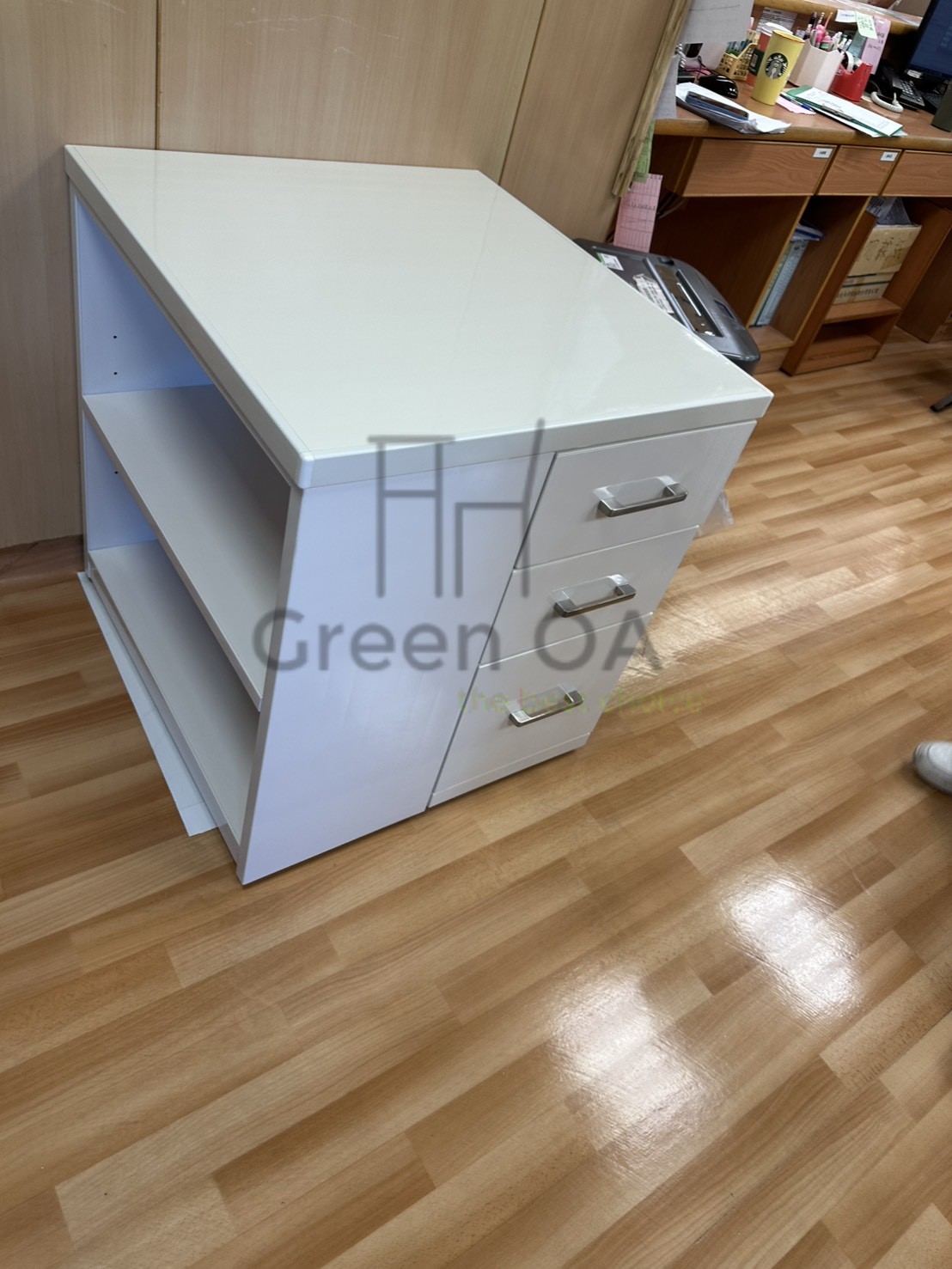 此案為 醫藥櫃 配置,使用白系亮面材質打造清爽整潔的視覺效果,非常適合醫療院所、診間或護理站使用。櫃體設計俐落方正,具備 開放層架 + 多功能抽屜 的組合,能依照物品大小分類收納,各類醫療耗材、備品、藥品都能清楚整理、快速取用。亮面櫃體不僅質感佳,更方便日常清潔與消毒,符合醫療空間對衛生的高標準。抽屜採金屬滑軌及舒適把手設計,開闔順暢,使用耐久。加上適中的尺寸與穩固結構,不論擺放器材、文件或常用醫療用品,都能兼具實用性與穩定性。此案例展現 Green OA 為醫護場域打造安全、耐用且具專業感的收納設備,讓工作動線更順暢,環境更井然有序。