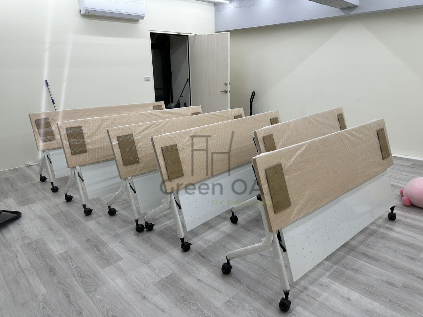 此案整合多樣化傢俱設備,打造兼具休憩氛圍與高效運作的複合式空間。餐桌與餐椅採用溫潤木質設計,提供舒適用餐與討論場域;休閒沙發搭配大、小茶几,形成自在放鬆的交流角落。閱讀桌與辦公櫃則補足日常書寫、資料放置等機能。S40 會議桌與 CKR 掀合桌,可依需求彈性變化座位與動線,適用課程、研習與活動使用。同時搭配實用的書桌與收納椅,使整體空間更具系統性與機能性。Green OA 以一致、協調的木紋與灰色系配置,完整呈現舒適、溫暖又兼具專業的多功能場域。