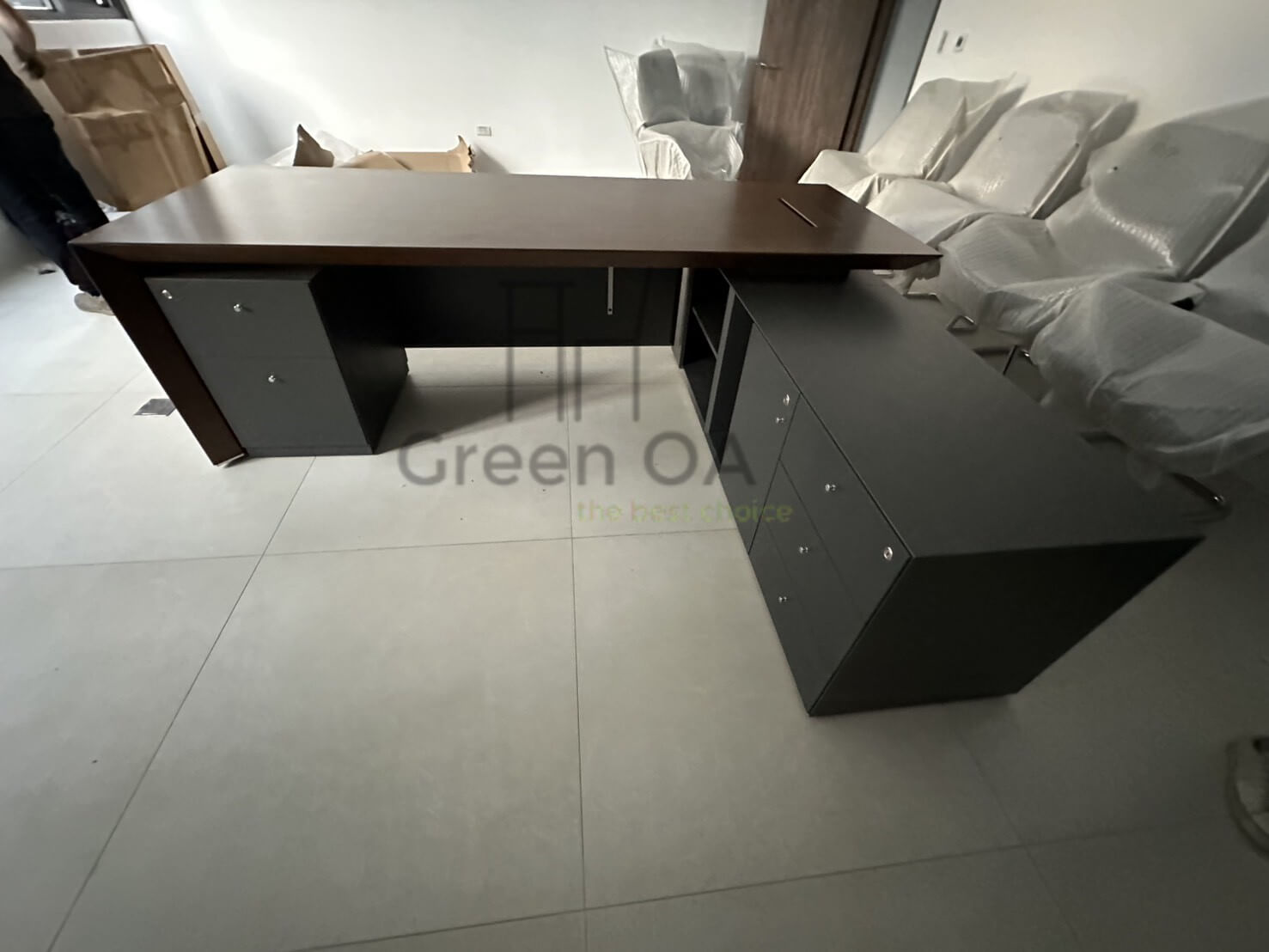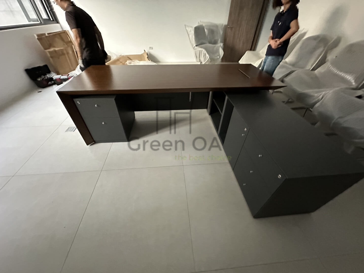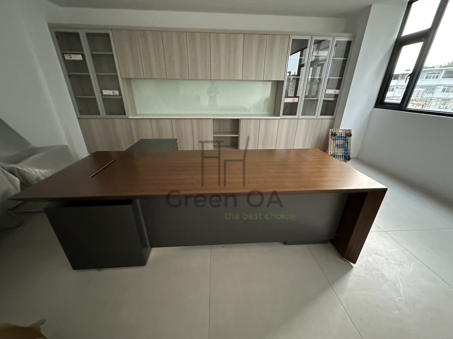 這款主管桌以俐落大器的線條結合厚實木紋桌面,展現專業領導者的沉穩氣度。寬闊桌面讓電腦、多份文件與會議用品都能從容擺放,側邊配置的收納櫃體提升整體工作效率,也讓桌面始終維持整潔俐落。深色底座搭配溫潤木紋,形成剛柔並具的視覺平衡,無論是行政辦公室、企業主管室或專業諮詢空間,都能巧妙提升環境質感。這張桌,不只是工作家具,更是專業形象的延伸。