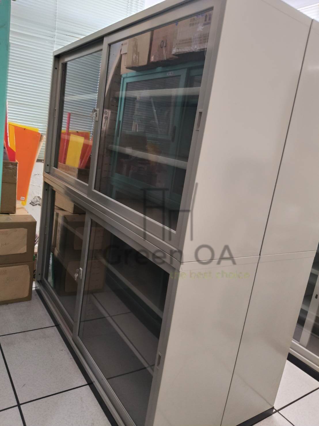 本案採用6 尺玻璃拉門公文櫃+3 尺玻璃拉門公文櫃+4 尺鐵拉門公文櫃的組合配置,依文件性質進行清楚分類管理。玻璃拉門櫃方便快速辨識與取用常用資料,同時維持空間通透感;鐵拉門公文櫃則適合存放重要或機密文件,兼顧安全與耐用性。不同尺寸櫃體靈活搭配,有效提升牆面收納效率,讓辦公空間整齊有序,展現專業且高效的行政管理環境。