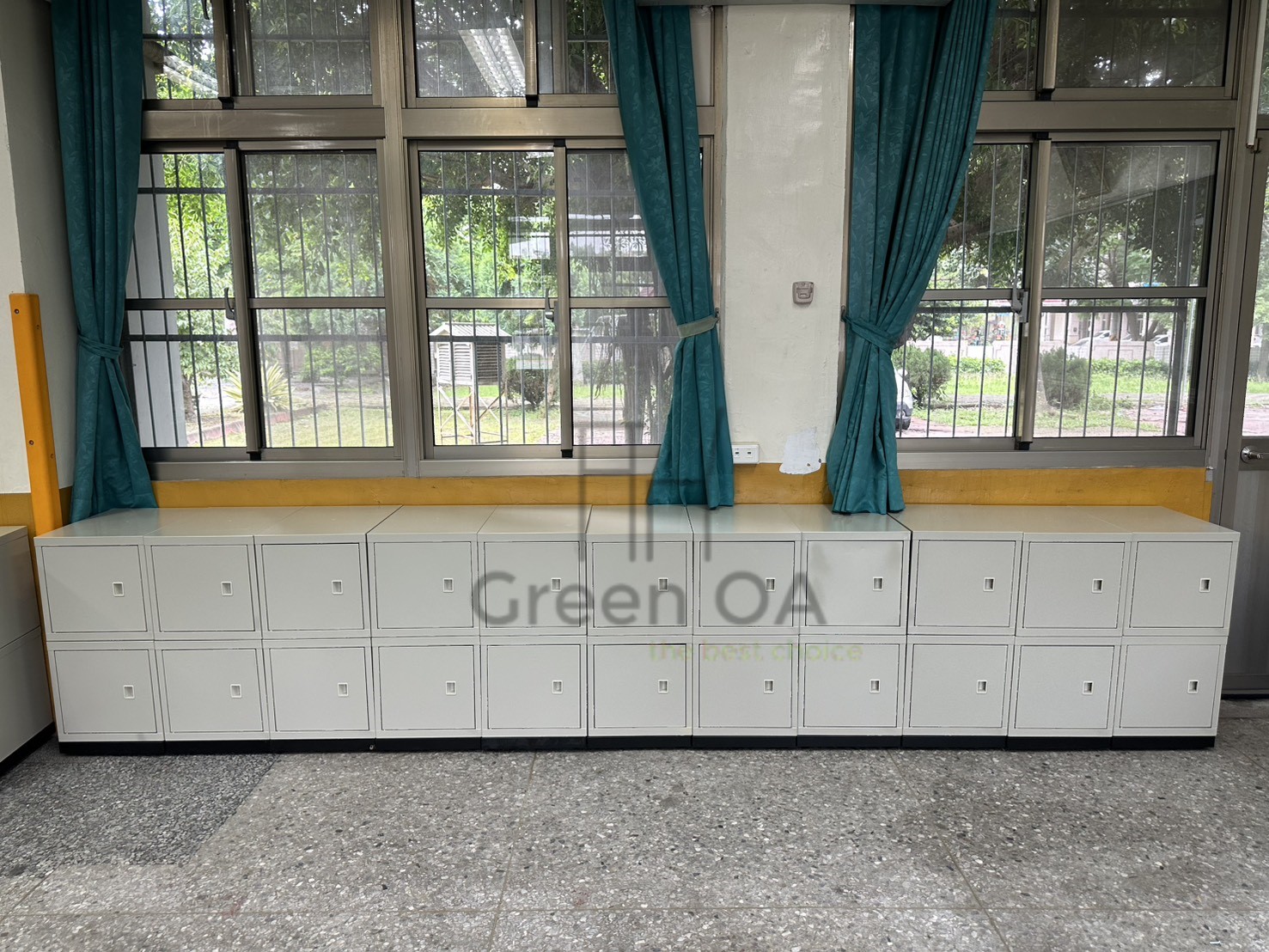 此案配置書包櫃,主要針對學校、補習班及培訓空間的需求,協助使用者妥善管理個人物品。櫃體設計堅固耐用,容量充足,可整齊擺放書包、教材與日常用品,避免桌面凌亂。外觀以簡潔線條搭配耐磨材質,適合高頻率使用環境;若搭配門片或鎖具,更能兼顧安全與隱私。此書包櫃不僅提升整體空間秩序感,也能培養使用者良好的收納習慣,是教育與辦公場域兼具美觀與實用性的收納解決方案。