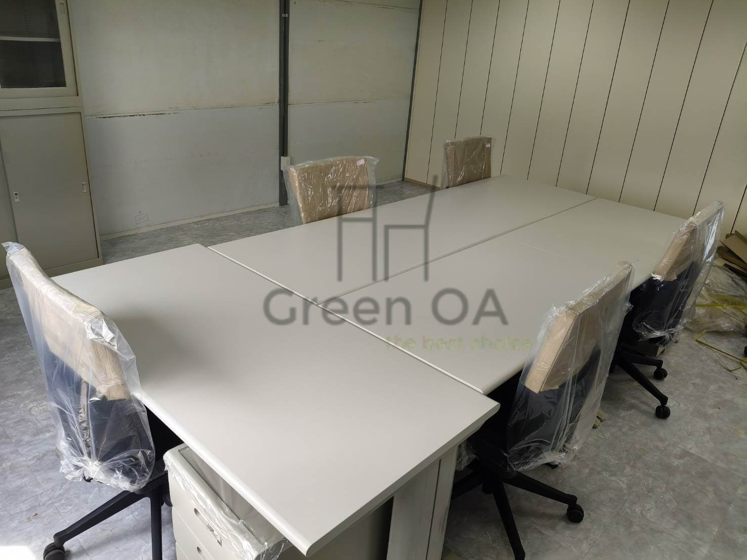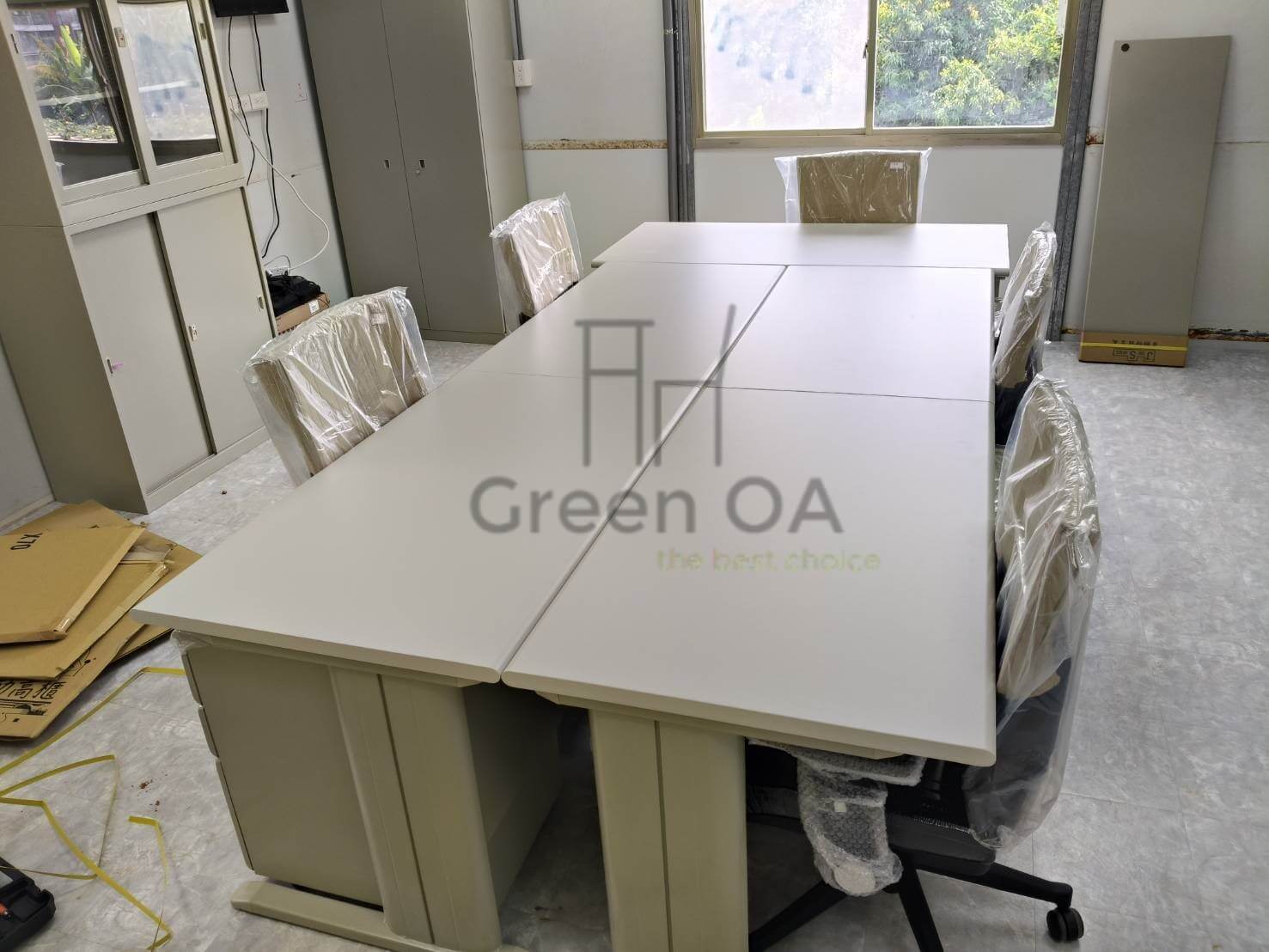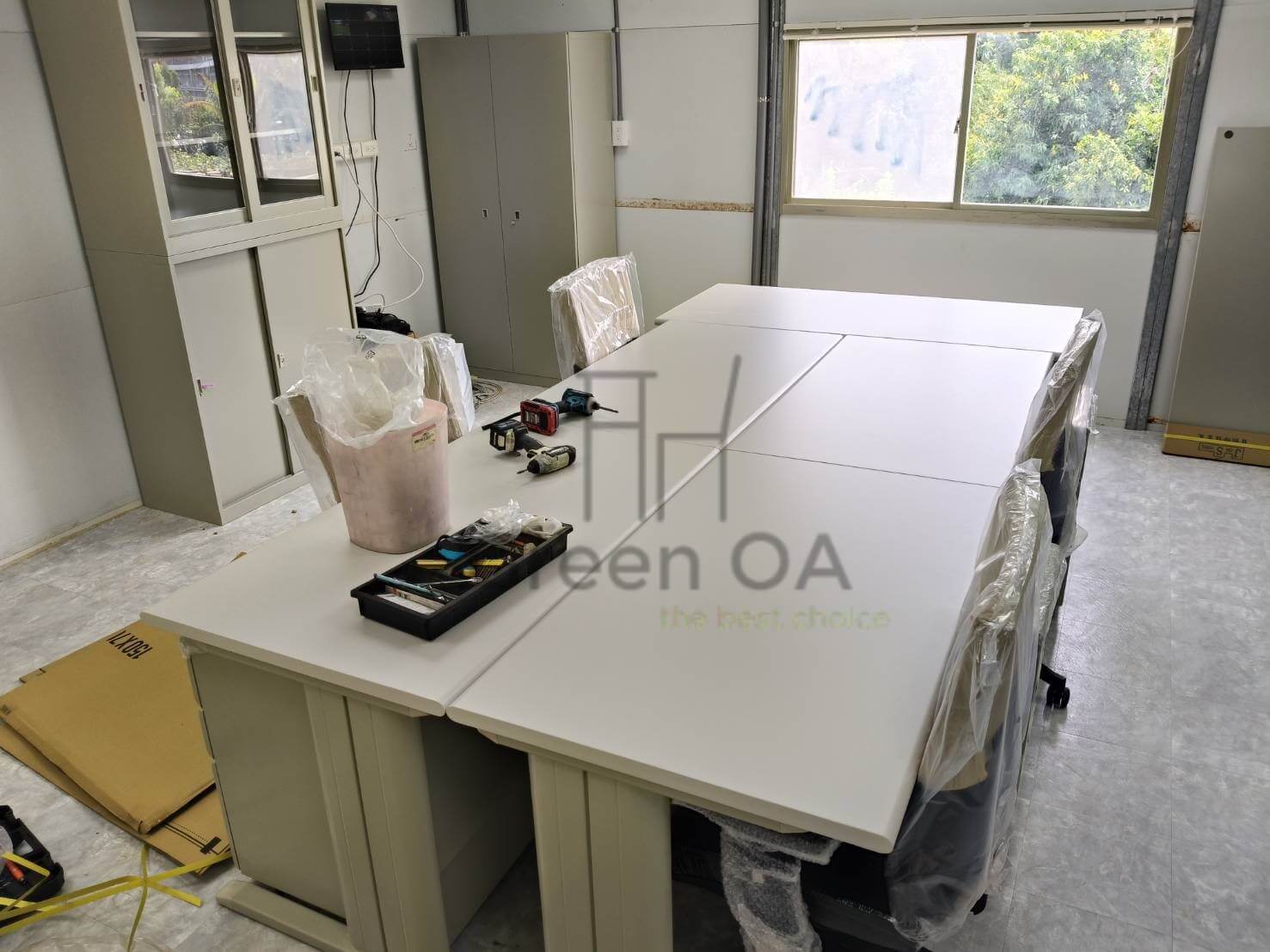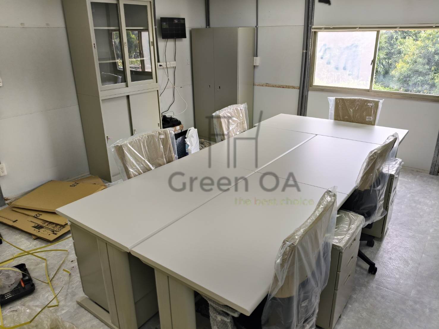 此案採用 CD 辦公桌 搭配 理想櫃 與 公文櫃,整體風格以清爽烤白色系為主,展現明亮整潔的辦公氛圍。CD 桌桌面寬敞平整,結構穩固,適合多工操作與團隊協作使用;理想櫃設計簡約實用,具備抽屜與儲物空間,能有效提升文件管理與物品分類效率;公文櫃則提供更大容量的資料儲放區,讓空間更有條理。整體配置兼顧實用性與一致性,色調清新、線條俐落,特別適合教育單位、公部門或重視整潔感與協作性的現代辦公空間。