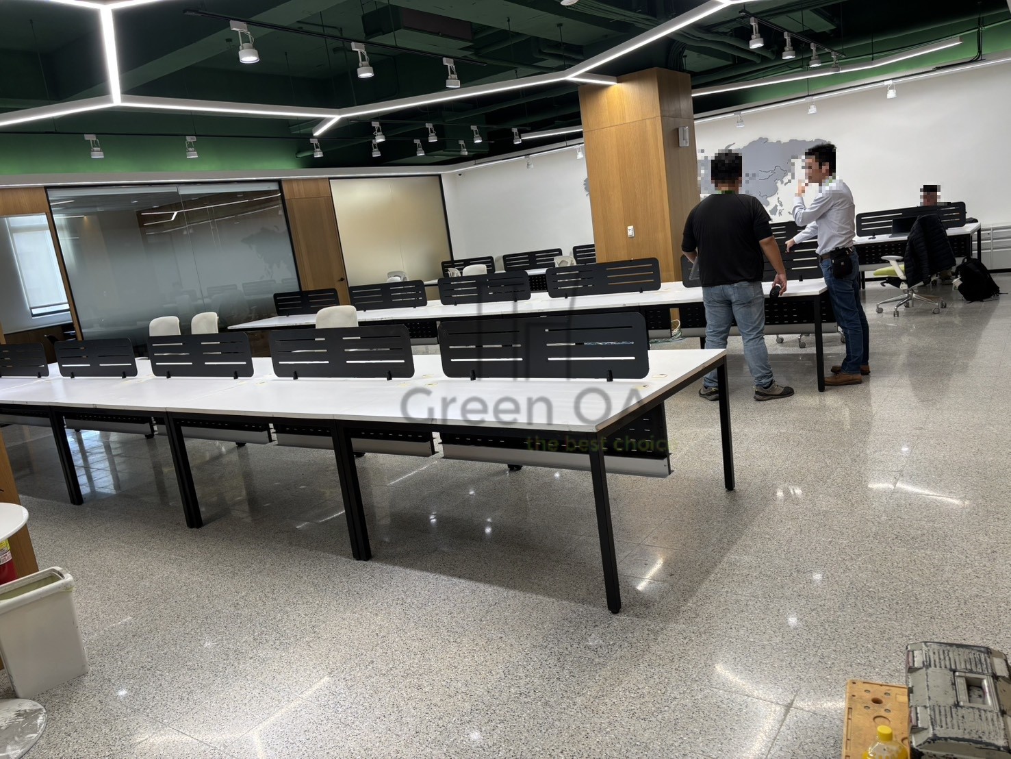 本次案例以 S40 工作站+桌上屏 為核心配置,著重提升個人作業的專注度與整體整齊感。S40 工作站結構穩定、桌面配置實用,滿足日常辦公需求;桌上屏有效區隔視線,降低干擾,同時保留適度互動彈性。整體設計簡潔俐落,讓空間更有秩序,也展現 Green OA 在辦公工作站規劃上的實務經驗與效率思維。