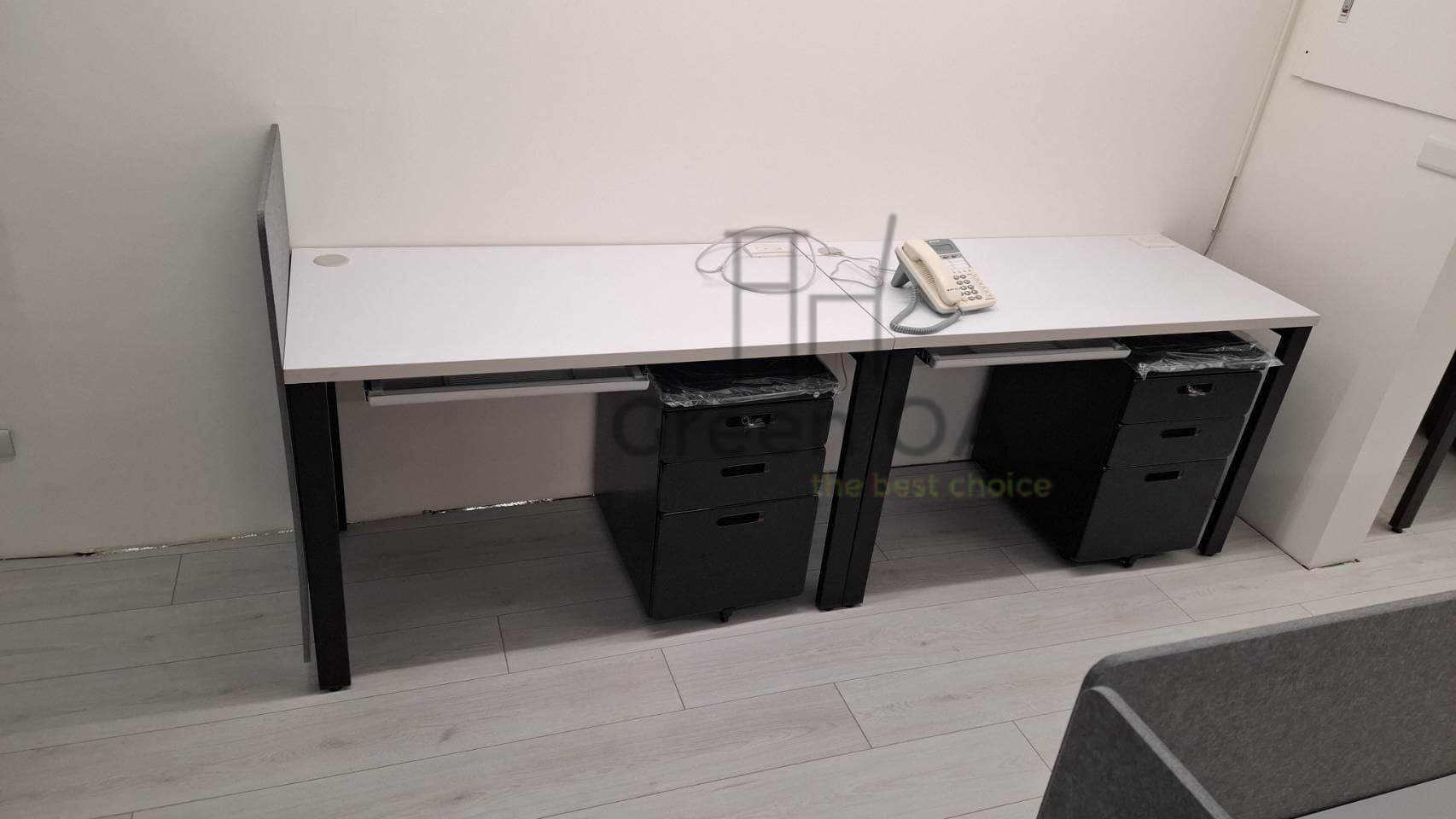 這是一個結合了現代設計感與極致收納機能的案例。本案採用「SQC 辦公桌」與「SQU 辦公桌」系列,以俐落的鋼製桌腳支撐出穩固且充滿專業感的作業平台。桌面配置「ABS 中抽」,讓文具小物皆有專屬歸宿,維持案頭清爽。