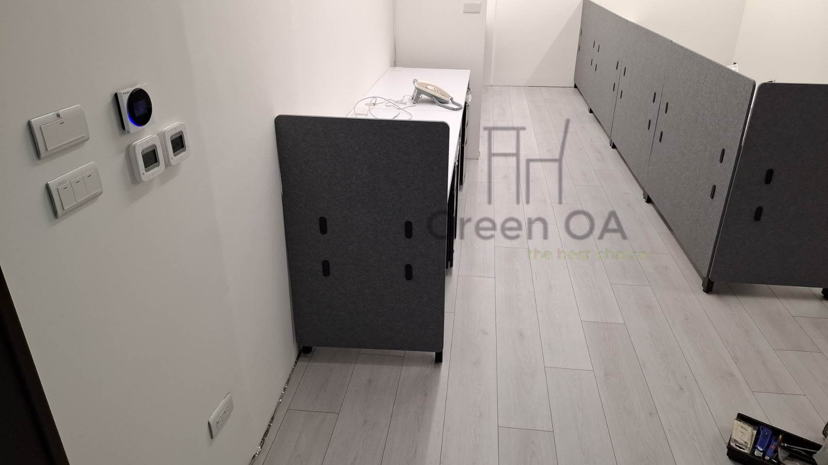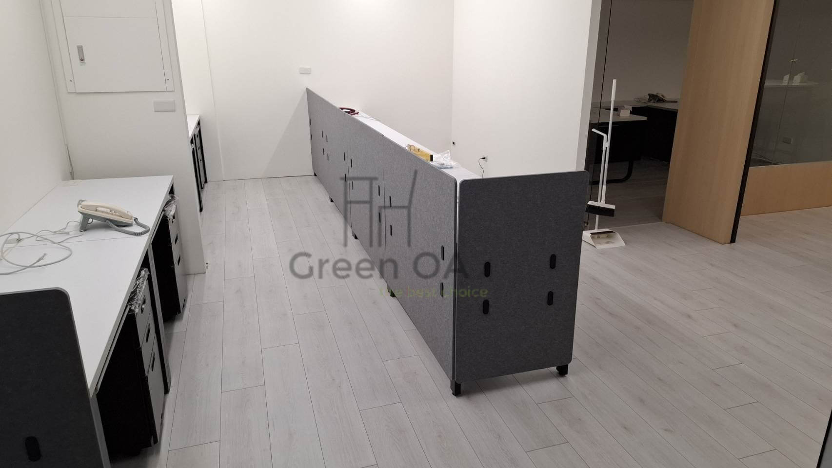 為了強化收納深度,我們規劃了「黑色活動櫃」搭配「黑色桌下式理想櫃」,全黑系列的櫃體不僅耐髒、耐看,更營造出沉穩的商務氣場,將桌下空間利用效率最大化。此外,特別安裝了「懸吊式桌上屏」,在開放式空間中精準界定個人隱私,同時保持視線的穿透感與空氣流通。整體的黑色五金與木紋桌面的碰撞,成功為企業打造出一個洗練、高效且具備現代工業風美學的辦公環境。