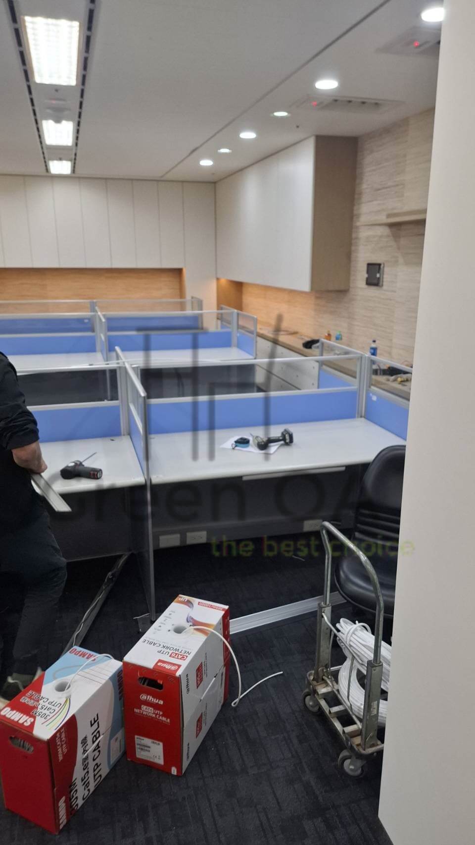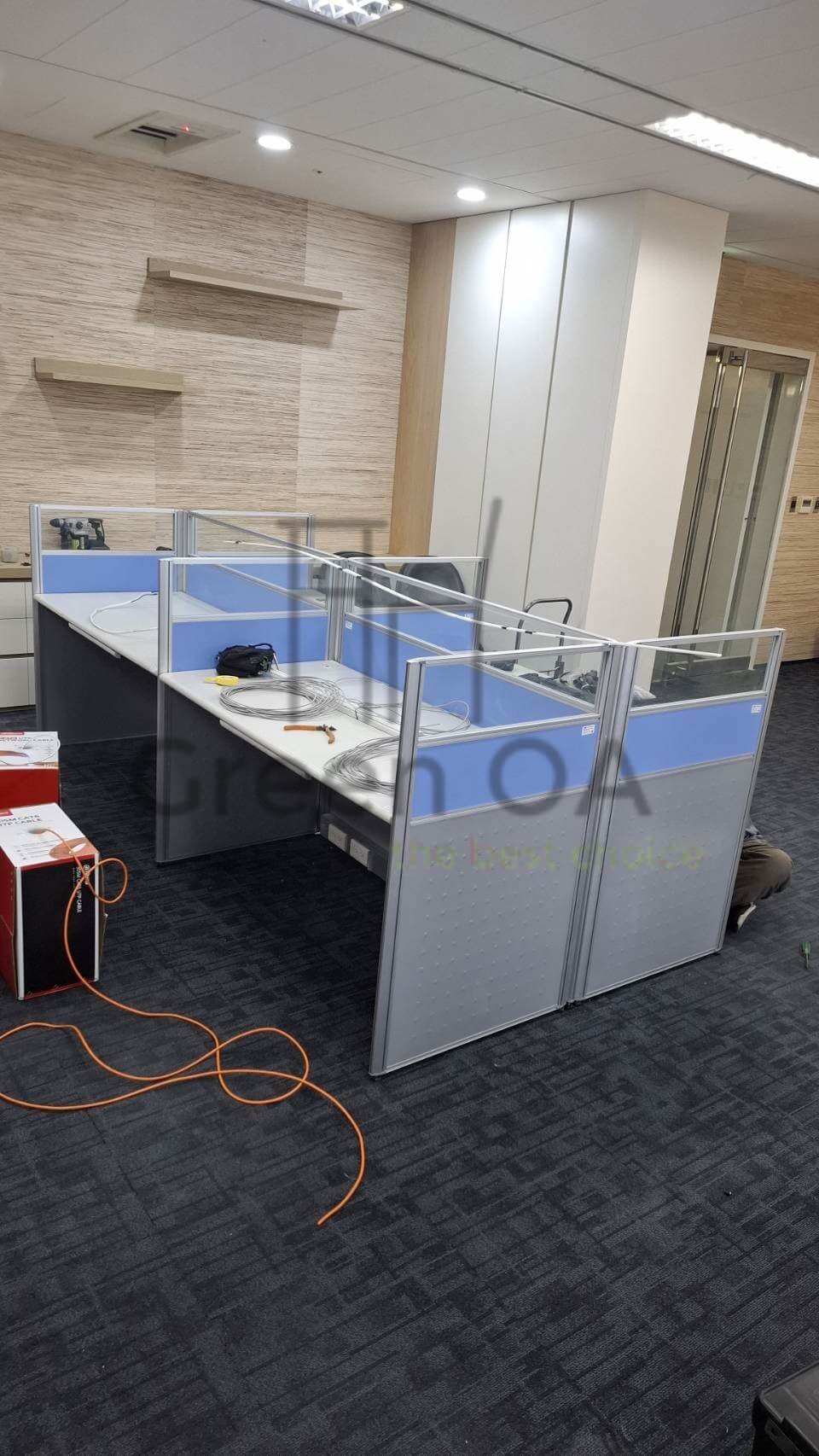 此外,本案同步完成了「會議桌組裝」工程,確保會議空間的穩固性與動線流暢度。我們專業的安裝團隊細心校正每一塊舊桌板與新屏風的接合處,確保整體層次整齊劃一。透過這種「新舊整合」的工程實力,我們不僅為客戶節省了預算,更在維持專業品牌形象的前提下,成功將原有的家具資源轉化為現代高效的辦公環境。