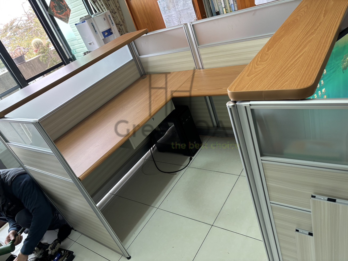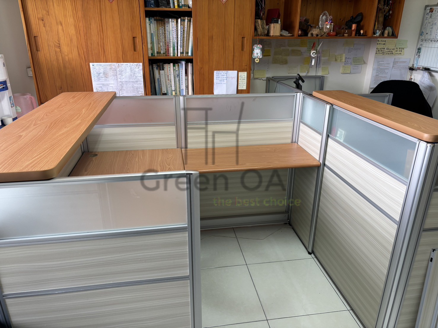 本案例展現了如何運用屏風與木紋面板,在嘉義中埔打造出具備接待功能的高質感辦公區。核心採用 112 公分高的「2.5 屏風」,此高度不僅能巧妙遮蔽桌面線路,更在視覺上提供了適度的專業界定,讓同仁在專注作業時仍能與訪客維持自然的眼神互動。