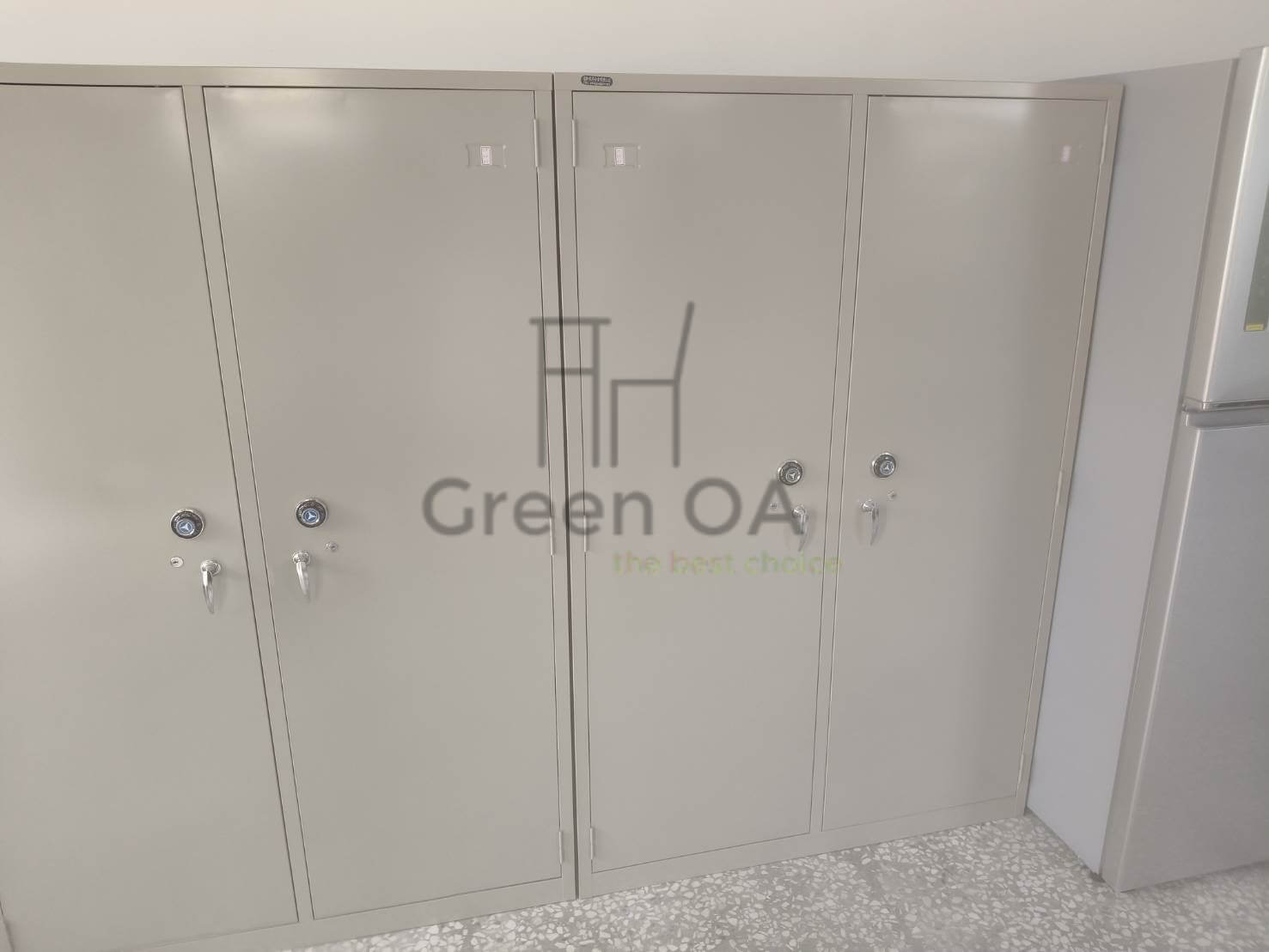 本案為客戶規劃了兼具「絕對隱私」與「直覺管理」的收納方案。GREEN OA 選用的雙開門密碼保密公文櫃,搭載高安全性電子鎖,專門守護企業的核心機密文件,省去保管實體鑰匙的負擔,實現數位化資安管控。