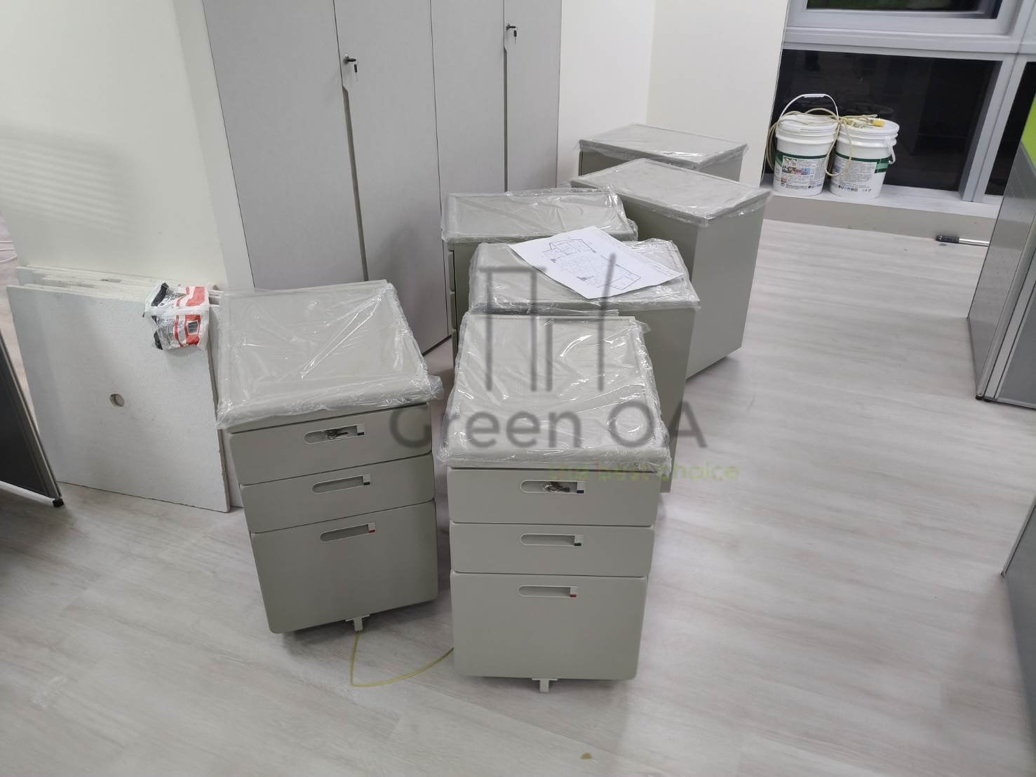 在功能配置上,透過 主桌板與側桌板 形成的 L 型工作區,提供了寬廣的作業平台。特別配置的 ABS 中抽 具備輕巧耐用的特性,適合分類存放文具小物;搭配桌下靈活的活動櫃,構築出強大的多層次收納體系。透過 GREEN OA 的系統整合,我們不僅解決了繁瑣資料的存放需求,更營造出一個動線流暢、兼具設計美感的高效辦公基地。
