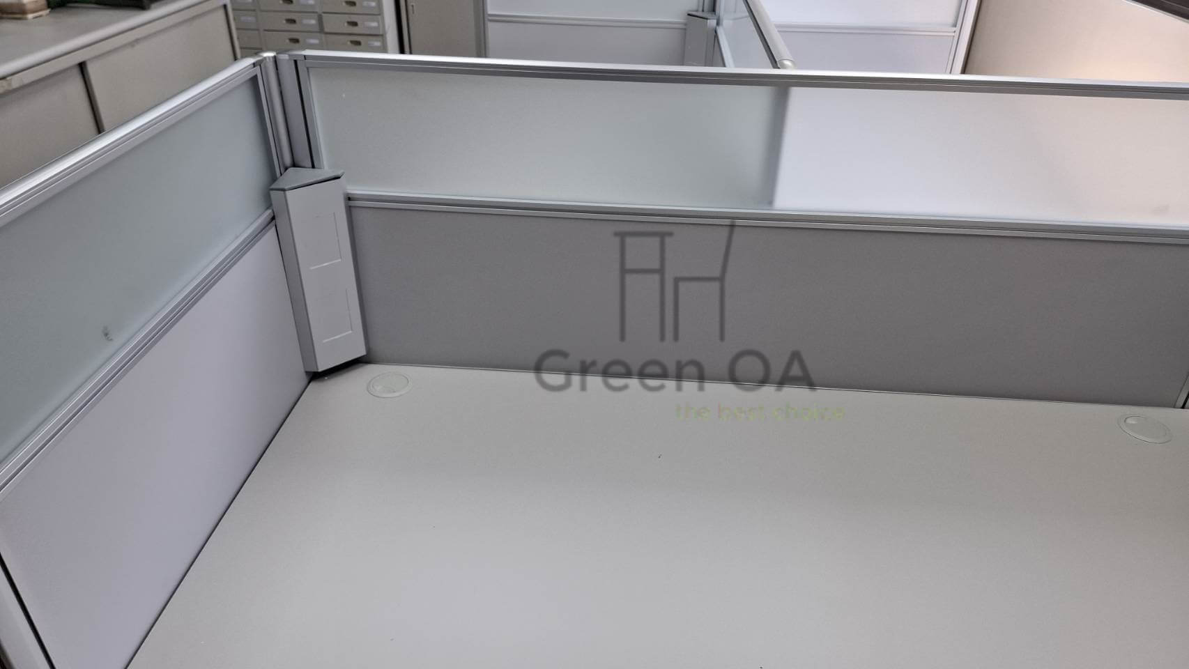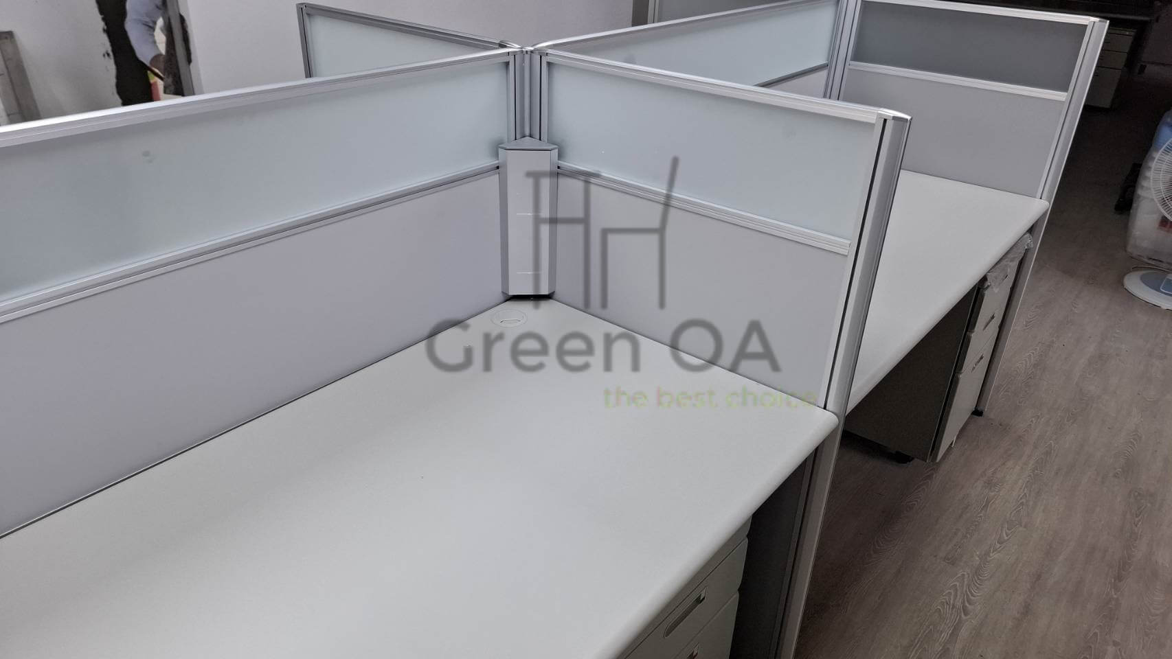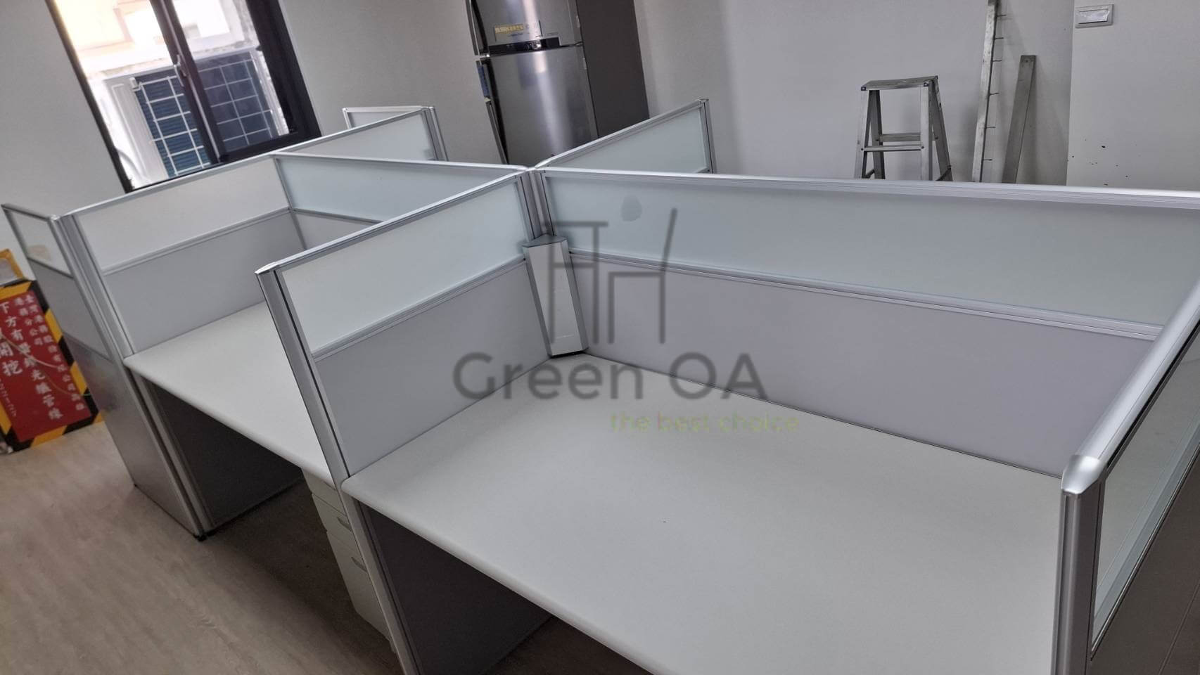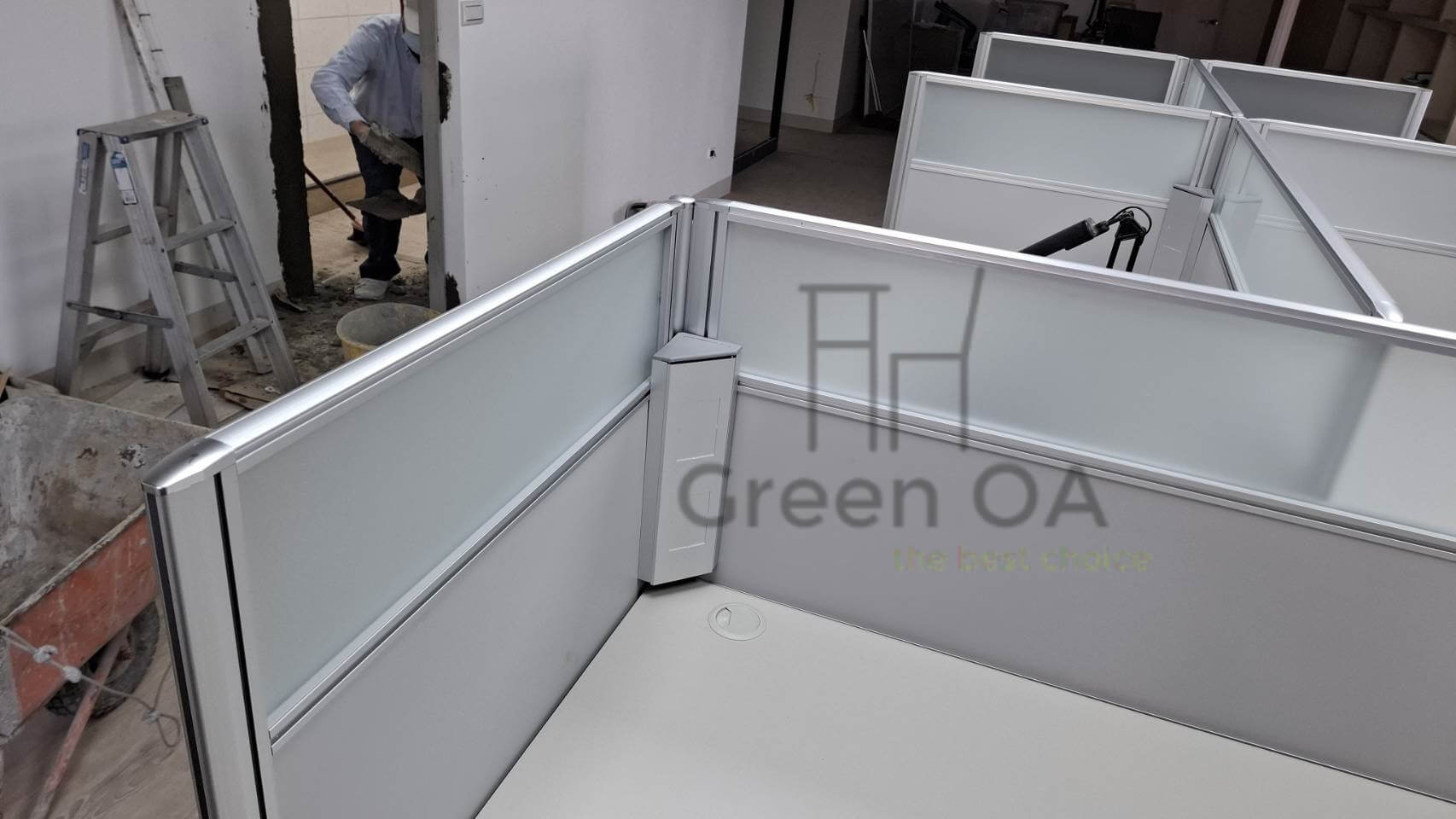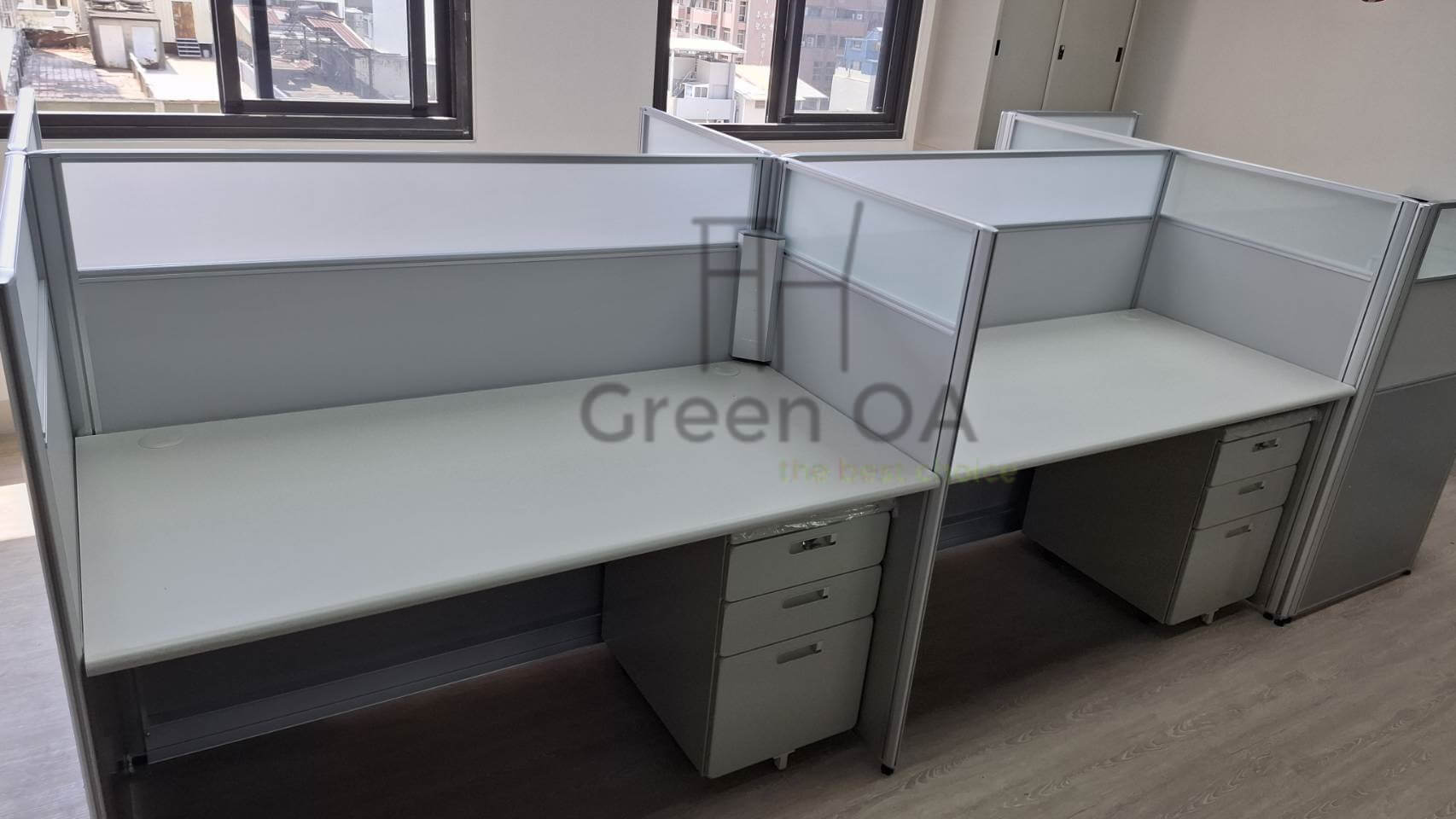 本案致力於打造一個告別凌亂、專注力百分百的辦公環境。GREEN OA 採用 2.5系列屏風(122公分高),此高度能精準阻隔坐姿時的視覺干擾,搭配霧面玻璃材質,在維持個人隱私的同時,依然保有空間的通透感與採光。