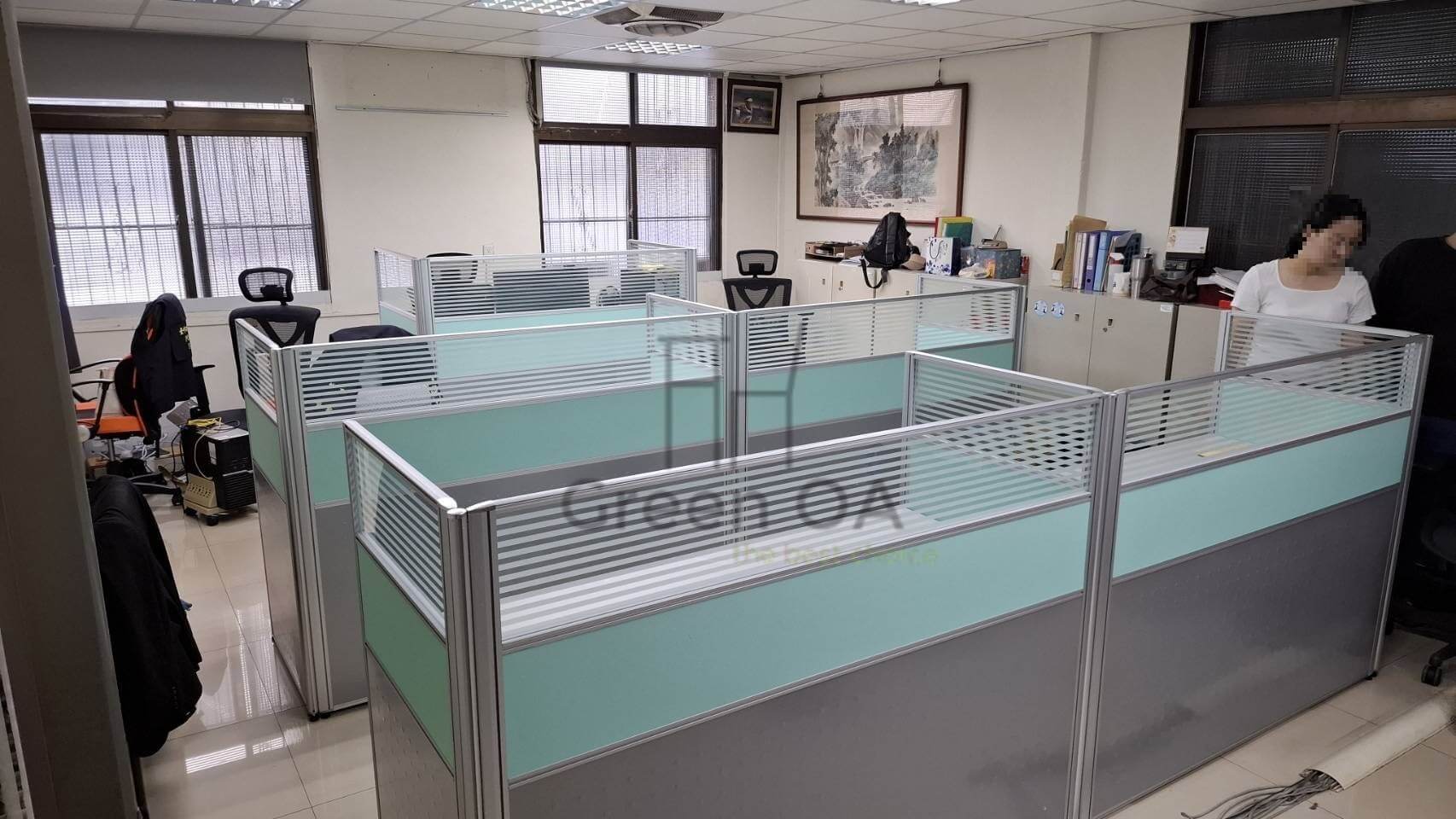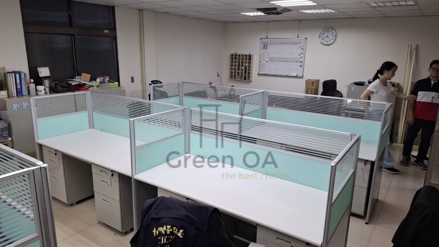 此案為 2.5屏風(112高)+主桌,以簡潔俐落的分隔設計構築出高效辦公空間。屏風採用鋁合金骨架搭配淺色面板,視覺清爽且具現代感,提供適度隱私又不壓迫空間感。主桌桌面寬敞,能靈活配置電腦、文件與個人物品,兼顧實用與舒適。整體設計線條俐落、比例協調,體現 Green OA 對功能性與美感並重的專業規劃理念,打造出明亮、有秩序的工作環境。