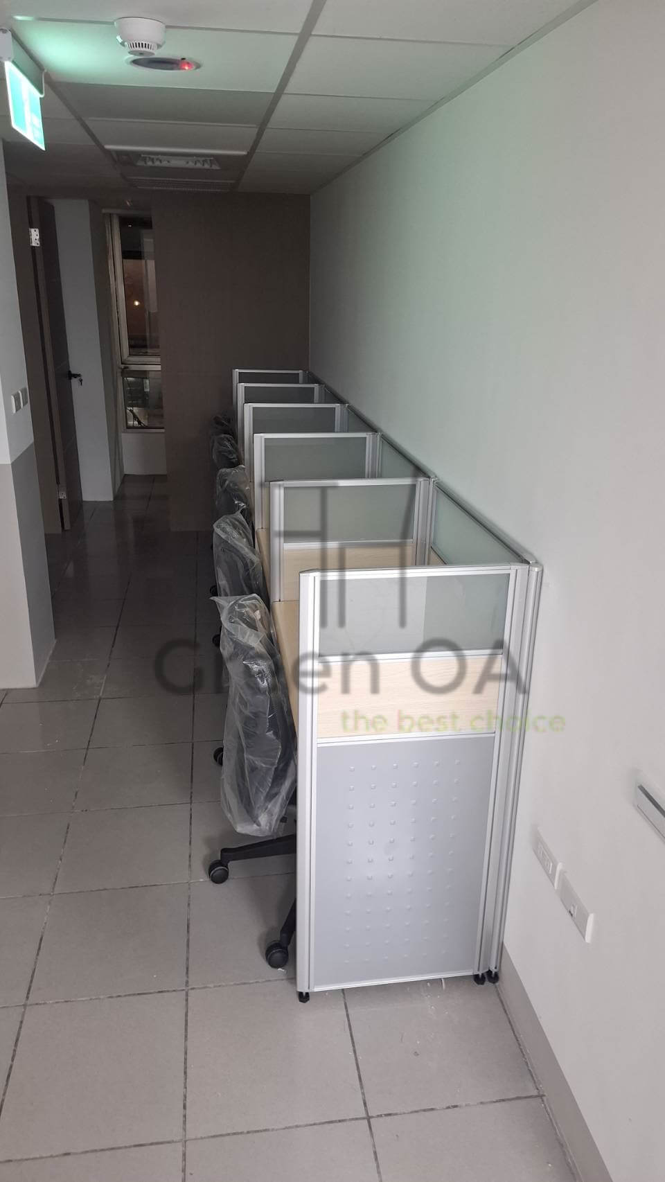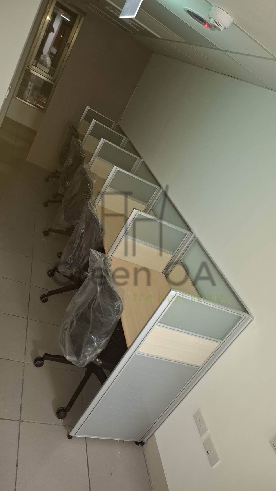 此案為 2.5屏風(112高)+淺木紋主桌+辦公椅,以柔和的淺木紋桌面搭配簡約銀白框架屏風,營造明亮溫潤的工作氛圍。屏風高度設計適中,兼顧隱私與協作需求,能有效劃分個人空間又不顯壓迫。主桌線條俐落、桌面寬敞,提供舒適的作業範圍;搭配人體工學辦公椅,支撐性佳、久坐不疲。整體配置呈現自然協調與專業質感,展現 Green OA 對辦公空間美學與實用性的完美平衡。