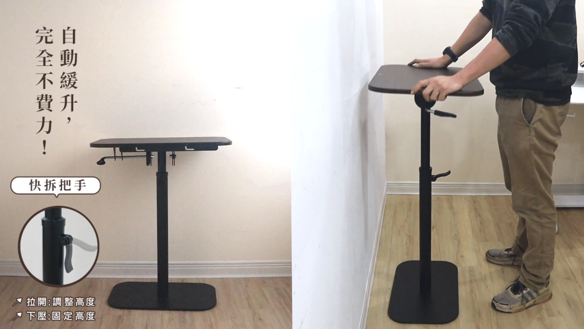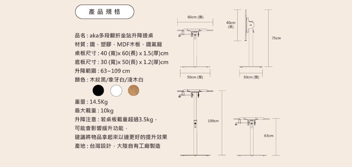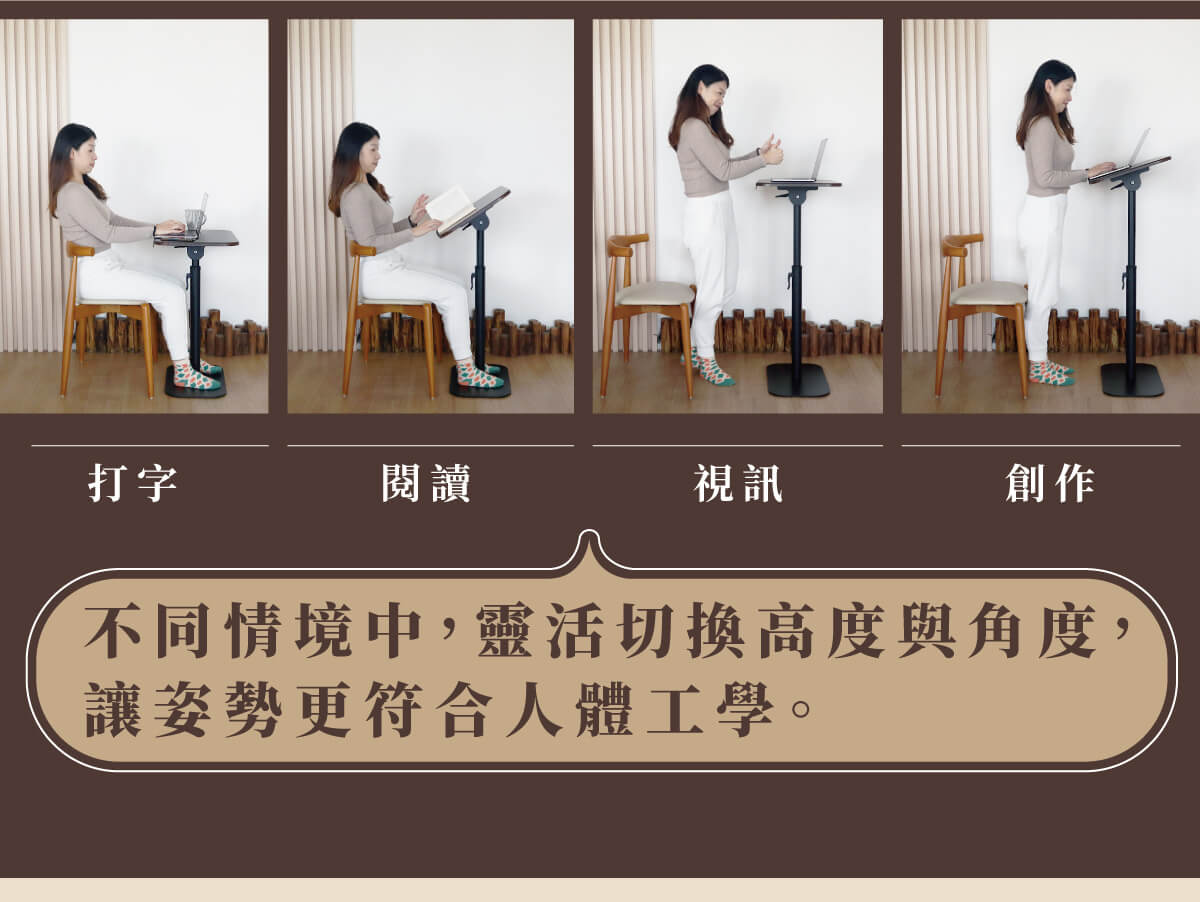 多段翻折坐站升降邊桌