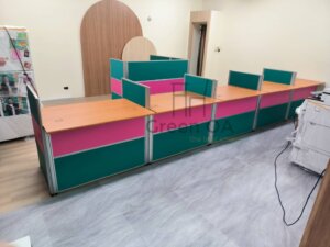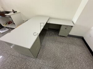 此案例包含L型辦公桌和桌邊桌的...